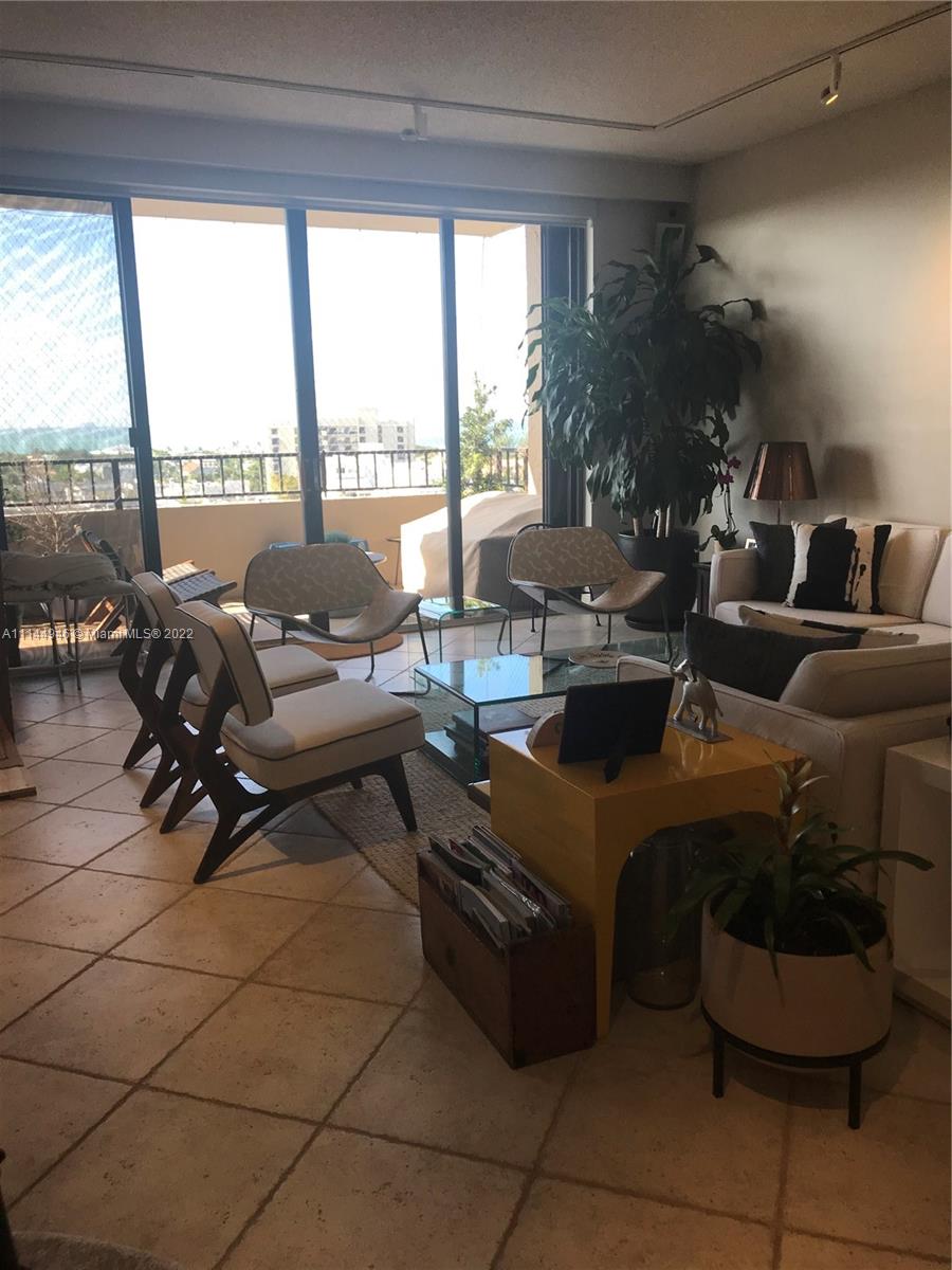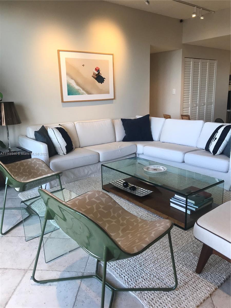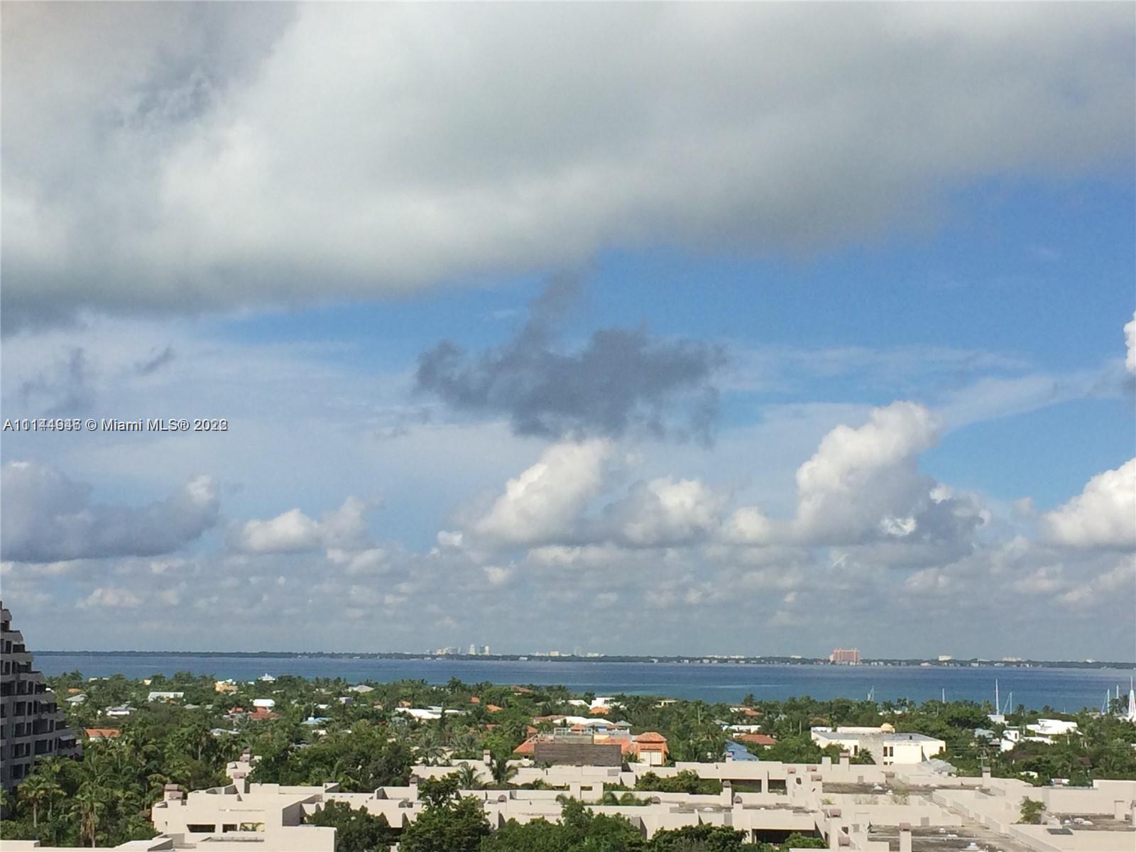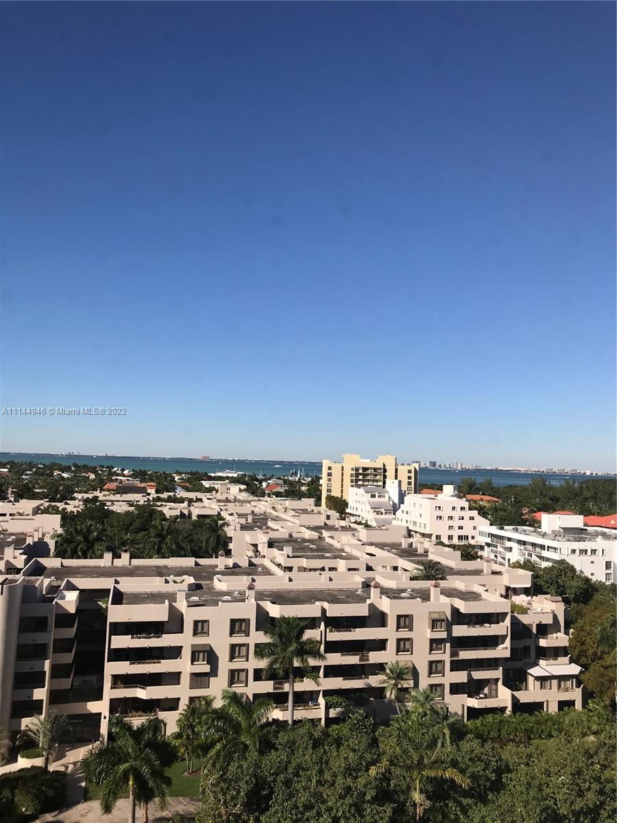 Oversized 1,961 sq ft . 2/2.5 + Den (3rd bedroom possible with large window & 1/2 bath). Split bedroom plan. All tile floors. Formal dining. Separate large laundry room. Large balcony with amazing direct views of Bay, Coconut Grove, Coral Gables, Downtown city lights, pools, gardens, etc. from ALL rooms. Hurricane Shutters, 2 covered/assigned Parking Spaces. Lobby Concierge, Valet. Complex has 6 pools (beachfront/Olympic etc.). Tennis complex, gourmet food store/restaurant, hair salon, children playground, etc. Tenant leaves March 8, 2022. Professional pics coming soon.