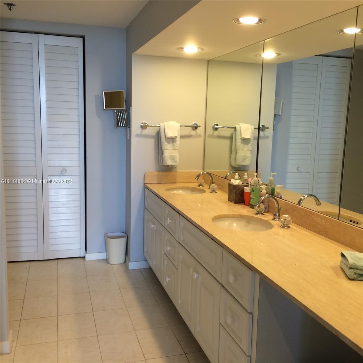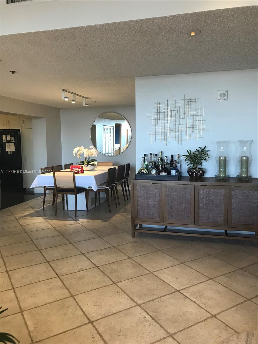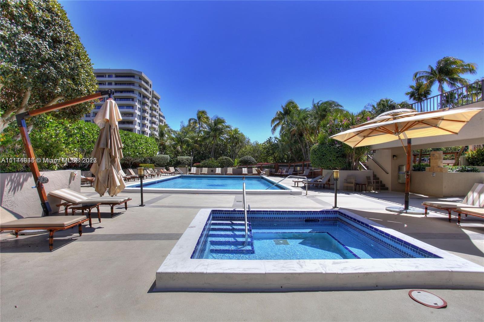 Oversized 1,961 sq ft . 2/2.5 + Den (3rd bedroom possible with large window & 1/2 bath). Split bedroom plan. All tile floors. Formal dining. Separate large laundry room. Large balcony with amazing direct views of Bay, Coconut Grove, Coral Gables, Downtown city lights, pools, gardens, etc. from ALL rooms. Hurricane Shutters, 2 covered/assigned Parking Spaces. Lobby Concierge, Valet. Complex has 6 pools (beachfront/Olympic etc.). Tennis complex, gourmet food store/restaurant, hair salon, children playground, etc. Tenant leaves March 8, 2022. Professional pics coming soon.