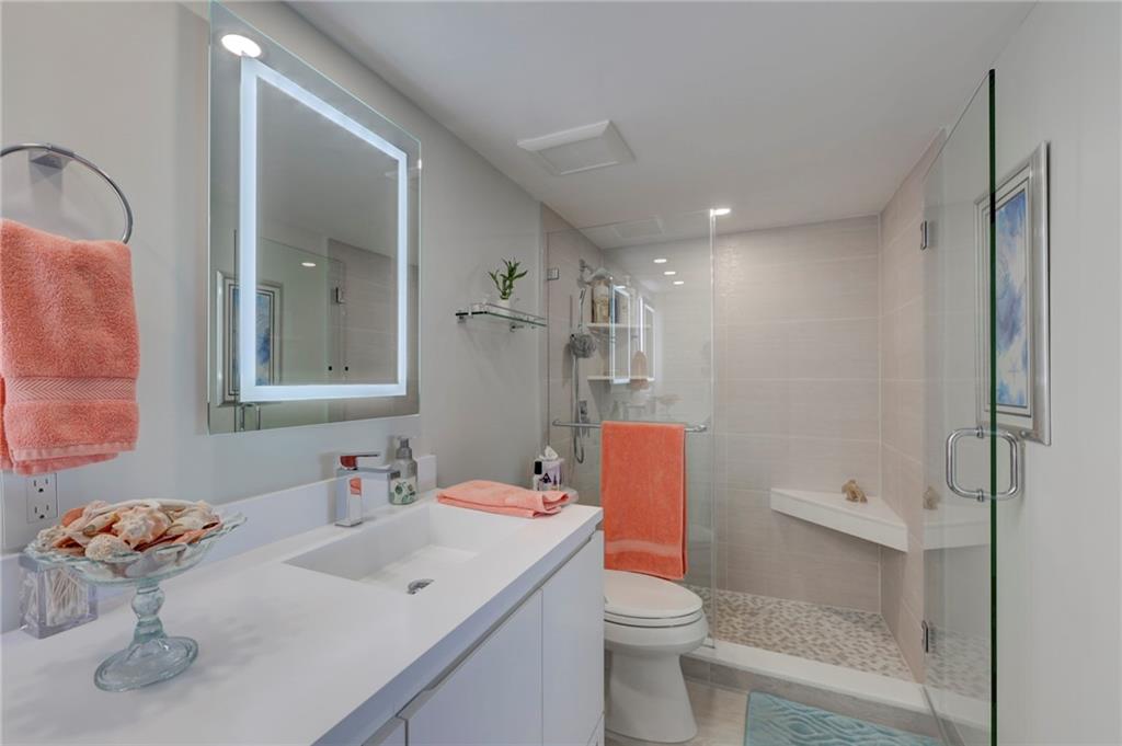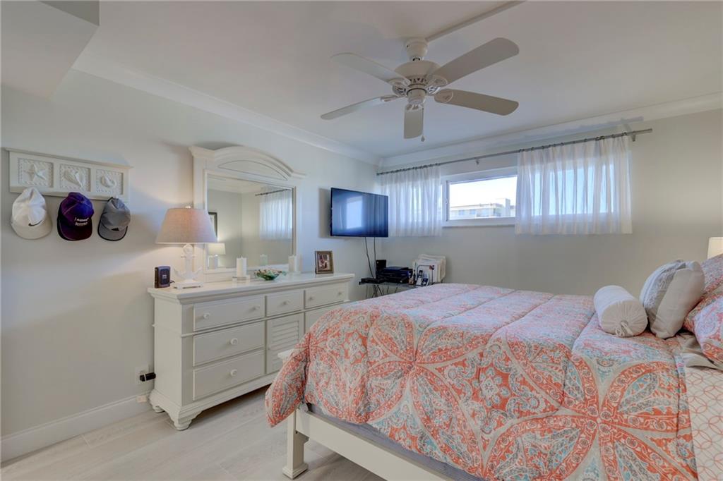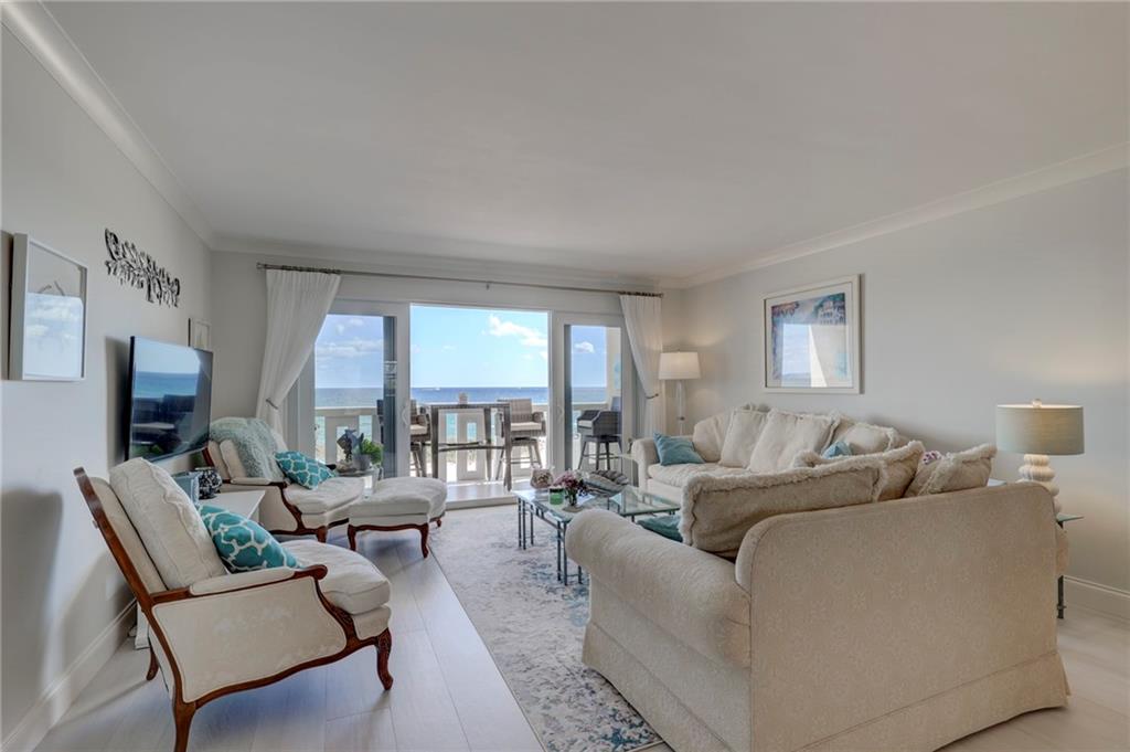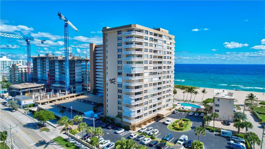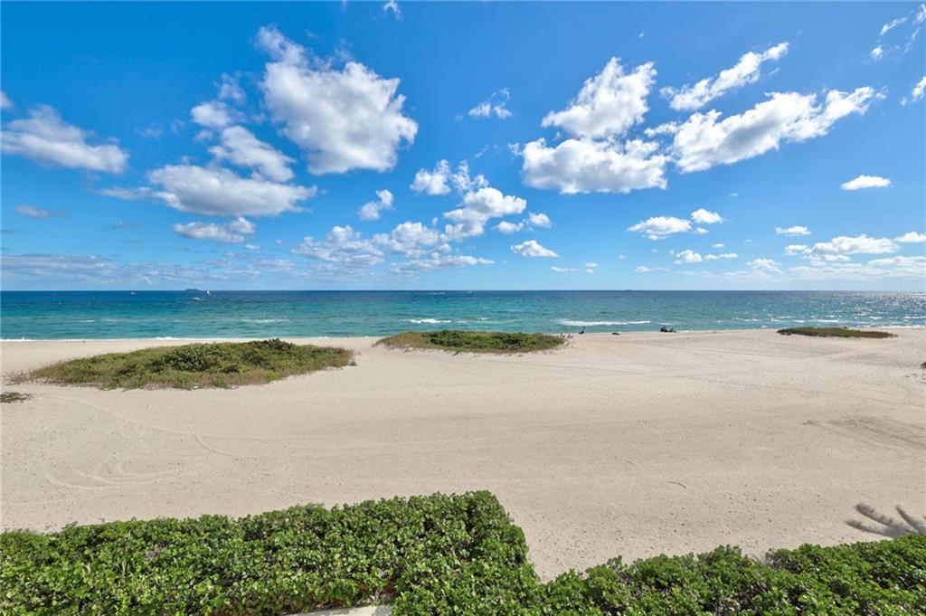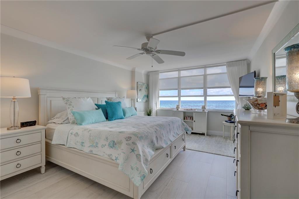 This 4th floor direct ocean unit is stunning! View of the ocean from the kitchen, living room, primary bedroom and the balcony! The owners spared no expense to make this unit paradise! The unit has been completely remodeled with modern light decor, ceiling lighting, mirror lighting in bathrooms, beautiful porcelain tile floors throughout, quartz counter tops and 6in molding and trim. The kitchen maple cabinetry is custom and has more than ample storage in the kitchen AND under the bar! The kitchen layout and bar are perfect for someone that loves to cook and entertain. Washer/Dryer full size stackable in unit tastefully incorporated into the cabinetry so hidden from view. Furniture not included in the Listing price but is negotiable.