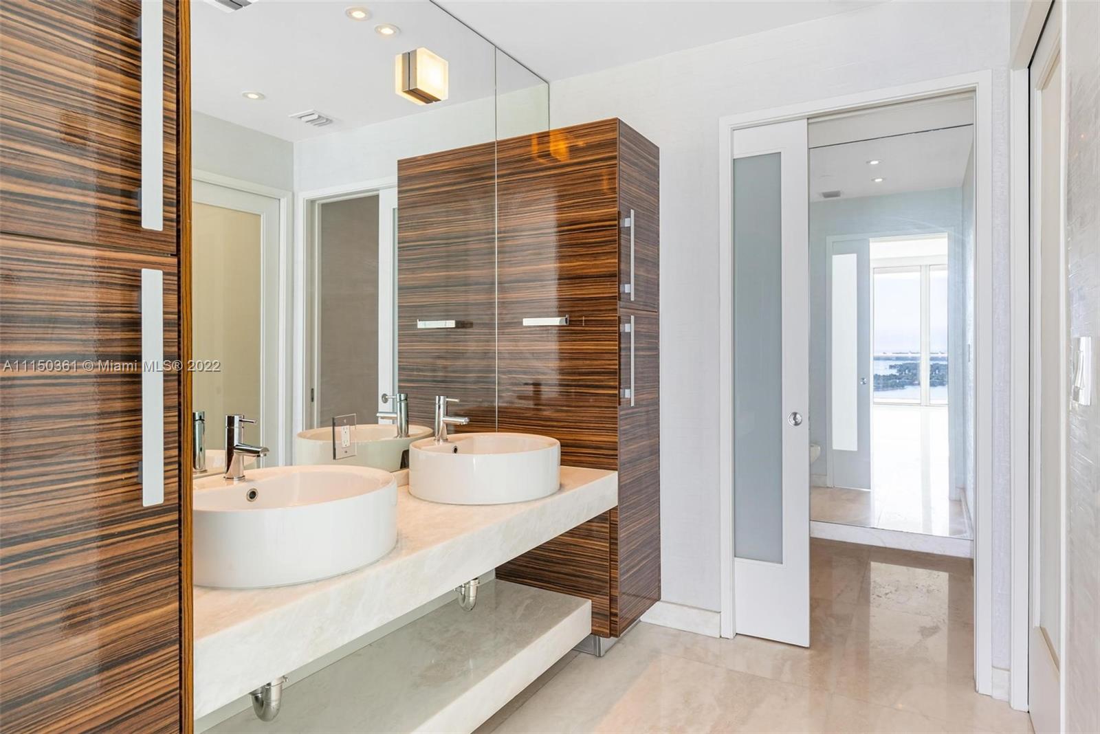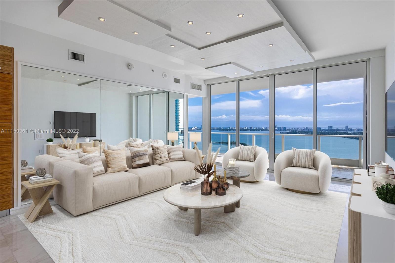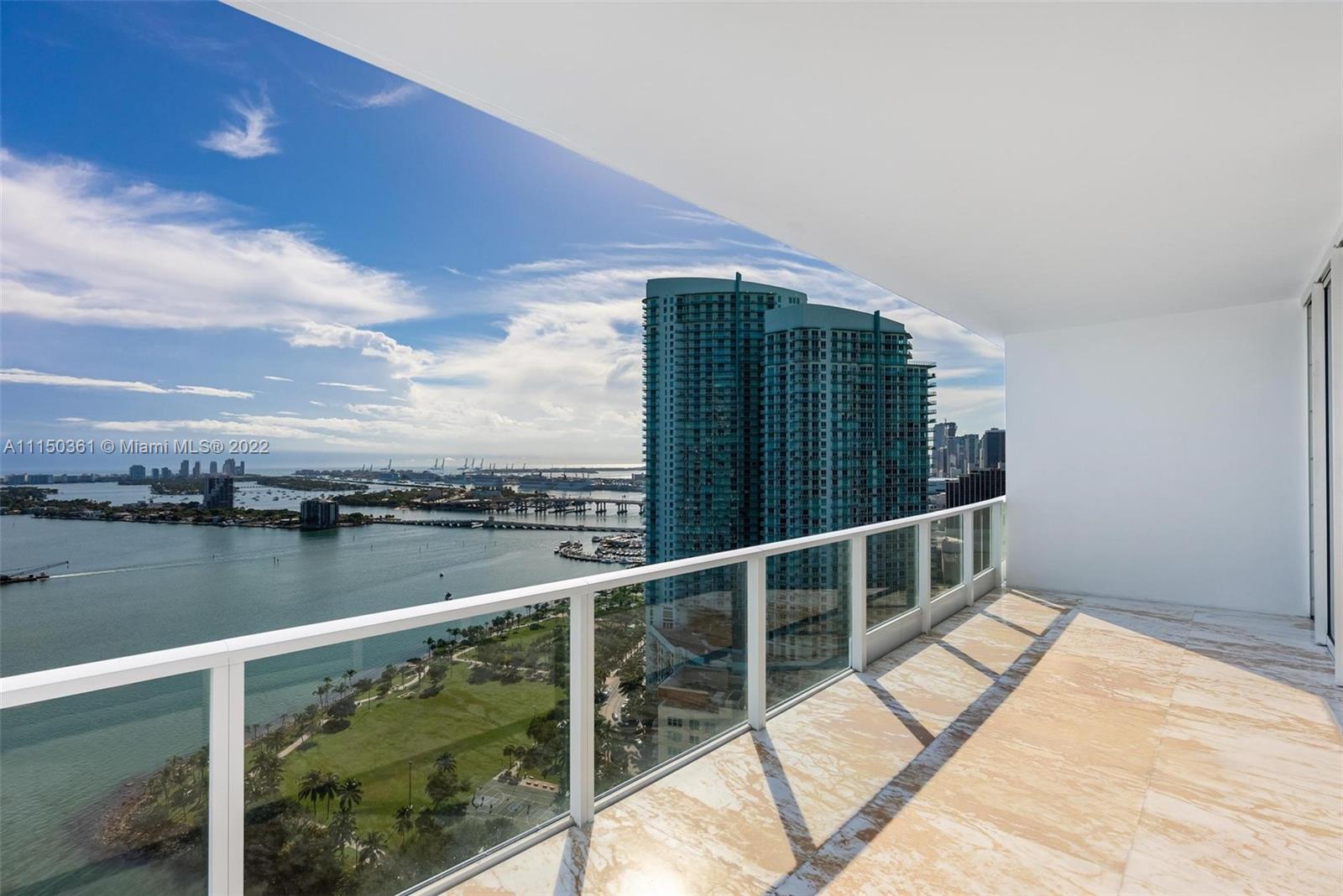 Absolutely stunning and rarely available high floor 07-line at prestigious Paramount Bay with spectacular wide bay and ocean views. This large 2-bedroom, 2.5 bathroom plus den (easily 3rd bedroom) flow through home has been beautifully upgraded with 36x36 Italian marble flooring, expanded kitchen with Quartzite counters & Subzero/Wolf appliances, electric shades and creatively designed custom closets maximizing storage. This home also features a private elevator entrance, 10-foot ceilings and two large terraces with sunrise to sunset views. Paramount Bay is a resort style building with amazing amenities that include an owners club room, east and west pool areas, beautiful fitness center and spa. Schedule a visit today, this will impress!