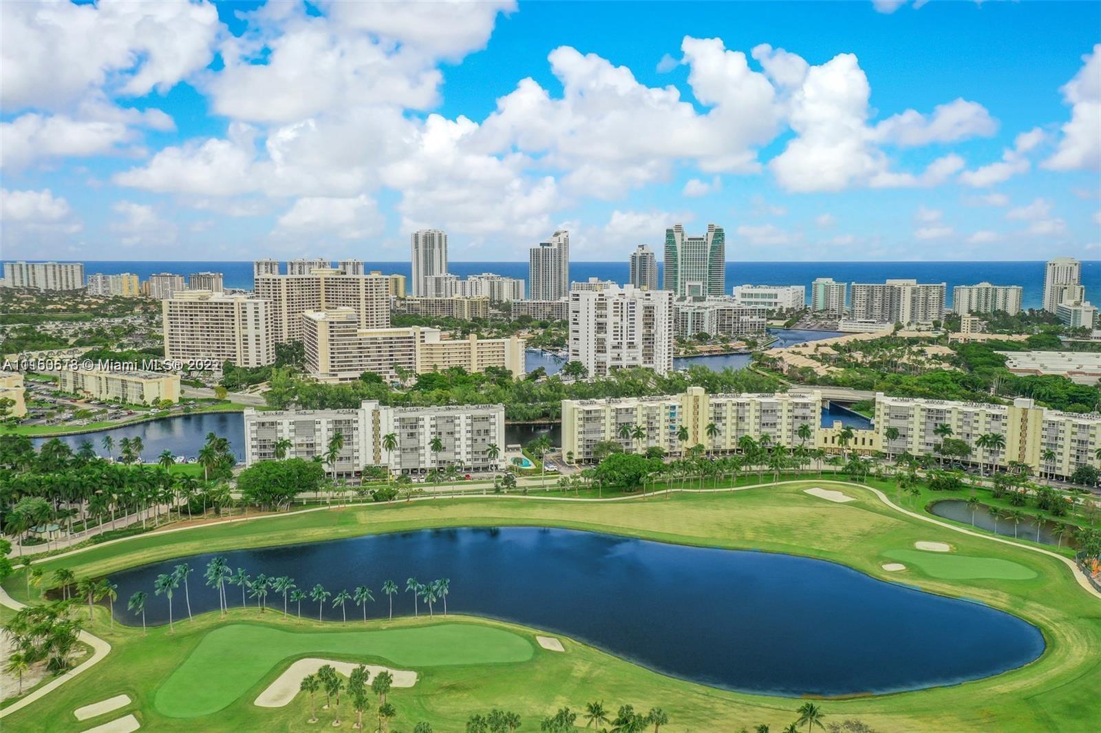 Large South East corner!!! overlooking the Diplomat Golf Course with ocean and city views with wrap around balcony. Plenty of natural light, spacious bedrooms, kitchen w/ stainless appliances, granite counters, washer and dryer in unit. TWO assigned garage parking. In the heart of Hallandale with Starbucks, Panera, Burlington, Winn Dixie and more just downstairs! Enjoy state of the art amenities including a fully equipped gym, pool, spa, steam room, tennis, jogging trail, outdoor fitness equipment, theater room, conference, and party room. HOA fee includes cable, internet, appliance maintenance, and 24-hour security. Special Assessment has been paid in full by seller.