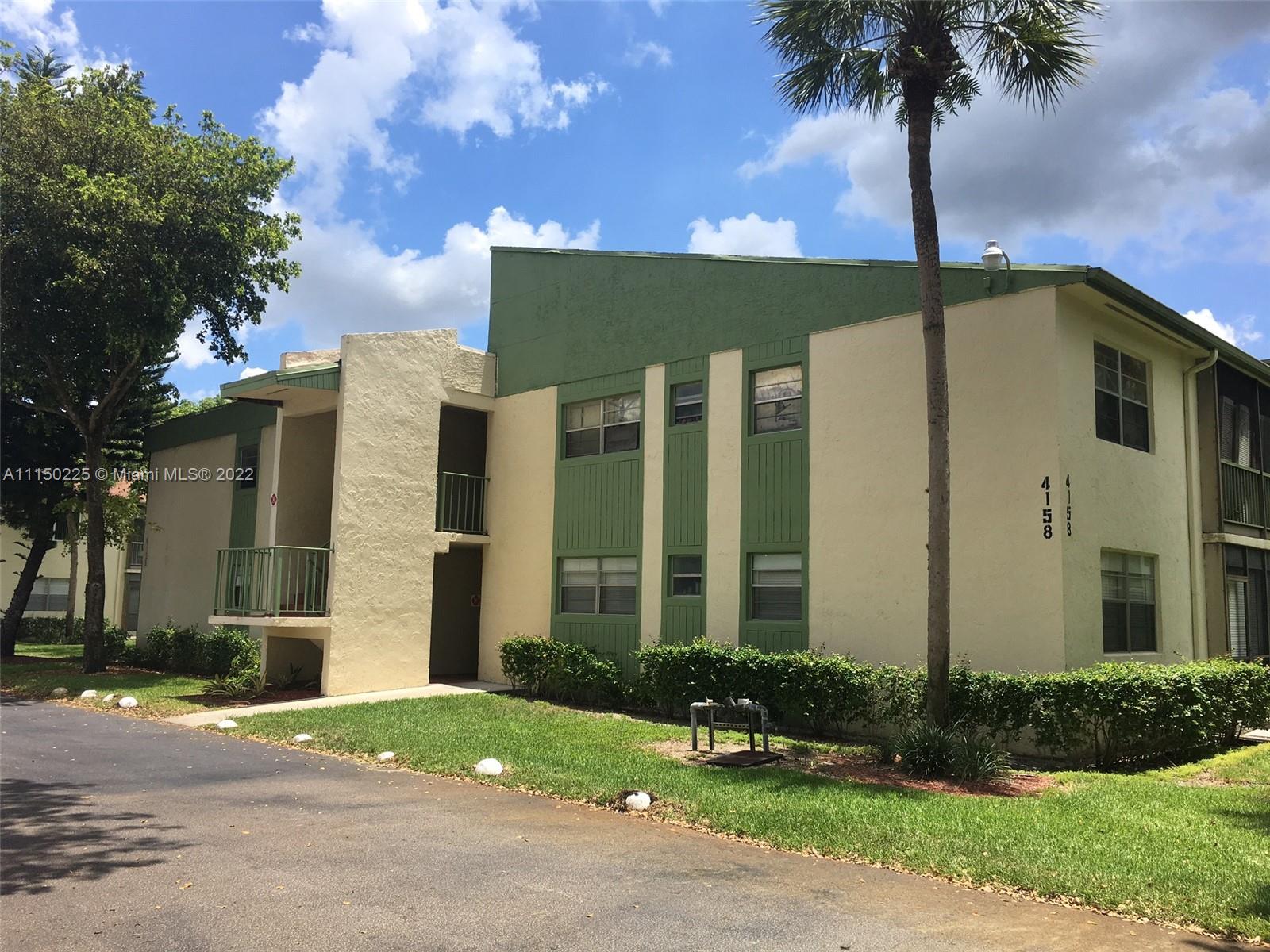 Ample 2 bedrooms, 2 bathrooms 1st floor condo unit in the heart of Coral Springs! Condo features a lovely kitchen featuring granite counter tops and a pass through window to the dining area, perfect for entertaining. New AC installed March 2022. Both bathrooms updated March 2022. A spacious living/dining room combination with sliders that open up to a screened patio. The spacious master bedroom also features sliders that open up to a separate screened patio. Walk-in closets in both bedrooms. Interior washer and dryer, exterior storage and laminate wood flooring are other features. Per the Association, this is an all ages community. No pets allowed.