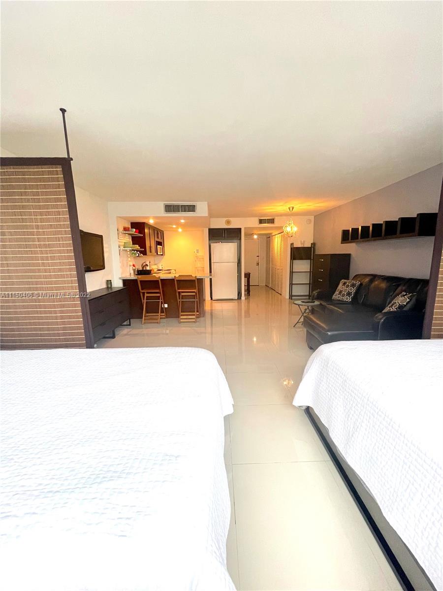 Beautiful & spacious studio in the heart of Sunny Isles Beach. Updated Kitchen & Bathroom , ceramic tile floor. Unit comes fully furnished, including two beds. Walking distance to the beach, cafes, restaurants, shopping centers, A+ school. 1 covered parking space and storage. Maintenance includes Water, Wi-Fi & basic cable. The building has a pool, fitness center, common laundry, party room, BBQ area and much more. On site management, 24-hour security. Low association fee. Ready to move in!