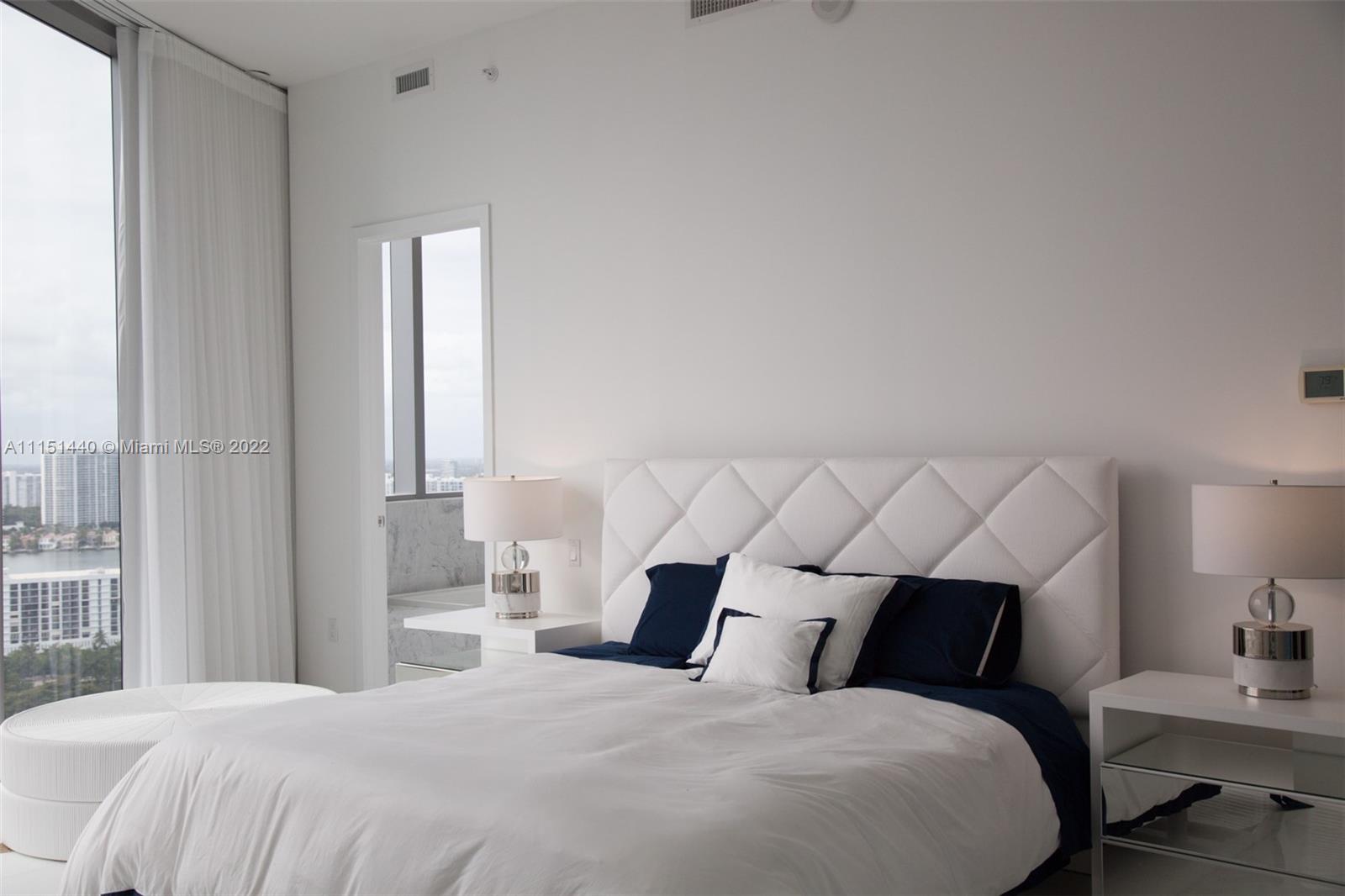 STUNNING!! BREATHTAKING VIEWS OF OCEAN AND INTRACOASTAL FROM THIS BEAUTIFULLY DONE 2 PLUS DEN, 3 FULL BATHROOMS IN PRESTIGIOUS CHATEAU BEACH IN SUNNY ISLES. WHITE MARBLE FLOORS THROUGHOUT. ELECTRIC DRAPES, DESIGNER FURNITURE BY ARTEFACTO ALMOST NO USE ALSO FOR SALE. MUST SEE!!