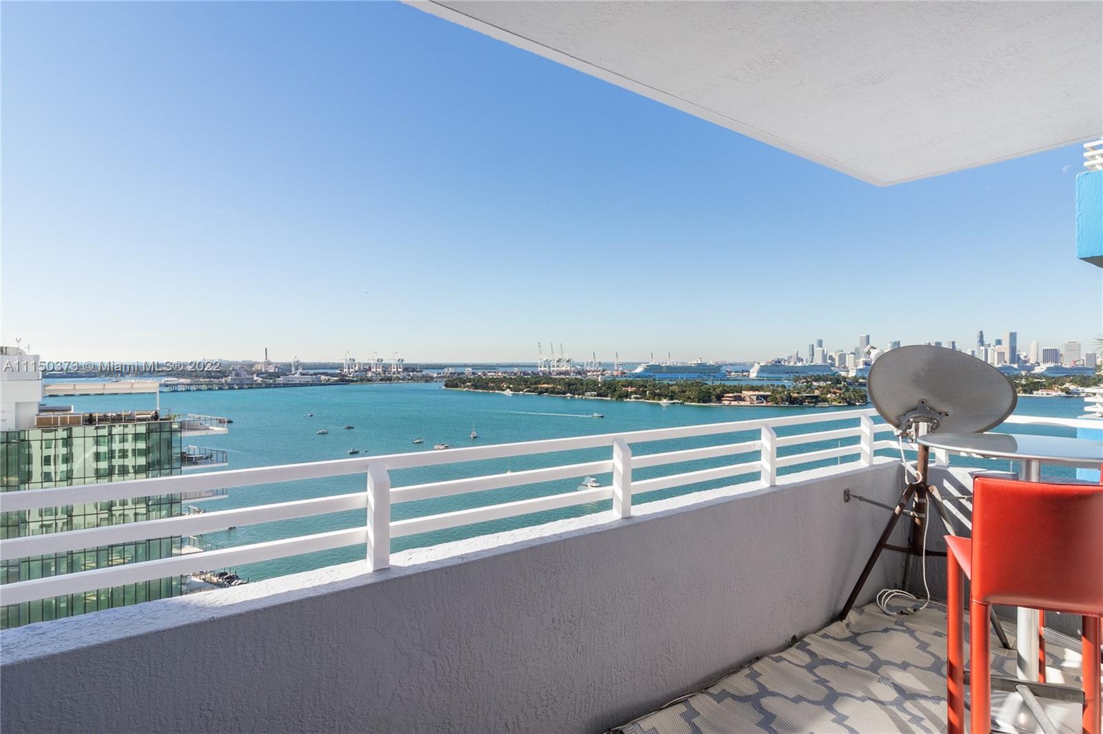 Amazing bay views, Star Island, Miami skyline and cruise ships from the 20th floor split plan unit. Large balcony with southern exposure, Walk to Lincoln Road SHOPPING MALL, theaters, & restaurants. apartment has spacious split floor plan 2 bed 2 bath, washer dryer. Full service building, 24 Hour valet & front desk, Fitness Center, Market, ATM, Tennis, Heated Bayfront Pool, Sand Volley, BBq.