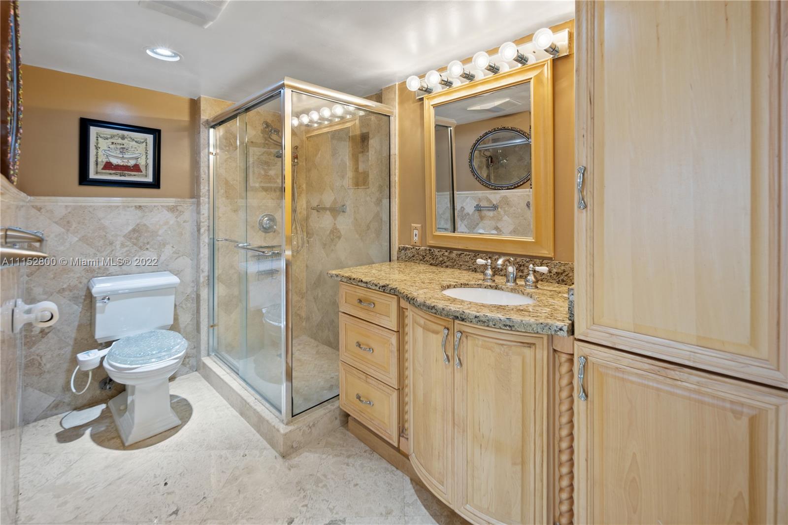 BEAUTIFUL 2 BEDROOM CONDO BY THE BEACH Split floor plan with each bedroom on opposite side. Wood floors in bedrooms and white tile in living areas. Updated kitchen with stainless steel appliances. Plenty of storage space. Linen closets, pantry closet for food and household items. WASHER AND DRYER INSIDE UNIT. Huge balcony with views of the intracoastal and city lights. Glass shower in one bathroom and expensive walk-in jetted tub in the other for ultimate relaxation. Large master bedroom. Large walk-in closets in both bedrooms. 1 parking spot included. 2nd parking spot for sale covered for $30k Assessment has been paid in full by seller to redo the pool and balconies. Priced to sell based on comps. Owner is firm. Investors, you can rent right away. Watch virtual tour!