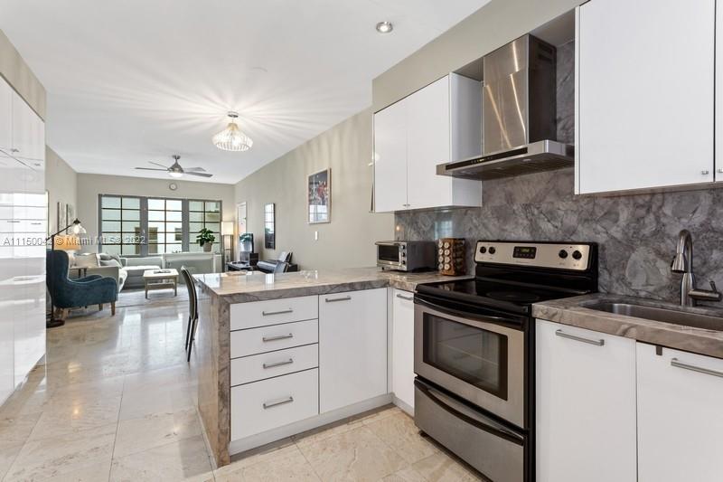 Welcome to Sage on Lenox. This top floor, corner 2-bed/2-bath has been meticulously renovated throughout. The very spacious and bright dwelling has been updated with new, open kitchen featuring sumptuous marble counters and ss appliances. Custom built closets and cabinetry offer incredible storage solutions throughout the home. Renovated baths, recessed lighting, marble floor and impact windows make this your perfect move-in ready South Beach pad. Ideally located 1 block from flamingo park and Whole Foods.