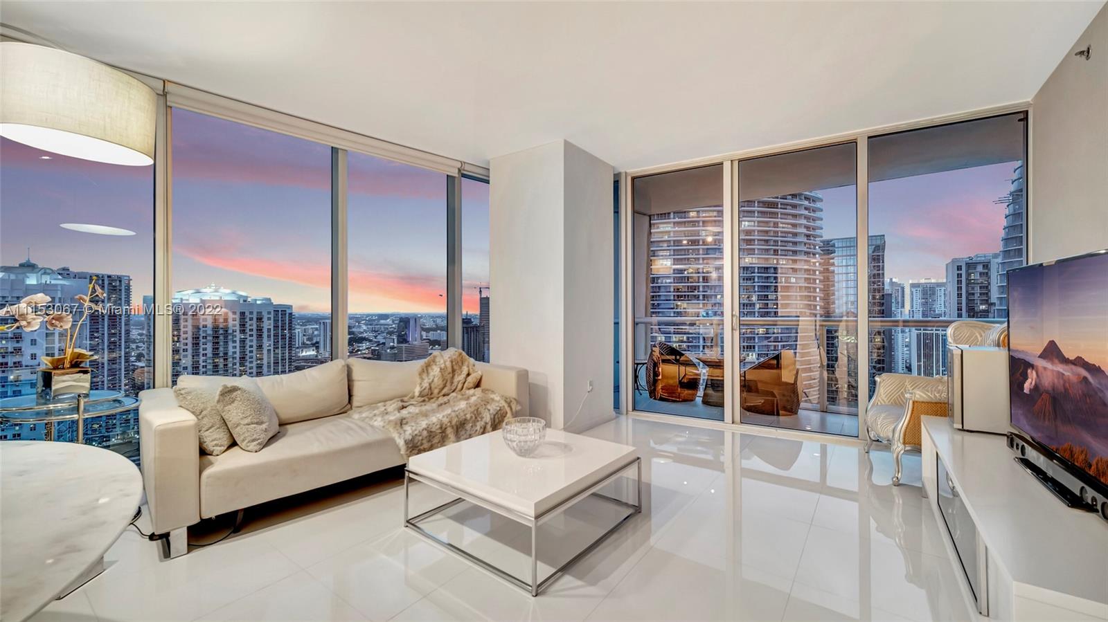 Corner unit in the sky boasts both water views and city views. Floor-to-ceiling windows add an extra layer of elegance and natural light. Glide to the balcony and enjoy the bay and river view resting against the Miami skyline. Wolf and sub zero appliances. Washer and dryer, accent walls throughout, and luxury finishes ranging from the European cabinetry to the white porcelain tiles. The Icon itself has some of the best amenities in Brickell: a state of the art fitness center, ultra luxurious spa, and one of the largest pool decks in the city. The pool deck houses two restaurants, private cabanas, and poolside service. Furniture is negotiable.