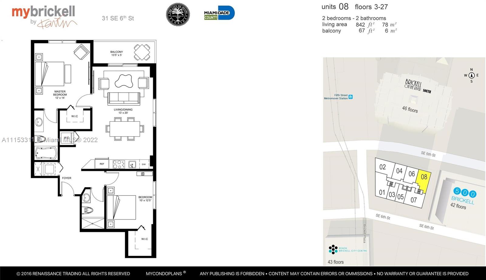 Lovely, brigth 2 bed 2 Bath corner unit on split floor plan in the best of Brickell, next to Brickell City Center. It is a very well managed boutique building with only 192 units. The unit has an exceptional great lay out with ample Walk in closets in both Bedrooms. It is a wonderful unit to live in and great for investment. Nice amenities, Pool Gym Social Room with pool table and a great bycicle room. It is ONE of the few buildings in Brickell which allow minimum 30 days rentals 12 times a year! Pets are welcome too!