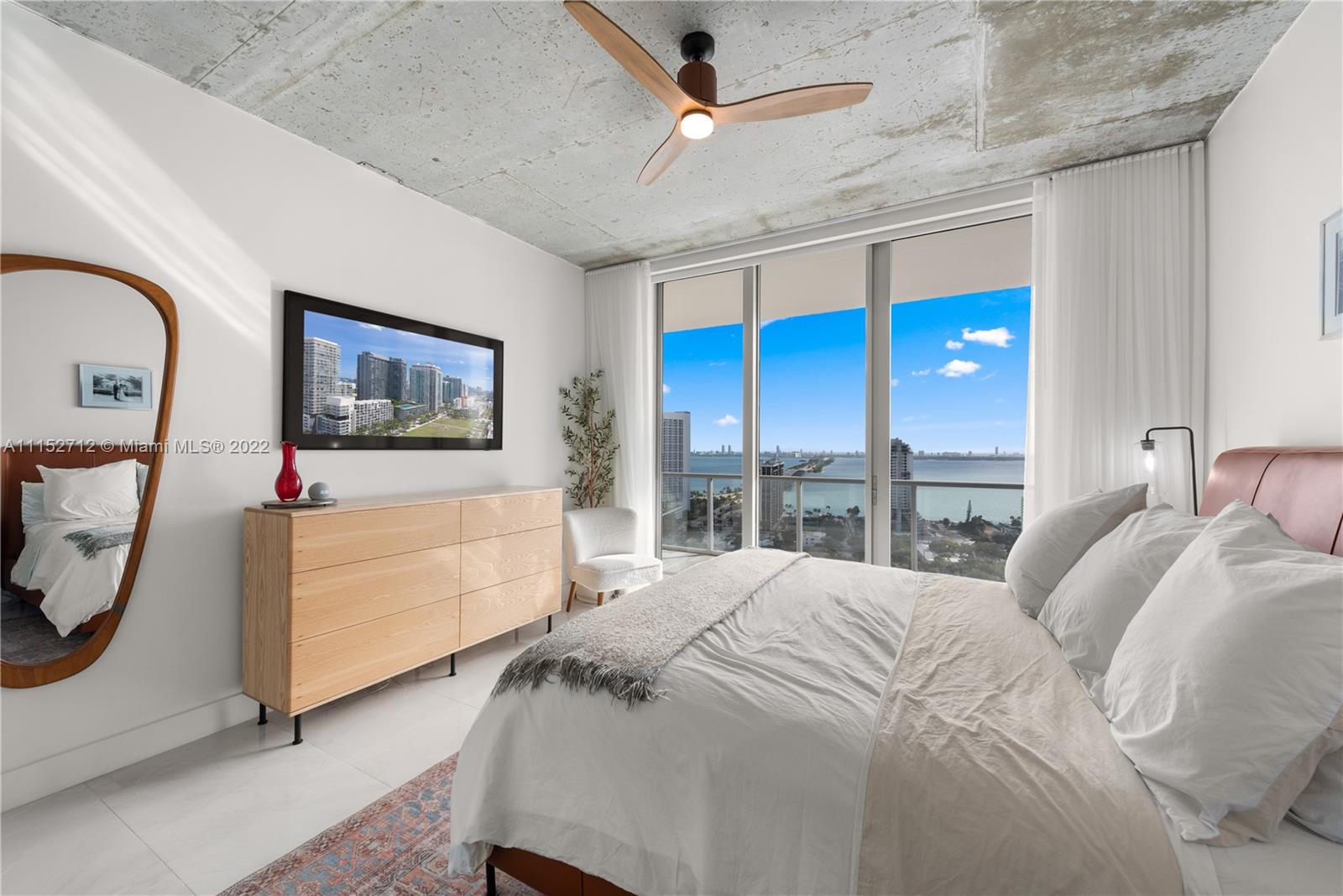 Renovated w/ Style! Enjoy breathtaking views of Biscayne Bay & the skyline from this 3 bed 2.5 bath NE corner, high-floor residence featuring over 2,200 of completely remodeled interior & exterior square feet w/ Custom Two-tone Kitchen & Quartz Waterfall Island, Wine cooler & GE Profile appliances, New Bathrooms w/ upgraded sinks, millwork & toilets, Hansgrohe primary shower system, Brizo Litze faucets throughout, Opustone walls, oversized Parmesa Ceramica tiles, Designer interior doors & closets, new Bosch A/C, Restored Concrete ceilings & tiled 672 SqFt terrace w/ dramatic views day & night. 2Midtown is a full service condo w/ luxury services & amenities including concierge & poolside towel service. Walk to the best shopping & cultural experiences where Wynwood meets the Design District.