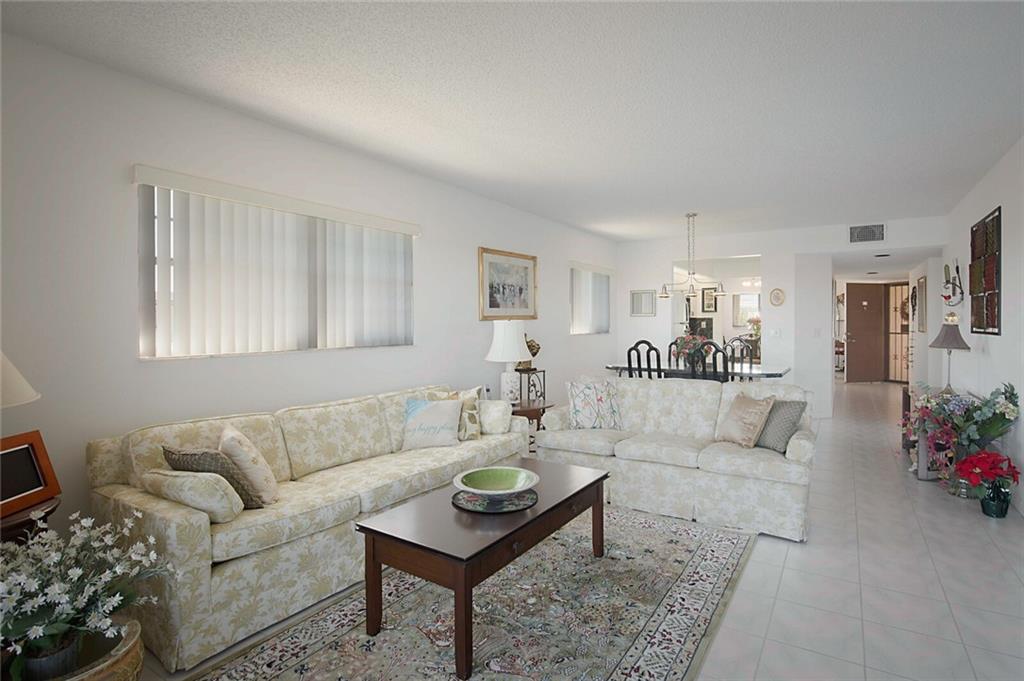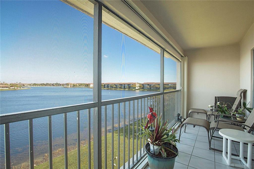 Remodeled corner penthouse unit with serene wide lake views. This open floor plan feels like a private home with windows on 3 sides lots of natural light. Large covered and screened balcony with no one looking back at you expanding almost 17ft for additional indoor/outdoor living space. The roomy master bedroom can accommodate a sitting area or desk. There is no lack of storage here with 2 huge walk-ins, laundry room closets, a pantry, an attic + more. All windows are covered with hurricane-approved accordion shutters, washer/dryer in unit, parking space assigned is very close to the elevator. Internet-only $30@mo. This is a 55+ resort-style community with 24-hour security, indoor/outdoor pools, golf, tennis, fitness rooms, theatre, restaurants, courtesy bus++ "Equal Housing Opportunity"