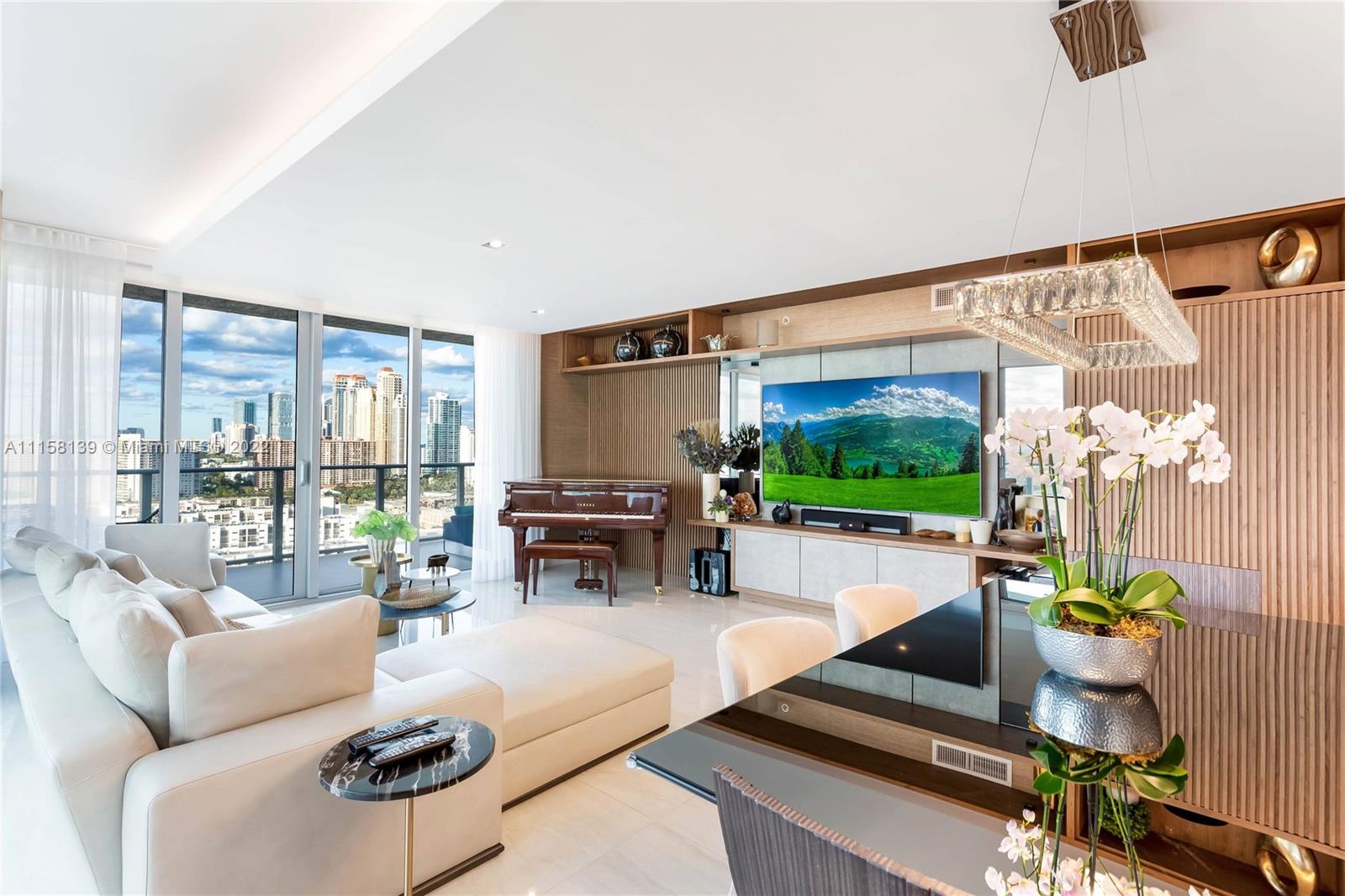 Sophistication meets a masterpiece! In the prime riviera-like Sunny Isles Beach location, this outstanding 1892 sq feet apartment reveals a stunning 3 bedrooms, 3 and half bathrooms harmonizing with a spacious dining room and living room, and a lux modern open concept kitchen. With over $450k High end finishes invested in, the exclusive details are essentially key to this inspiring apartment. From the balcony, an absolutely gorgeous view unveils landscape, ocean and bay. Perfect property to entertain guests and a cozy place for gathering family, this home is fully smart integrated. And it has been embodying South Florida’s indoor-outdoor lifestyle. Amenities includes 3 pools with resort-service, sauna, gym and jacuzzi. Truly one of a kind classy ambience from the inside out.