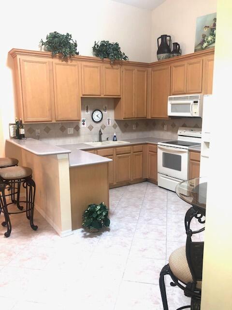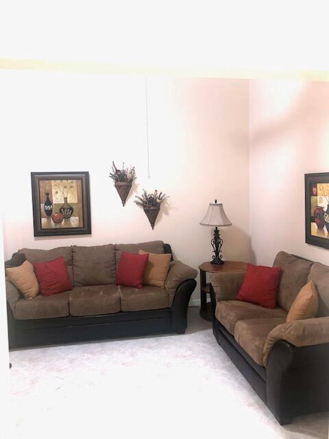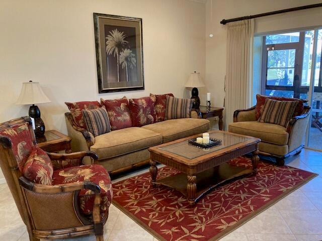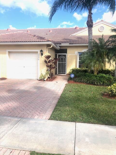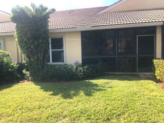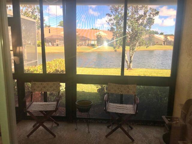 55+ community- Villa in a resort style community, with beautiful lake views from the living room, master bedroom and closed in patio. Features: 2 bedrooms, 2 bathrooms, Den, sliders out to the closed in patio area with a door & windows. Laundry room with entry also into the garage. Full size washer & dryer, Kitchen with pantry. Ceiling fans, accordion shutters, new garbage disposal, a/c replaced 7/2011 and in 2018 UV light installed for a/c. Roof repair done and skylights resealed 2021. Alarm system installed with key pad. Home has custom window treatments & floor safe. Complete shutters, tile at a diagonal selling furnished.