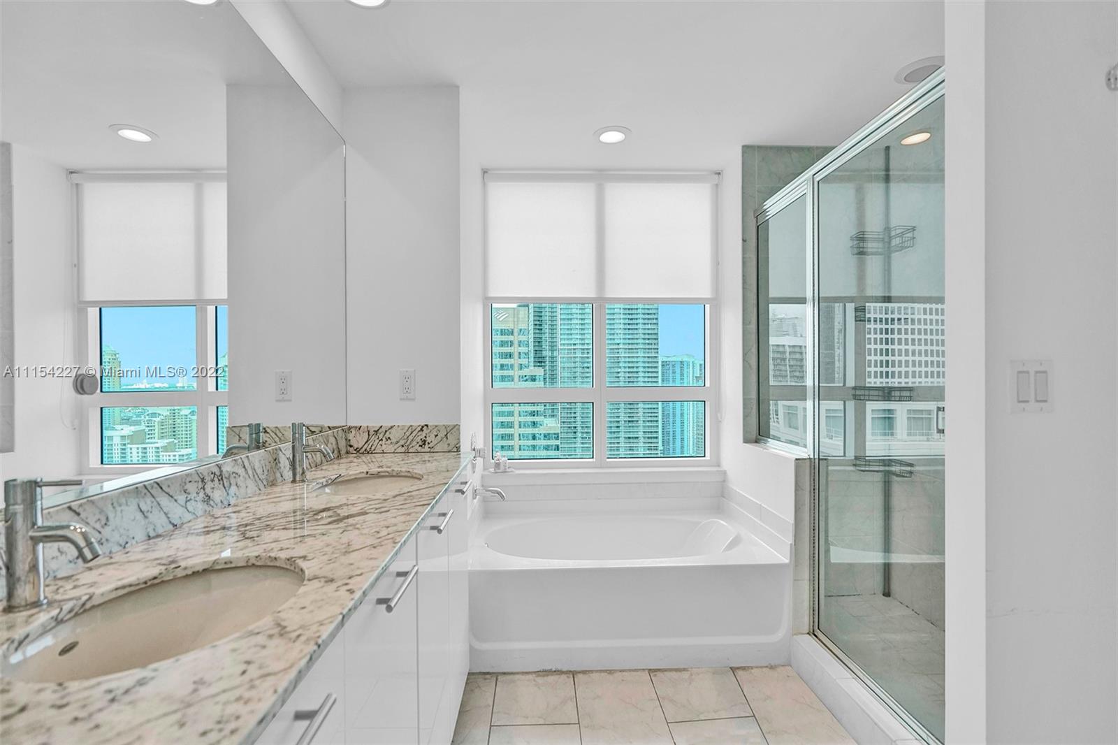 Breathtaking water views from the best corner unit: "10 line", rarely available on the Plaza on high floors! Features include wood-like porcelain floors, floor-to-ceiling glass windows, wrap-around terraces, and chef kitchen w/ss appliances. Great floor "split" plan. The Plaza is in the heart of Brickell, Miami's financial, just two blocks from Brickell City Center and world-class shopping and dining. Building amenities include a resort-style pool area with two large infinity pools, gym, steam room, spa, business center, party room, 24 hours concierge, valet, and much more! Steps to all city activities, shopping, and dining. NOTE: If a Realtor represents the client, it must accompany the showing.