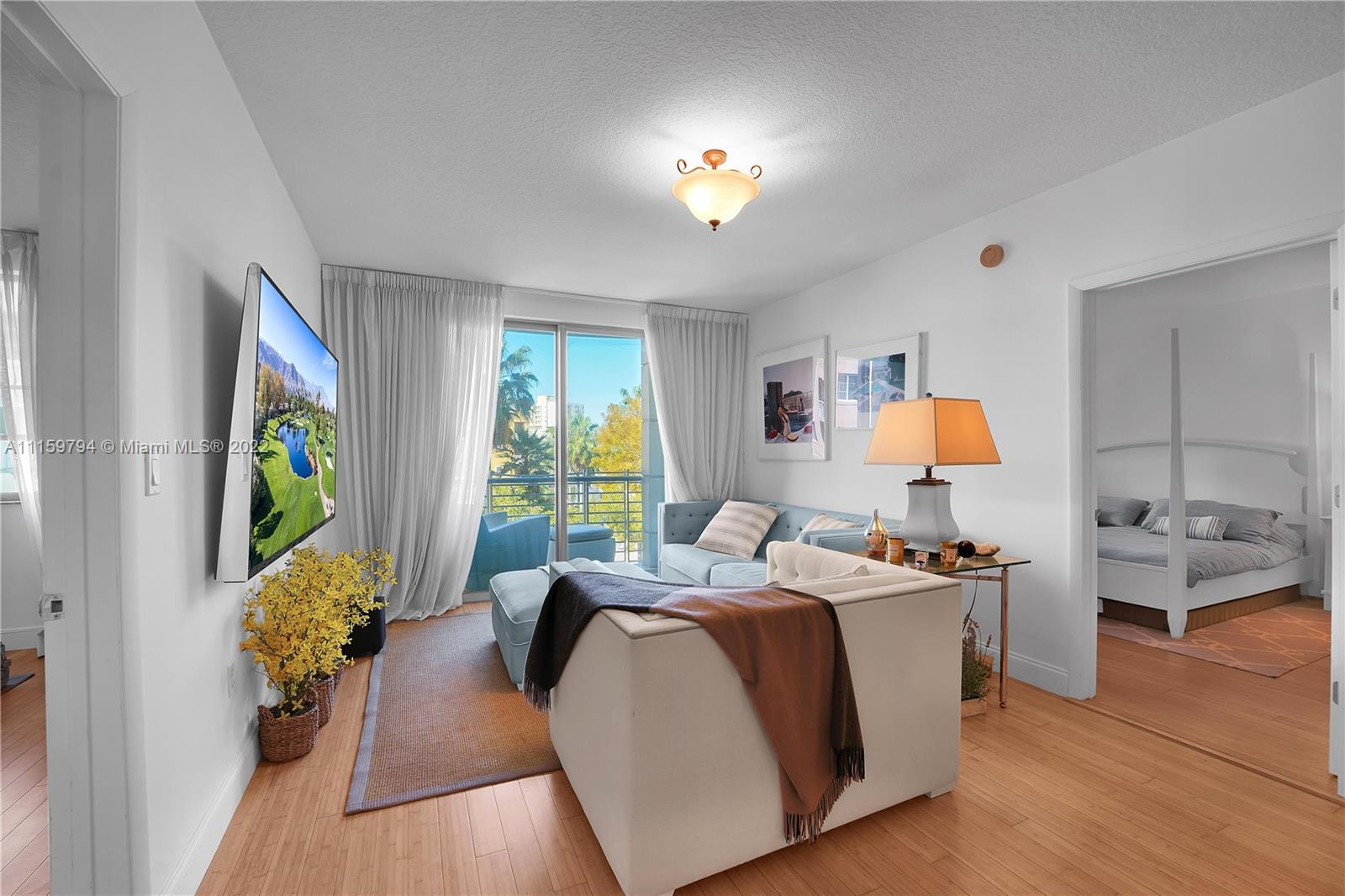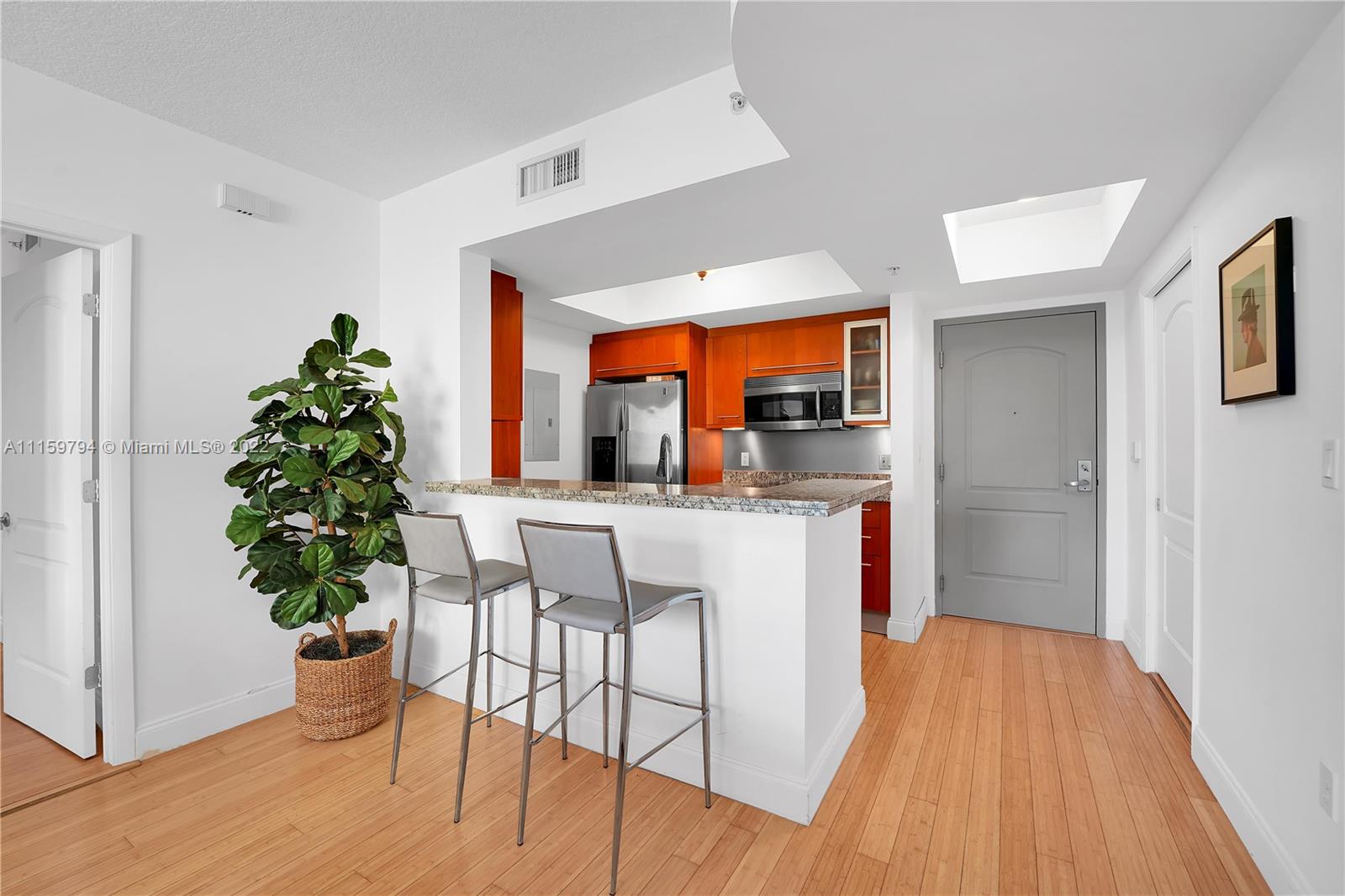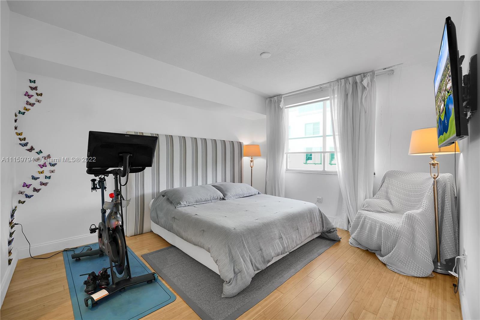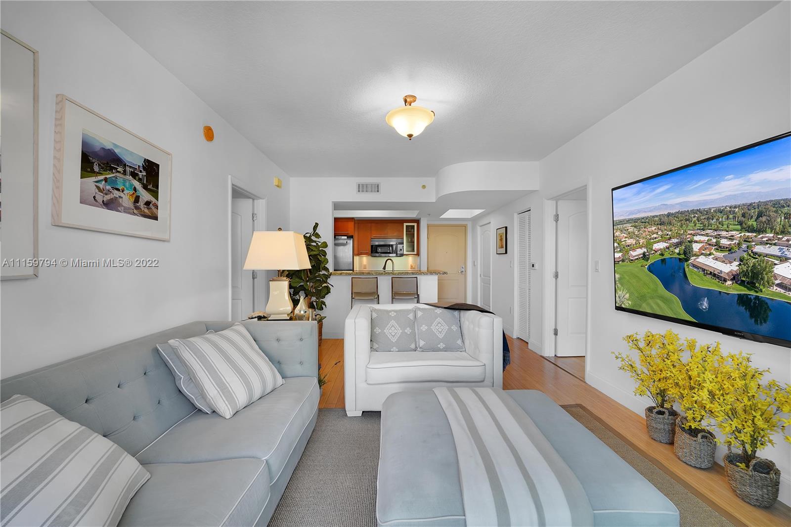 2 Bed/2 Bath, Bamboo floor, granite countertops, stainless steel appliances, new Washer and Dryer and recently replaced A/C unit. 1 Assigned Parking Space. Full Service Building, heated pool, spa, sauna, 24/7 Fitness Center. This unit faces Meridian Ave.