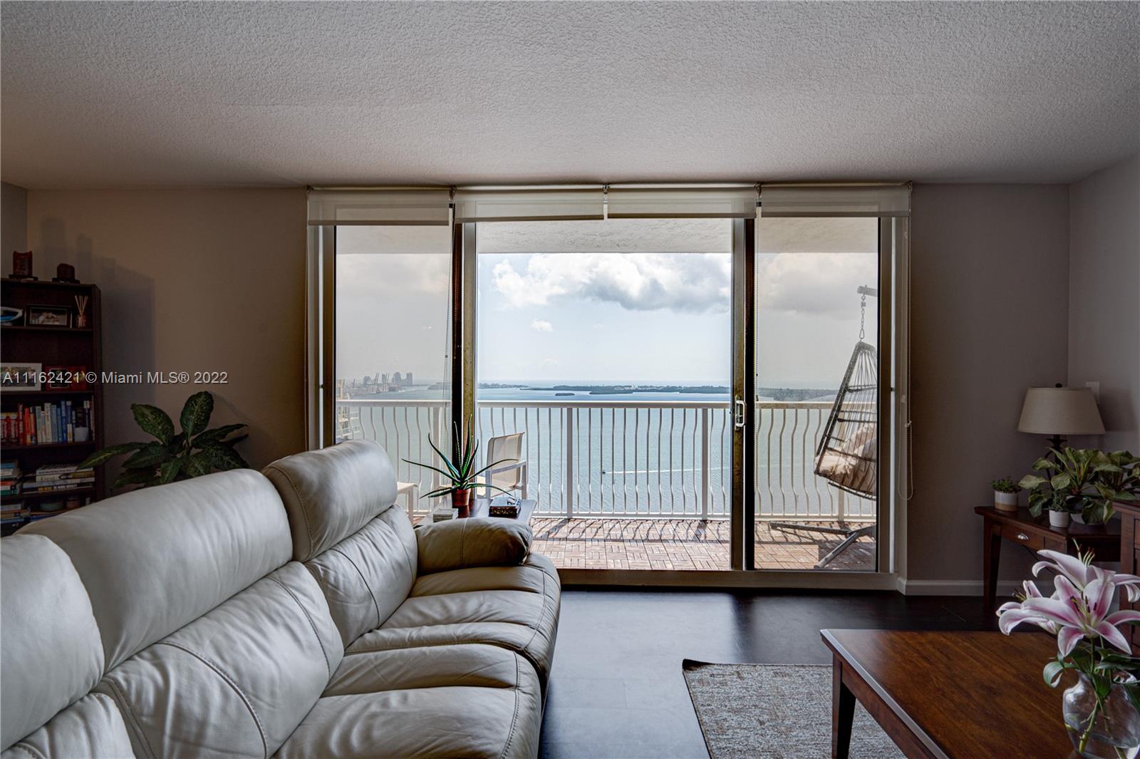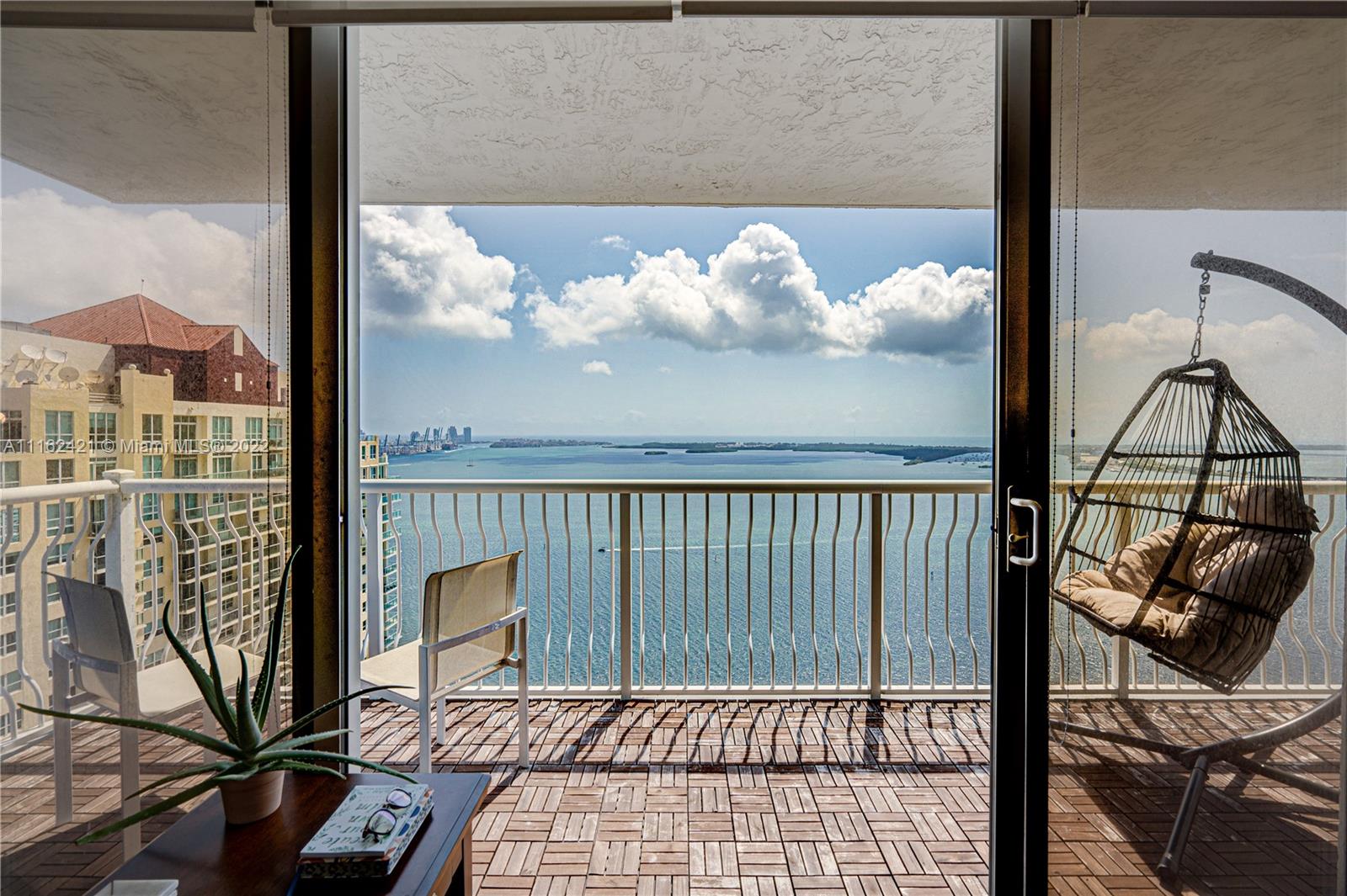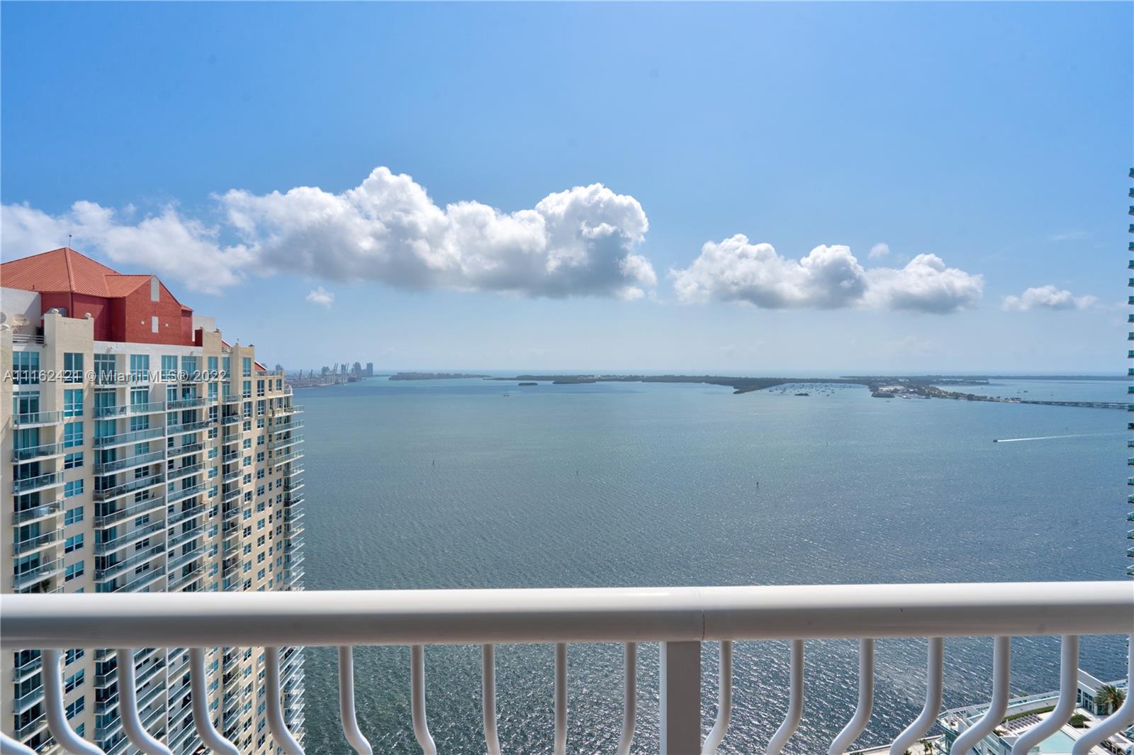 MILLION DOLLAR VIEWS FOR UNDER A MILLION! DIRECT WATER VIEWS FROM WRAP AROUND BALCONY ON THE 39TH FLOOR! SEE FISHER ISLAND, KEY BISCAYNE & even Cruise ships departing the port straight from your balcony! The LOW $783 monthly maintenance fees includes hot water, cable, internet, one assigned parking and full resort amenities in the heart of Brickell. Building is INVESTOR friendly, no rental restrictions for short term rentals! Unit has been renovated with wood floors in the living room areas, all appliances have been replaced within the past 3 years. The air conditioner & water heater are newly replaced. The unit is turn key and ready for your family & guests with unobstructed bay & ocean views.