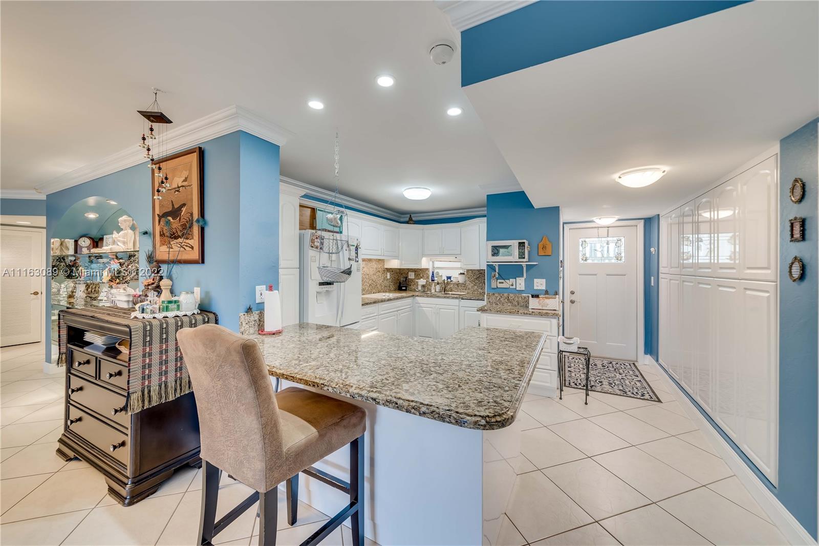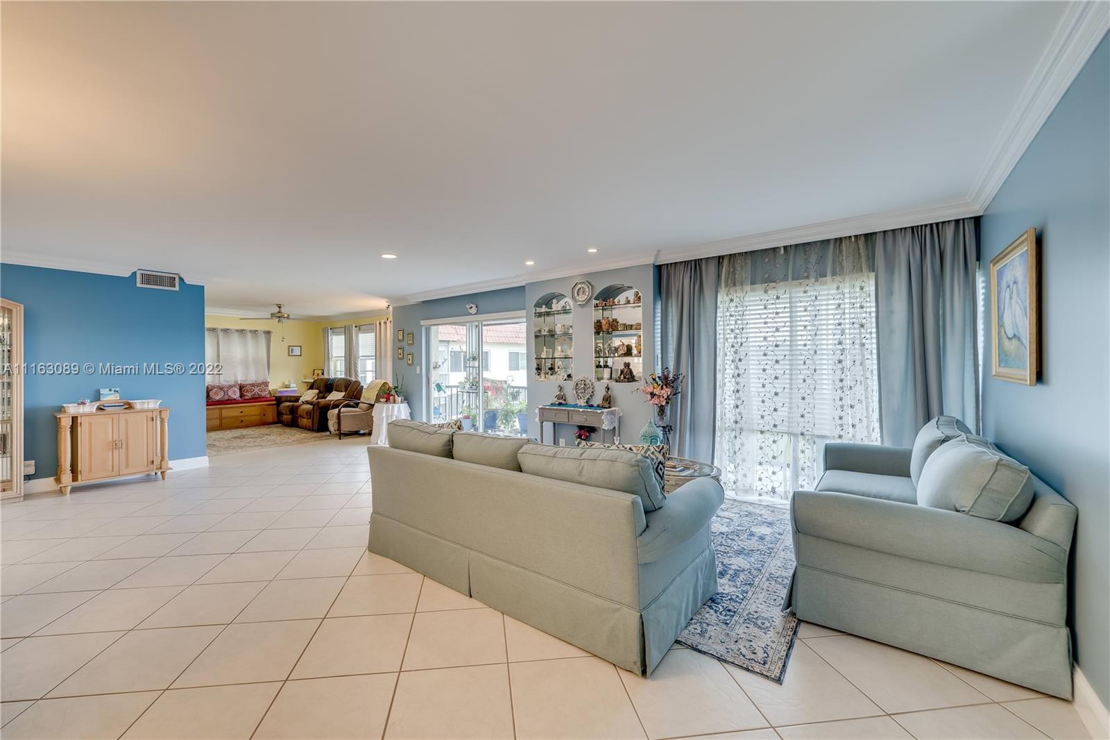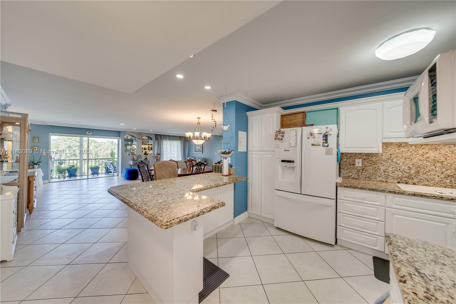 Beautiful one of a kind freshly painted double corner unit on top floor. Fully renovated 3 BR/4 BA unit w/ media wing. White kitchen with granite countertops. Updated bathrooms. 2nd kitchen converted to a laundry room with a 2nd refrigerator and plenty of storage. New Front doors, washer, and ceramic tile in bedrooms. Tastefully redesigned to allow for entertaining. 2340 Adj. Sq. Ft. Rec Lease fully paid off. 2 parking spaces and 2 separate storage units included. Enjoy all the resort style amenities offered by Hollybrook, including 2 golf courses, 14 tennis courts, 7 swimming pools, fitness center, theater, card rooms, restaurant and plenty more. Buyer can easily reconstruct back to 2 units. NOTE: Please see requirements to purchase in Hollybrook attached. Two units sold only as a pair.