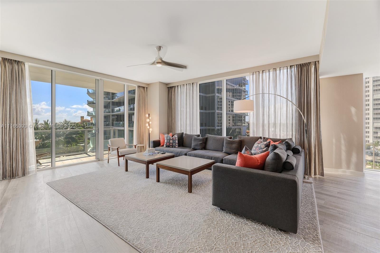 FULLY FURNISHED - TURN KEY! Step off your private elevator into this bright and spacious corner oceanfront flow-through residence with 4 bed/6 bath + Den and floor to ceiling glass spanning east - west. Professionally designed with rich details, neutral tones, wallpaper, custom drapery and built in cabinetry. Exceptionally finished with a Control 4 smart home system including motorized blinds, surround sound, large chef inspired kitchen, natural gas cooktop, Wolf appliances, subzero refrigerators and wine refrigerators. Auberge Beach is located on the sand with luxurious resort like amenities like no other property - on site oceanfront restaurant, full service Spa, golf simulator, wine lounge, cigar lounge, beach/pool attendants and so much more. Includes 2 storage units. Pet friendly.