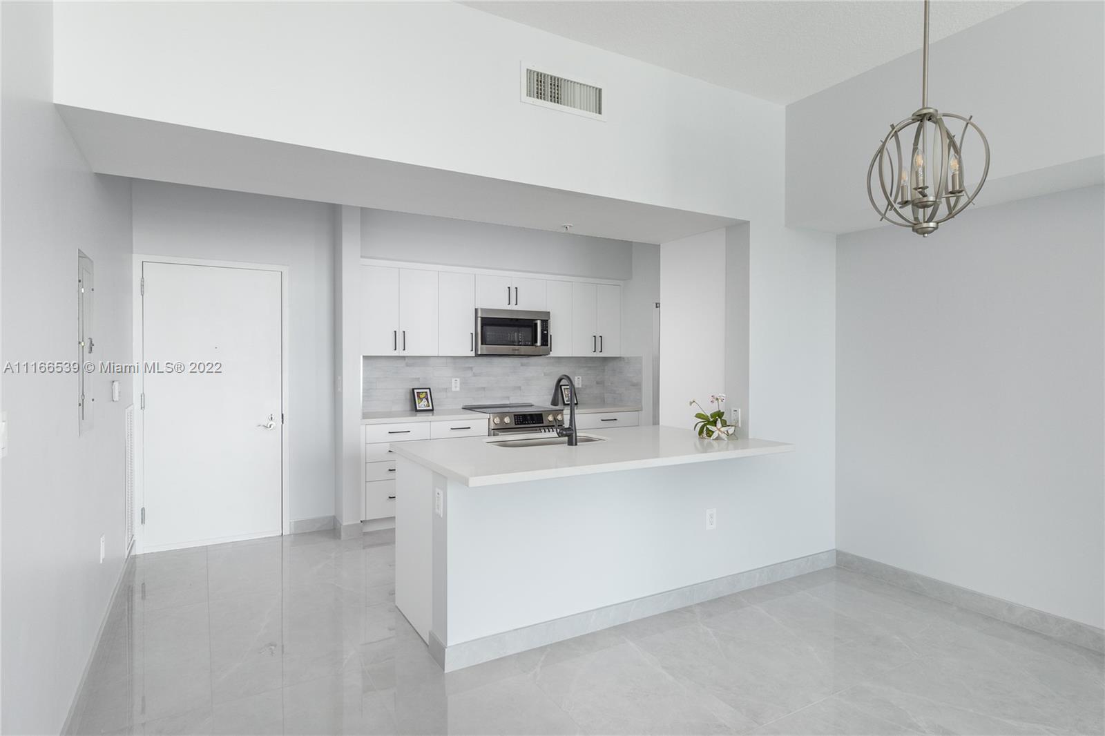 Recently finished complete renovation. This split 2 bdrm w/2 full bath has 10 ft ceilings. All Kitchen appliances are Bosch the electric range, dishwasher, microwave/convection oven, quartz countertop & tile backsplash. Pantry & Laundry room w/ full-size LG washer/dryer. Seamless tile floors 48 X 24. Both baths have been updated w/ all new tile, vanities, medicine cabinets, lighting, glass shower doors, Kohler showerheads. The Master bath has an extra-large sink & a seat in the shower. Custom closets throughout. The Master bedroom has its own balcony entry. All rooms look beyond the golf course towards the ocean & sunrises. A fully equipped gym overlooks the pool. Covered, above-ground parking. 24 hr security, concierge & valet service. Easy access to beaches, shops, I95 & FTL Airport.