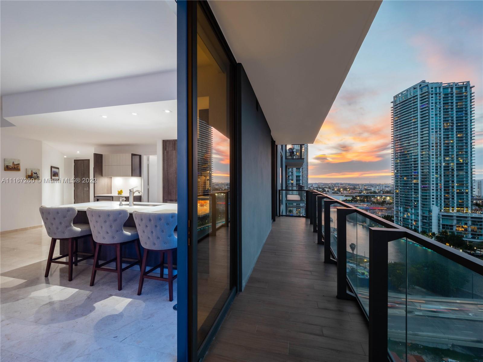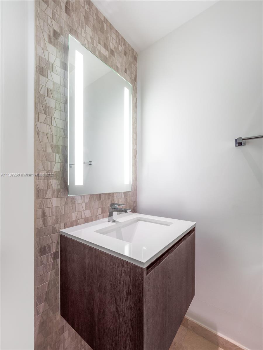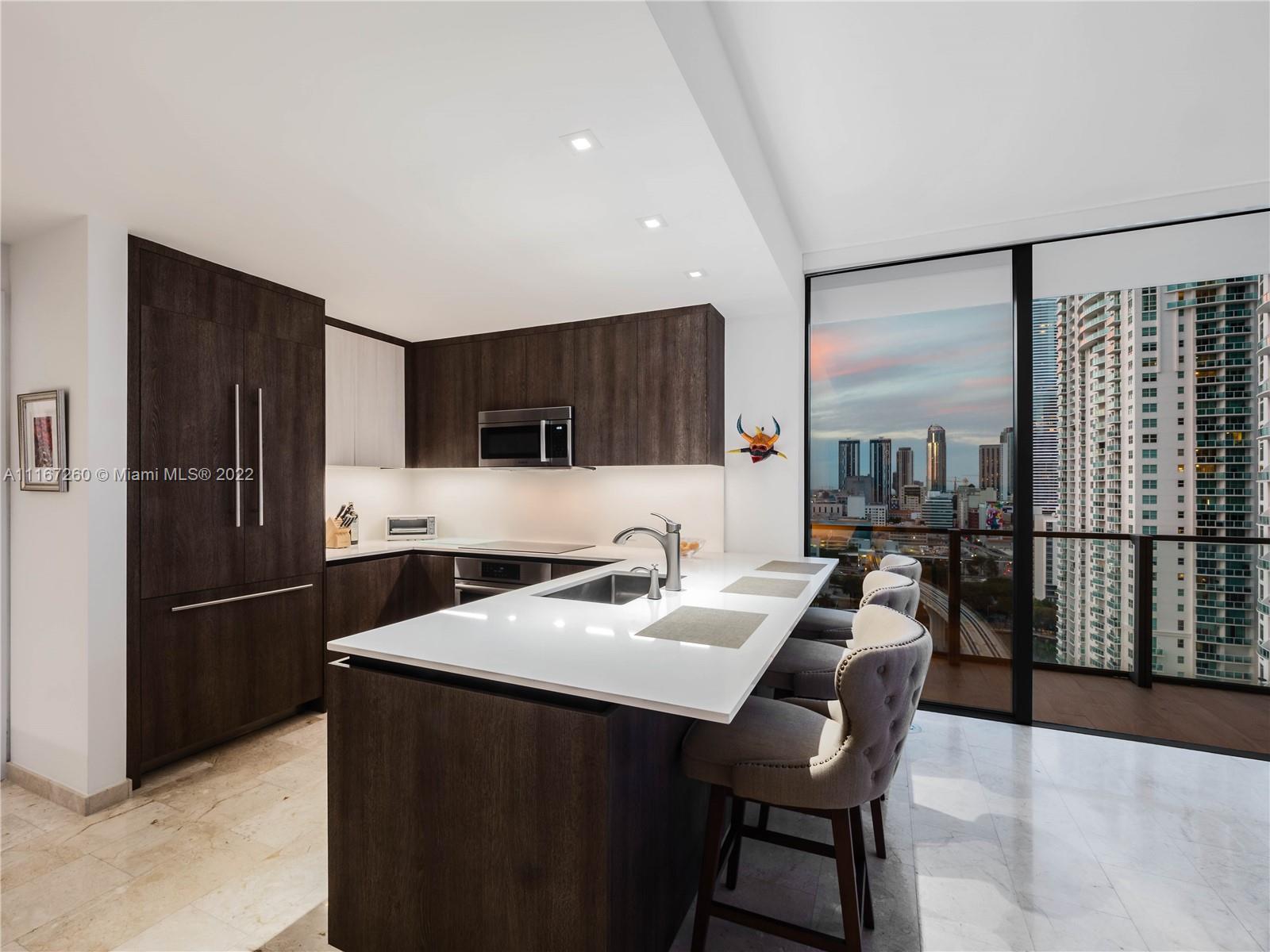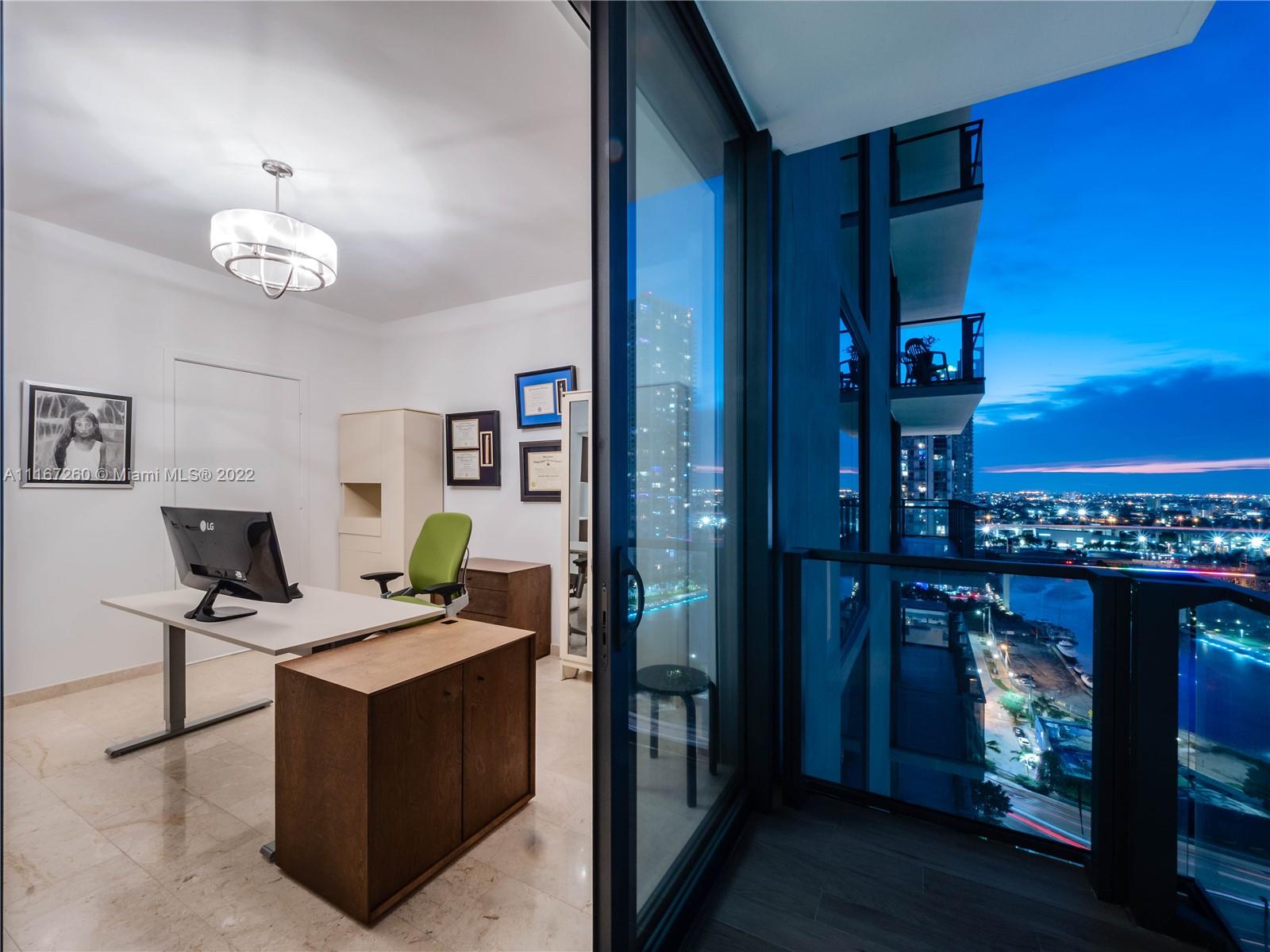 This unit is fully upgraded to give it a more practical and warmer feel. Bar / Wine Cooler station removed from the kitchen to its own stand-alone space using materials from developer with 4 extra cabinets for storage. Kitchen has upgraded cabinets. This Unit features 2 bedrooms with full walk-in closets and in suite bathrooms. The master bathroom features his/hers sinks, shower with custom shelving installed, brand new anti-fog mirrors, roll out shelves in the walk in closet, and remote controlled black out shades. The 2nd bedroom is currently used as an office with space enough for a queen-sized bed and extra linen closets in the bathroom - also equipped with remote controlled black out shades. The living room has automated / remote controlled shades and extra custom lighting throughout.