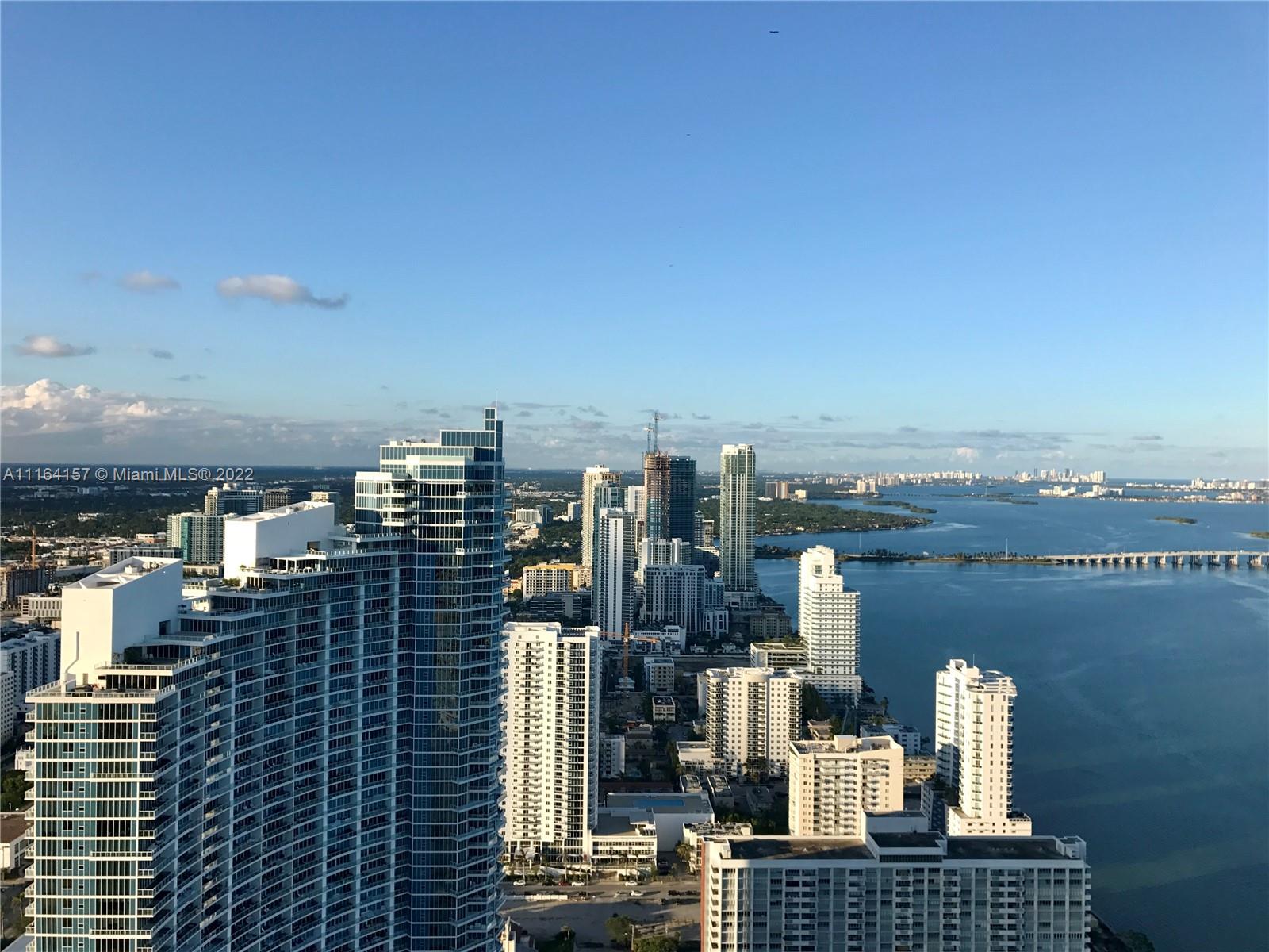 Best penthouse value in Edgewater! Rarely available 51st Floor, 3BR + Den/2.5Bth condo with endless views of Biscayne Bay & Miami Beach by day, a stunning skyline view by night. Almost 2000SF plus an additional 270SF terrace accessed by all rooms (2206 SF total). Excellent layout framed by 10 foot+ high ceilings and a deluxe master suite w/ 3 closets and double vanities. Two prime parking spaces located just steps from lobby. High speed internet & water included. Full-service amenity building w/ 24hr security, state-of-the-art fitness center, residents lounge, library, sauna, and 2 pools. Amazing investment for the future on Miami. Central location on Margaret Pace Park & minutes to the Design District, the airport, Midtown, Brickell & the beach. Miami will be at your fingertips.