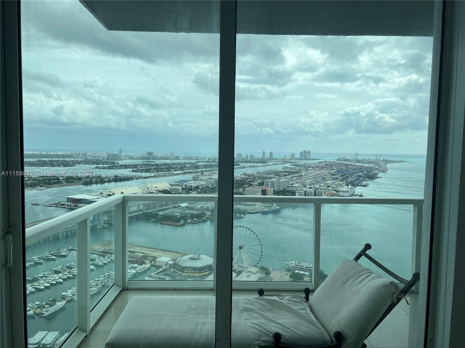 The most picturesque panoramic bay and city views from every corner of this fabulous 46th floor apartment. Large master bedroom. 2 parking spaces. Storage unit. 4 pools. Staffed fitness center & spa. Private theater. Business center. 24/7 security, valet & concierge. Walking distance to the very best of downtown Miami offers.