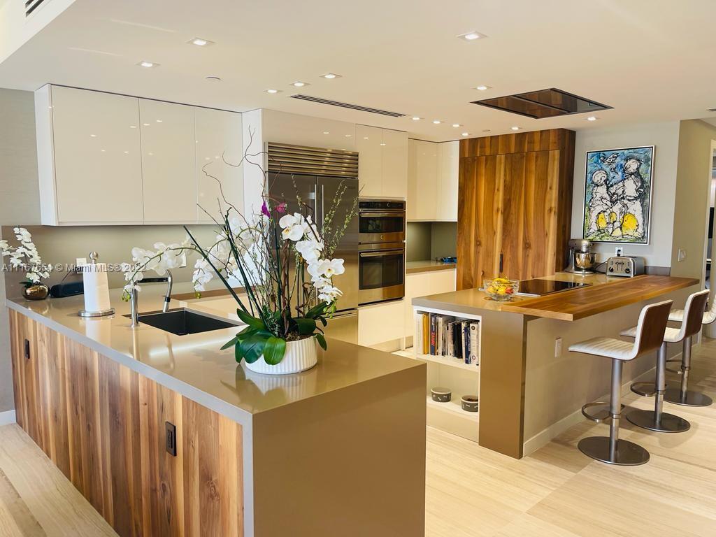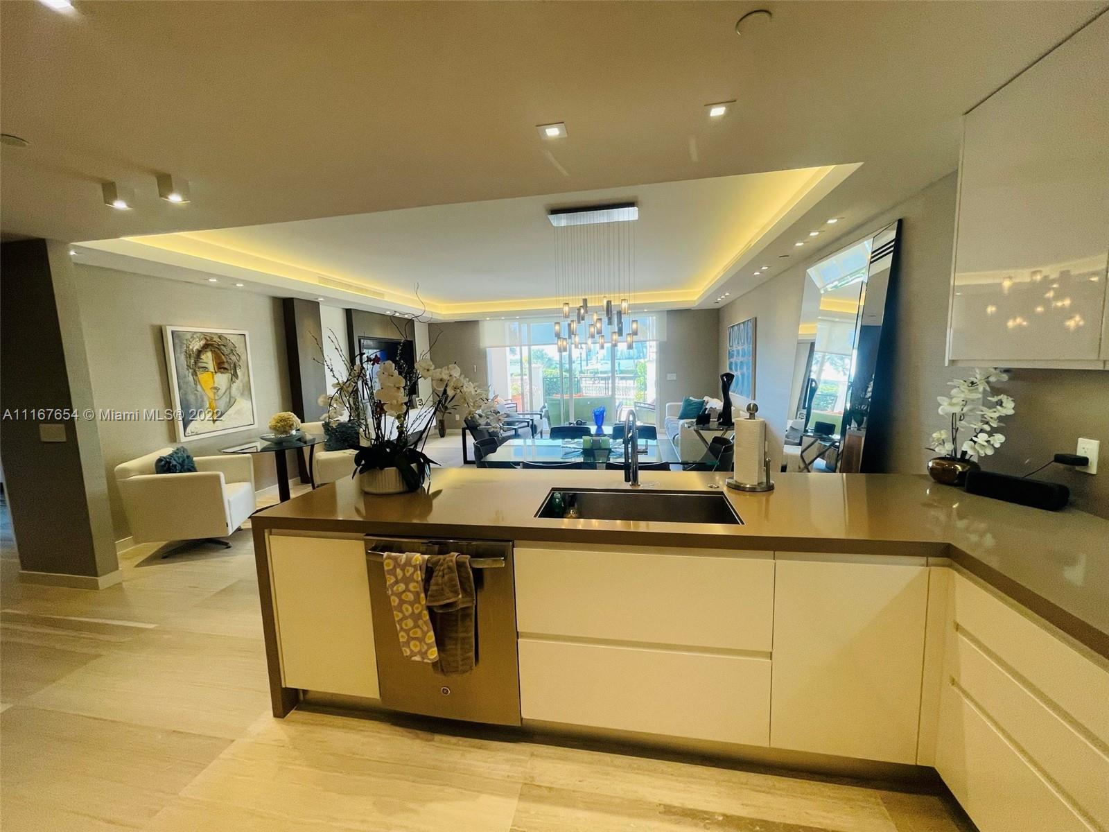 This stunning renovated ground floor Bayside Village condo features 3bed, 3bath, expansive terraces overlooking the pool and Biscayne Bay with breathtaking sunset views. It showcases : 2, 100 sq ft interior, open kitchen with top-of-the-line appliances, marble floors throughout, impacts glass doors and windows, and many more features. Live the Fisher Island lifestyle in this exceptional unit.