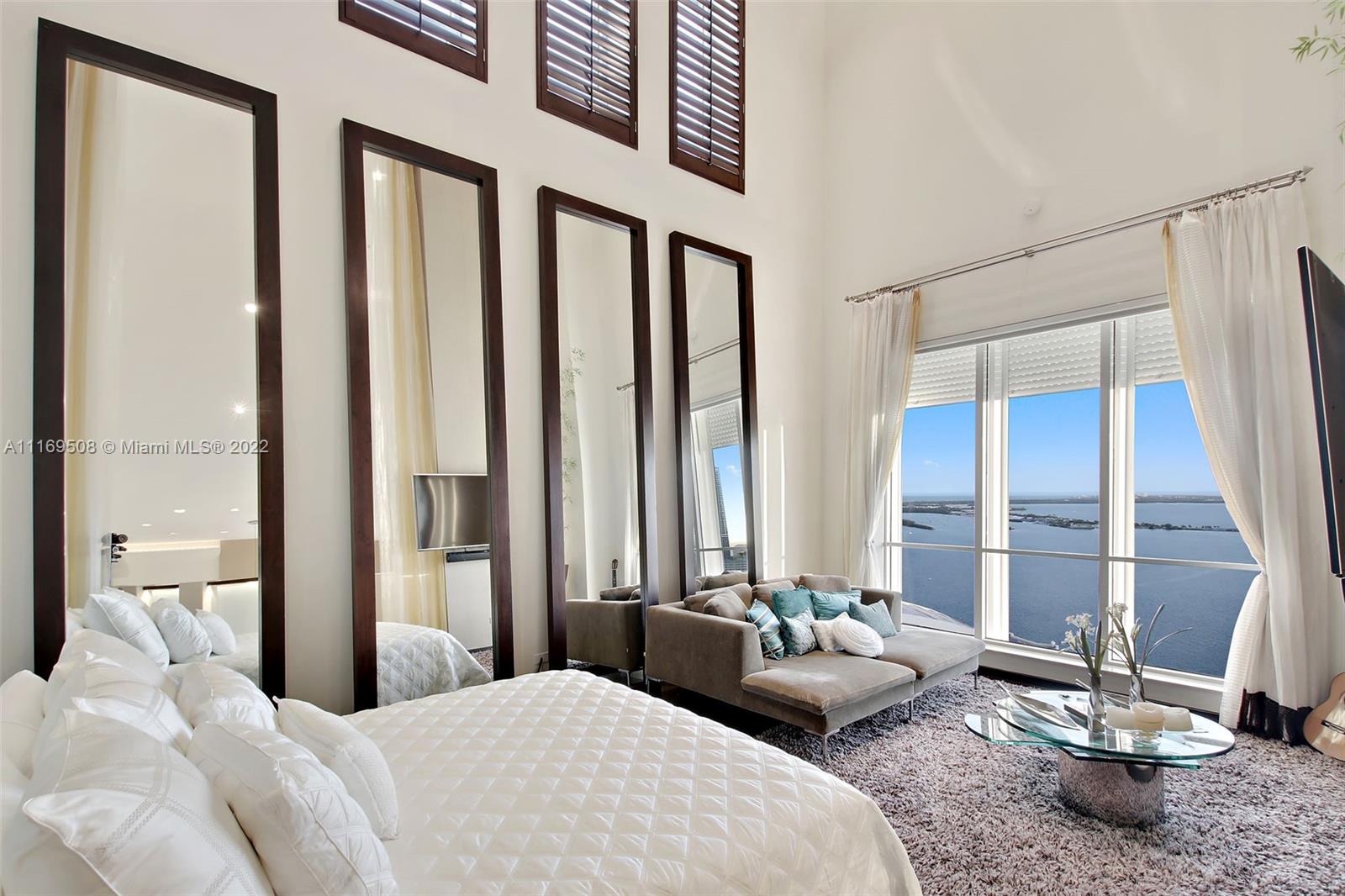 One of a kind offering. Absolutely the best on Brickell Key! This Penthouse is all about breathtaking, unobstructed water and skyline views, stunningly high 40ft ceilings. This unique property features 3 beds/3.5 baths plus office. All wood floors in bedrooms, marble in baths/kitchen. Closed private garage within the parking area with room for more than two cars, extra storage. A true gem! Among the building's amenities you will find pool, 2 level fitness center, BBQ area, tennis court & racquetball court, valet, concierge & much more. Best location within the sought after island of Brickell Key, minutes to the best shopping, dining Miami has to offer while in the quiet Brickell Key