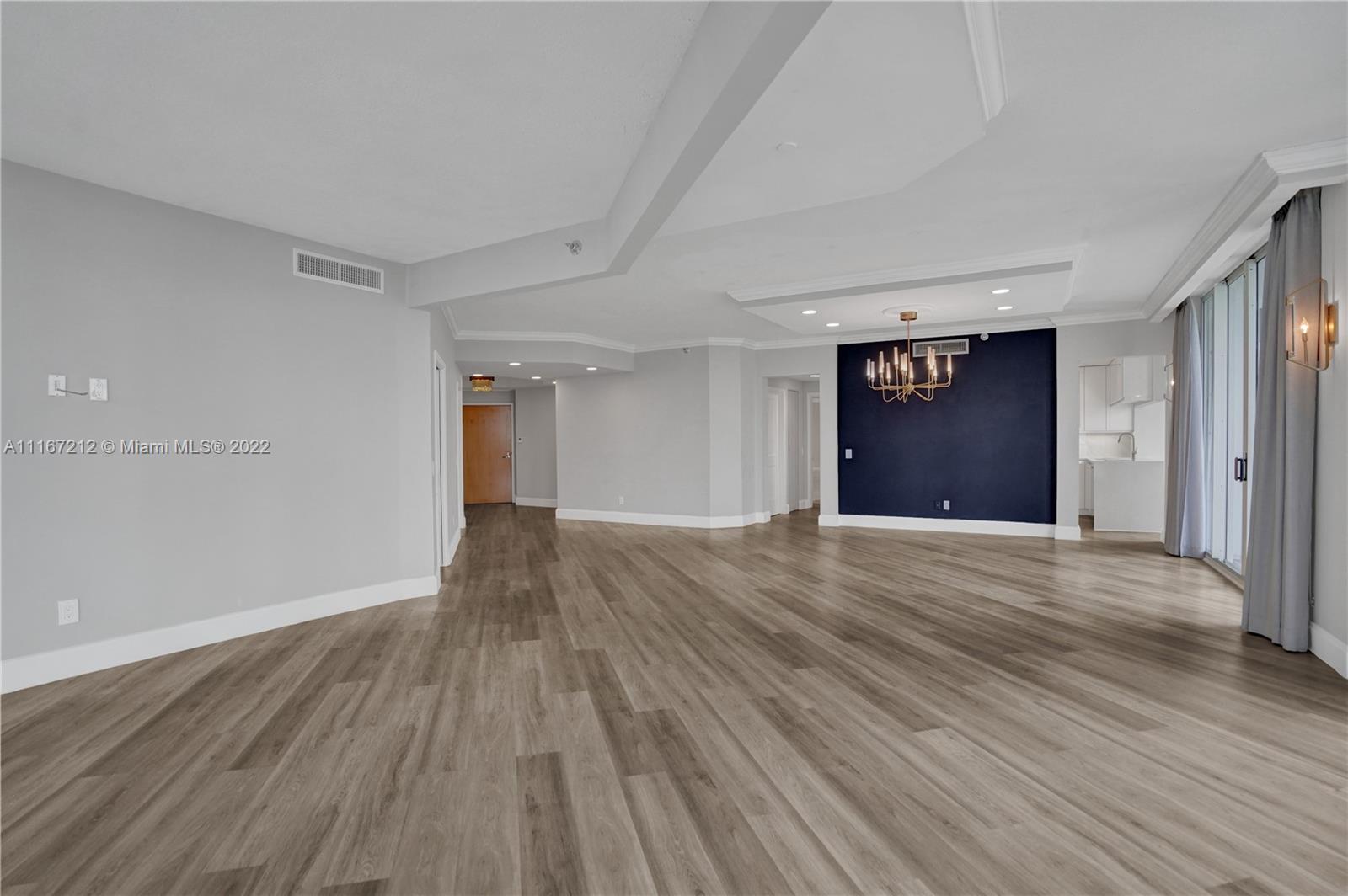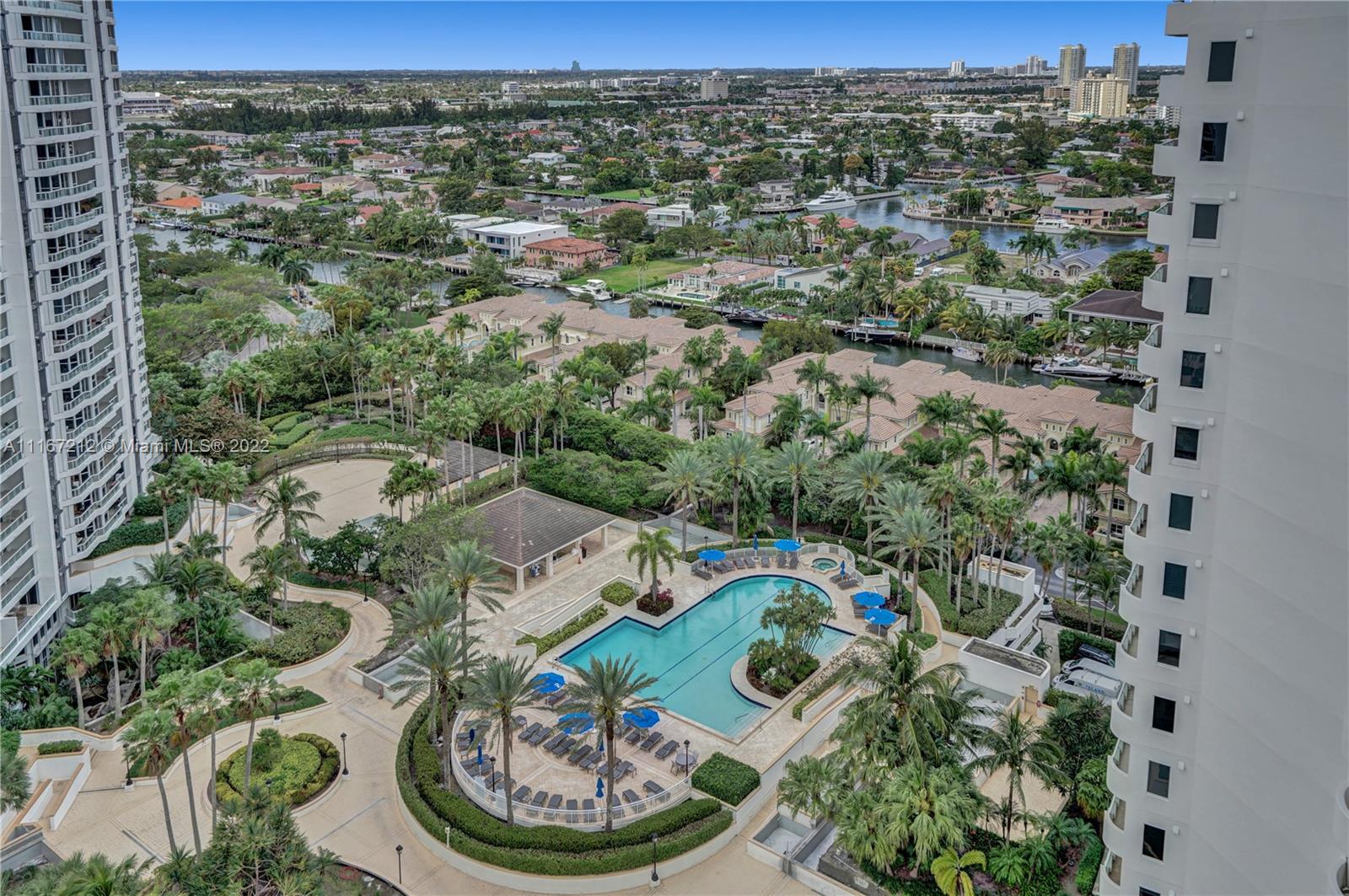 Bright and spacious corner unit in move-in condition. 2 bedrooms, 2.5 baths. A third bedroom can be easily added. The guest bathroom has been converted into an office and can be made a bathroom back. Panoramic views. Vinyl floors throughout. Motorized shades. Beautiful lighting fixtures. Open kitchen with breakfast area facing the marina of the Waterways. New cooktop, disposal, hood, dishwasher and sink with sensor. Pullout pantry. Spacious master bedroom, walk in closets. 2 parking spaces. Interior new doors. Contemporary lobby has just been renovated by Steven G. Resort lifestyle: 3 pools, tennis courts, spa, fitness center and clubhouse. Outdoor café, BBQ area & kids' playground. Walking distance to restaurants and shops. Call/text listing agent. Special assessments paid in full