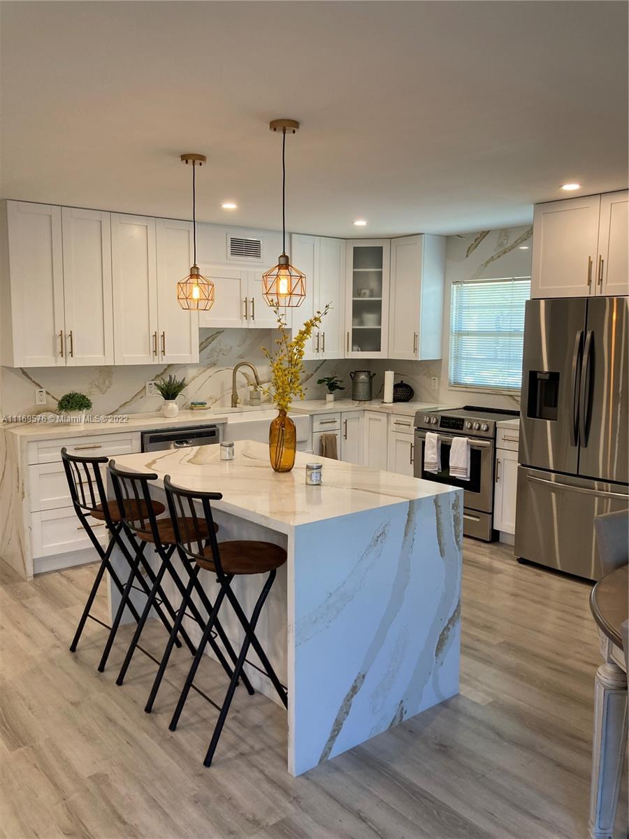 CORNER UNIT ON SECOND FLOOR TASTEFULLY DECORATED OPEN CONCEPT, MODERN VYNIL FLOORS, NEW BASEBOARDS, L.E.D. RECESSED LIGHTING, LARGE PANTRY WITH BARN DOORS, SPACIOUS KITCHEN W/EXTENDED CABINETS, QUARTZ WATER FALL COUNTER TOPS AND BACK SPLASH. UPGRADED BATHROOMS. UNIT CAN BE RENTED RIGHT AWAY. ONE PERSON HAS TO BE OVER 55.