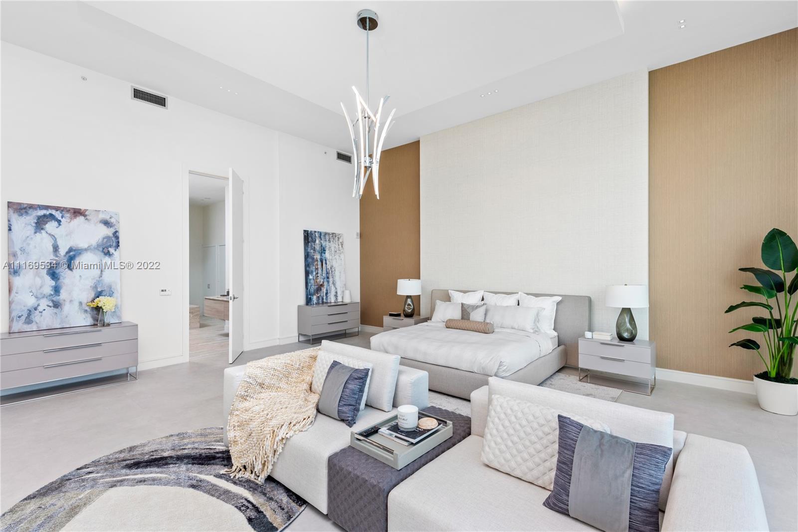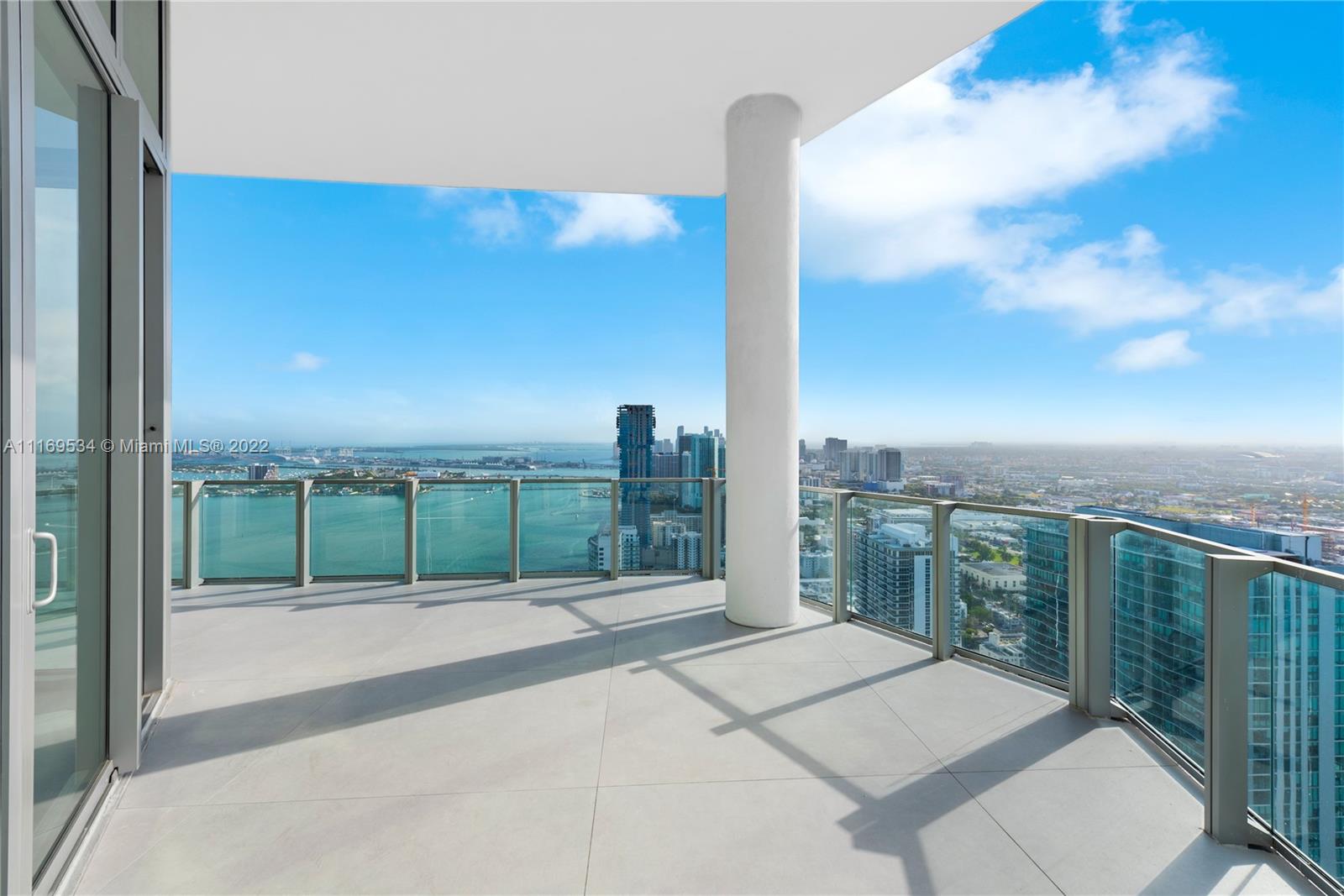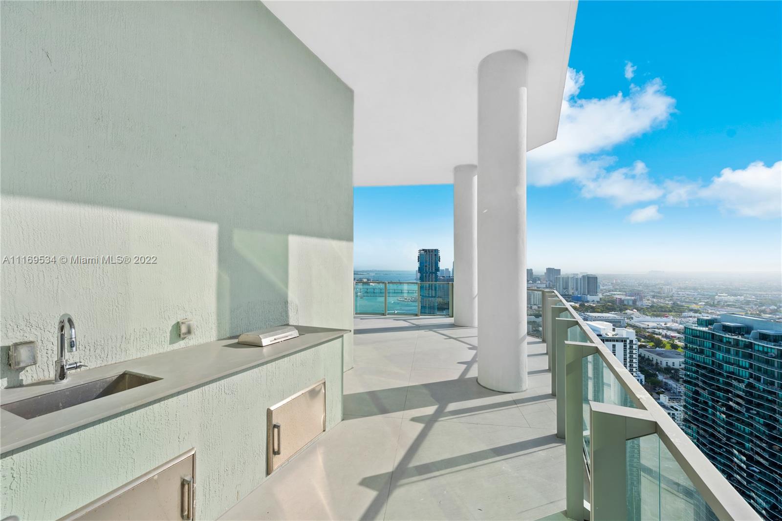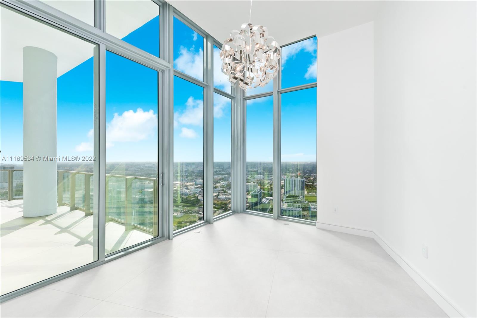 Enter this one-of-a-kind lower penthouse and be prepared to be awestruck. Enjoy wraparound views of Biscayne Bay and Miami Beach from soaring 15-ft floor-to-ceiling windows that welcome natural light throughout the entire penthouse. Special features include 60” x 60” tile, custom ceiling lighting plan, massive master bedroom with in-suite lounge, 4 guest suites + 1 staff room, a west-facing den, outdoor summer kitchen and 4 parking spaces. Located in the heart of all that is trending in Miami within a 5-10 minute drive to Design District, Wynwood, Downtown, Brickell and South Beach.