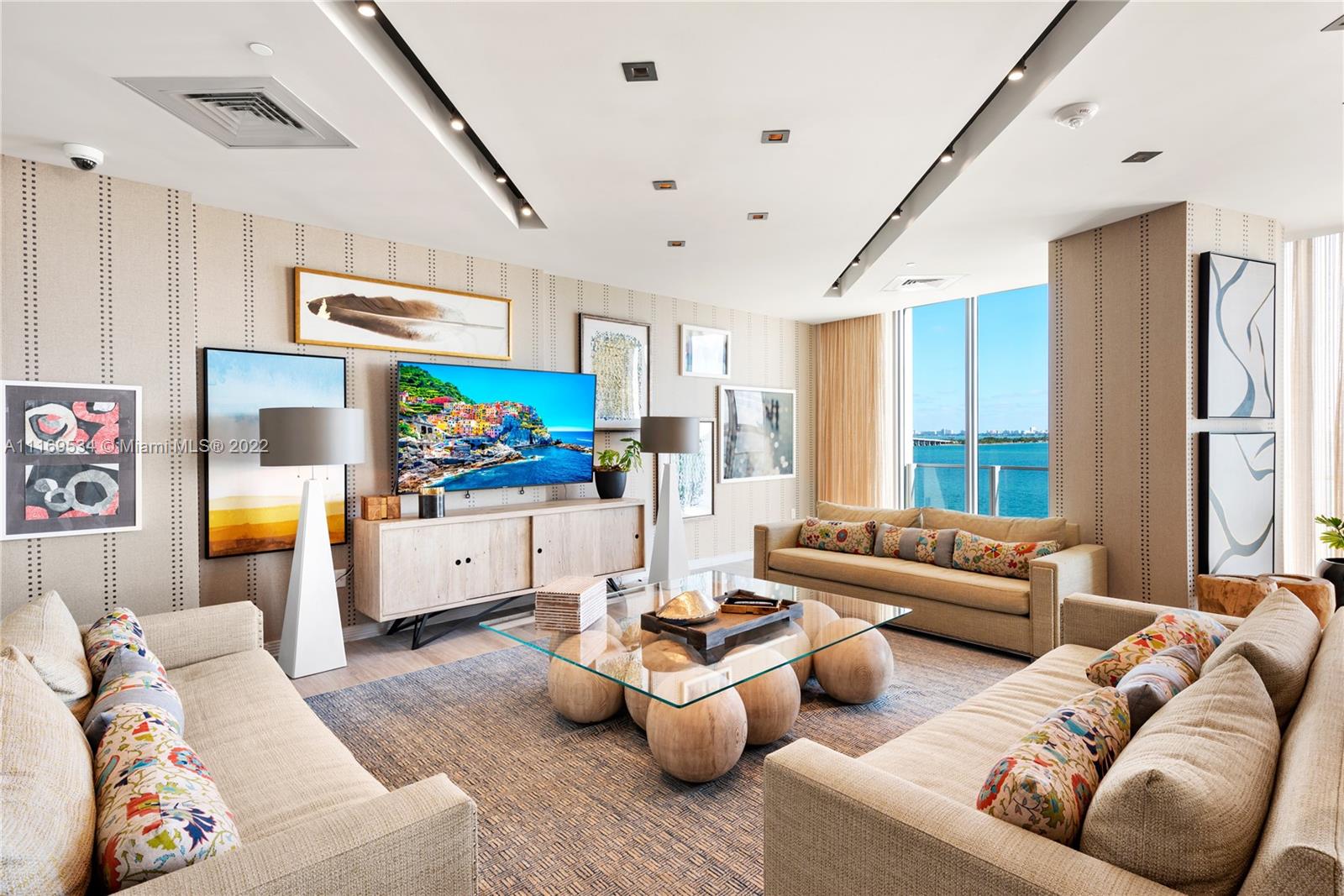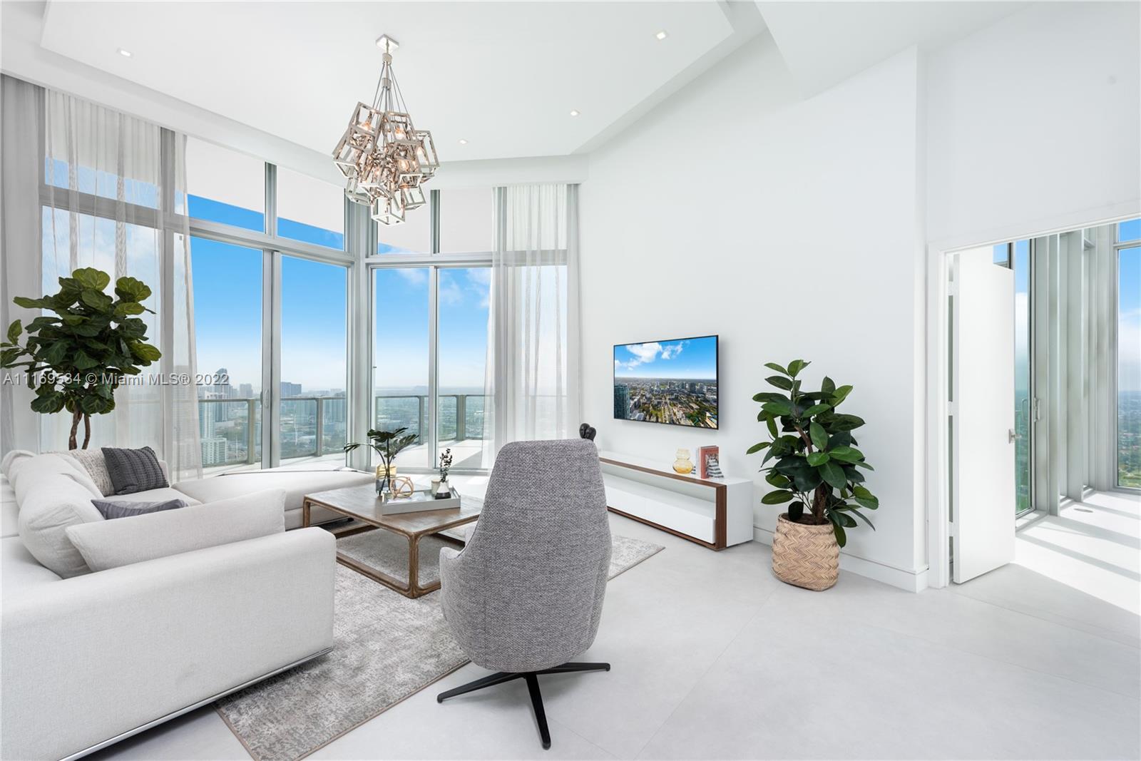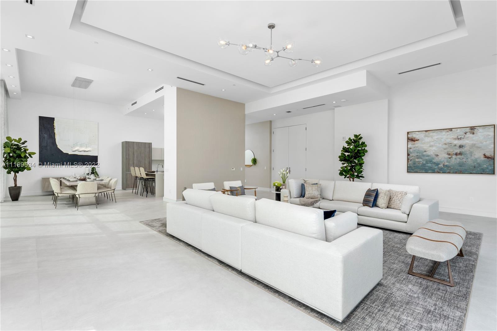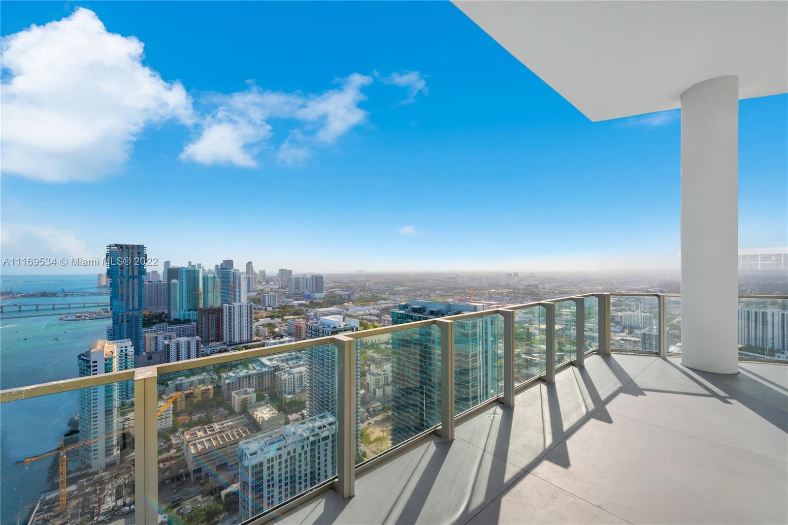Enter this one-of-a-kind lower penthouse and be prepared to be awestruck. Enjoy wraparound views of Biscayne Bay and Miami Beach from soaring 15-ft floor-to-ceiling windows that welcome natural light throughout the entire penthouse. Special features include 60” x 60” tile, custom ceiling lighting plan, massive master bedroom with in-suite lounge, 4 guest suites + 1 staff room, a west-facing den, outdoor summer kitchen and 4 parking spaces. Located in the heart of all that is trending in Miami within a 5-10 minute drive to Design District, Wynwood, Downtown, Brickell and South Beach.