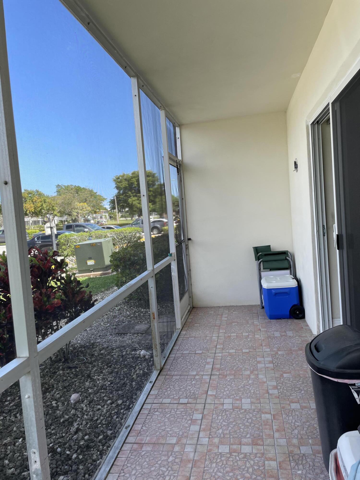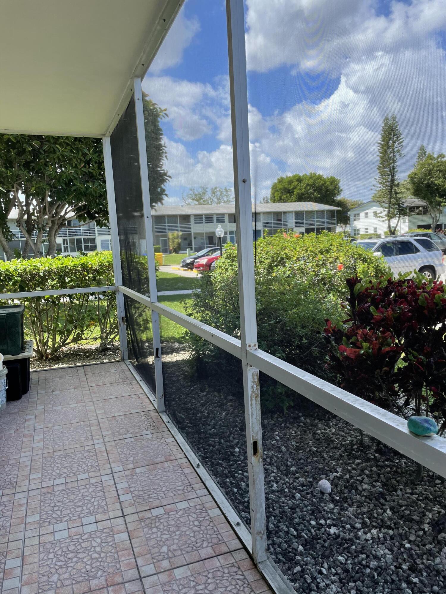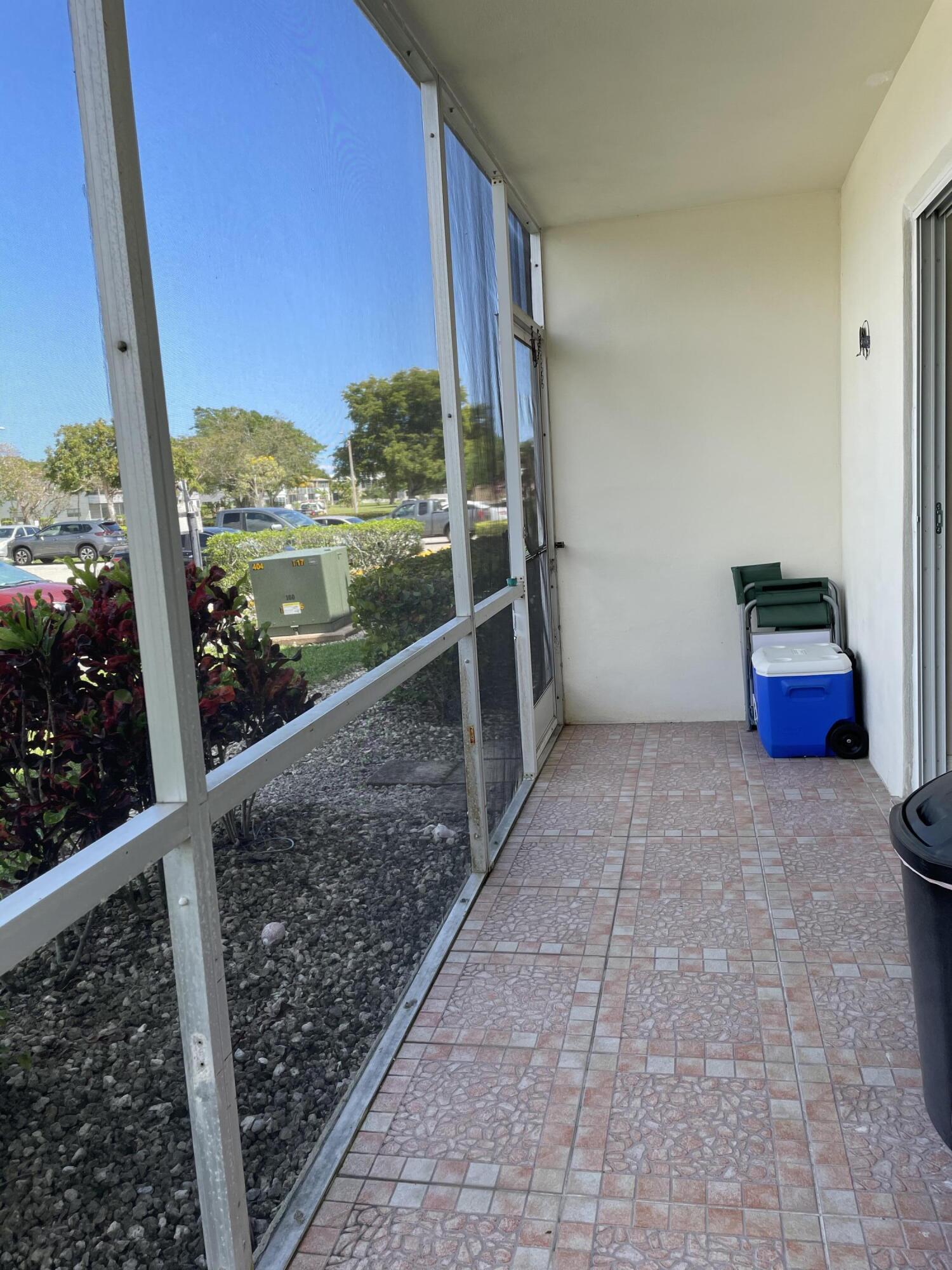 Sunshine abounds in this 1st floor corner unit! This lovely, 1 bedroom, 1.5 bath unit for sale in a 55 + adult retirement community in Century Village overlooks a lovely patio with lush foliage. You will enjoy the South Florida lifestyle with amenities such as a fully equipped fitness center, club house with over 1000 seat theater, free transportation, close proximity to PBI airport, shopping, beaches and many restaurants.