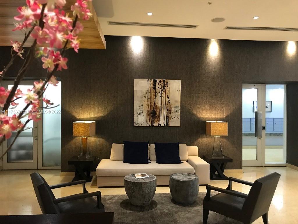 One Bedroom/ 1.5 Bathroom, two level unit featuring kitchen with stainless steel appliances, granite counter tops, floor to ceiling high impact windows; tile floors on first level and wood laminate upstairs; blackouts and 2 balconies (living area and second floor bedroom) with West and South views of the City, Coral Gables/Coconut Grove, Marlins Stadium, and partial bay view. Includes 1 Unassigned Covered Parking Space. Amenities: recently expanded and renewed fitness center, resident lounge, pool and jacuzzi, conference room, and on-site cafe. Great location! Close to all that Brickell has to offer: restaurants, shopping--Brickell City Centre, Mary Brickell Village, Simpson Par