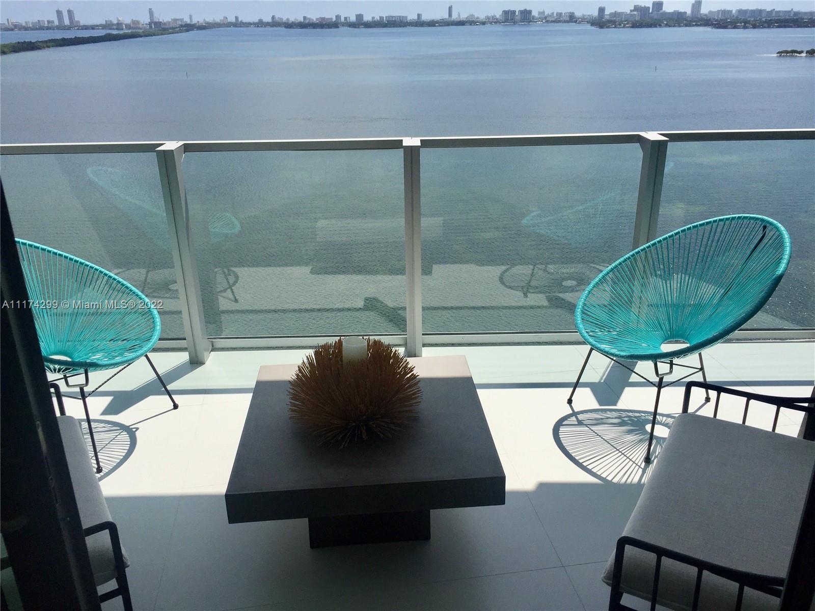 Enjoy the Magnificent and Unobstructed Water Views from this 2 bed/2baths in one of the Most Luxurious Building in Edgewater! Private elevator, foyer, 10 ft ceiling with floor to ceiling glass windows & spacious balcony. Top upgraded finishes and furniture, Miele Kitchen appliances, custom walls, & electric window coverings throughout. Large washer/dryer. Garage parking + Valet. Luxury amenities include beach club, 2 pools, spa, cabanas, water view fitness center and tennis courts. Right in the heart of Wynwood, Midtown and the Design District.