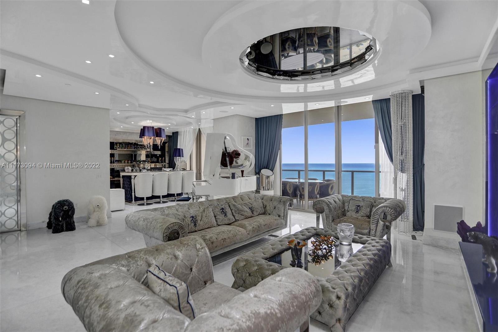 Gorgeous spacious unit with direct ocean and city views, 3 bdr + DEN/3.5bth in St Regis, Bal Harbour. Very spacious and large unit features sleek floors, pearlescent venetian stucco throughout, drop ceilings, customized lighting, high-tech built-in appliances. Enjoy the ocean and bay/city skyline views. Every room in a unit was designed to perfection by famous designer Roberto Cavalli and was also beautifully furnished with Visionaries Furniture, created by Cavalli. Living at its finest, St. Regis offers 5-Star resort amenities with a 24 hour concierge and room service, private oceanfront cabanas, separate residents amenities, full service spa, 4 pools, three restaurants and more.
