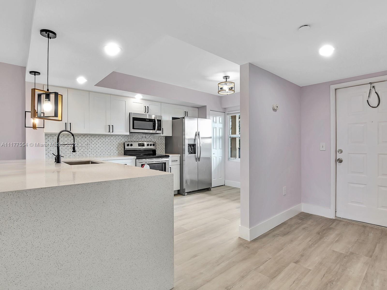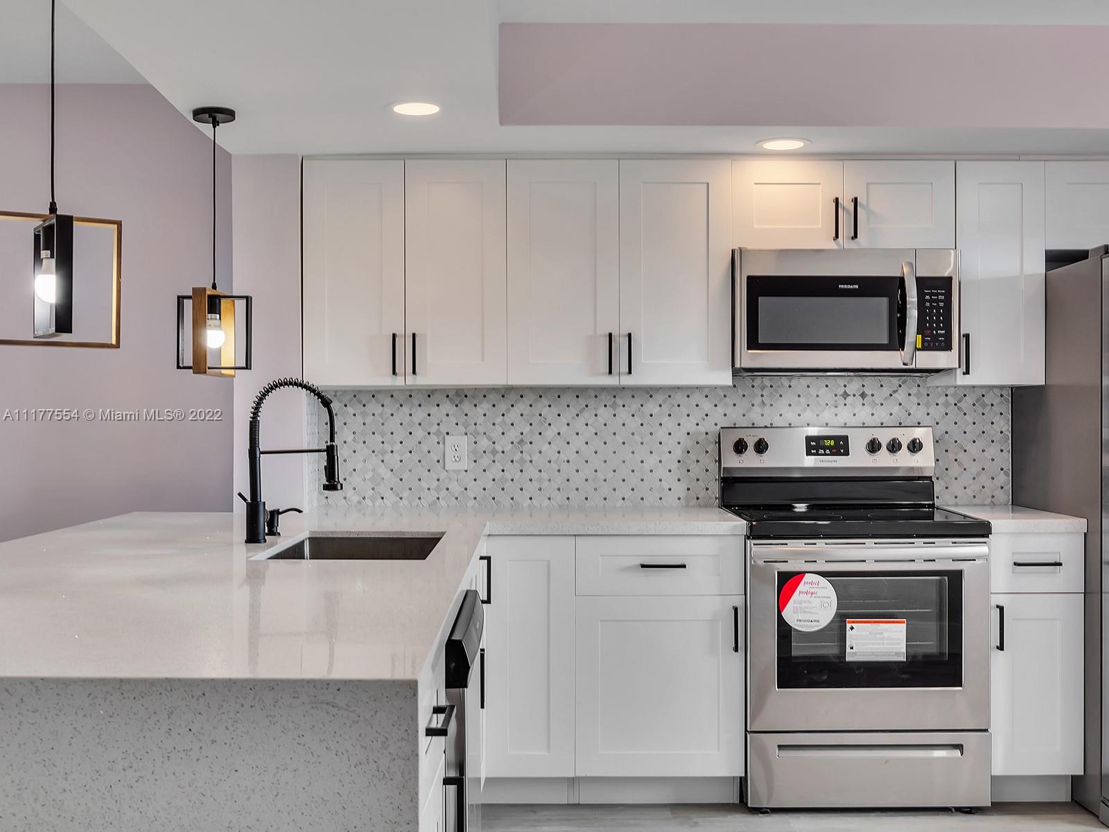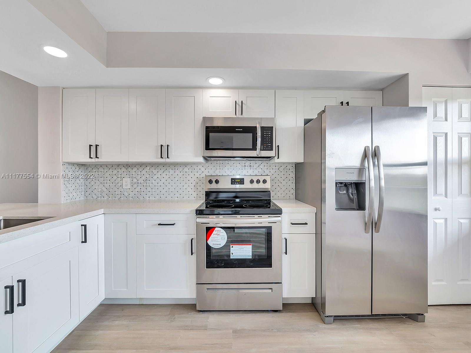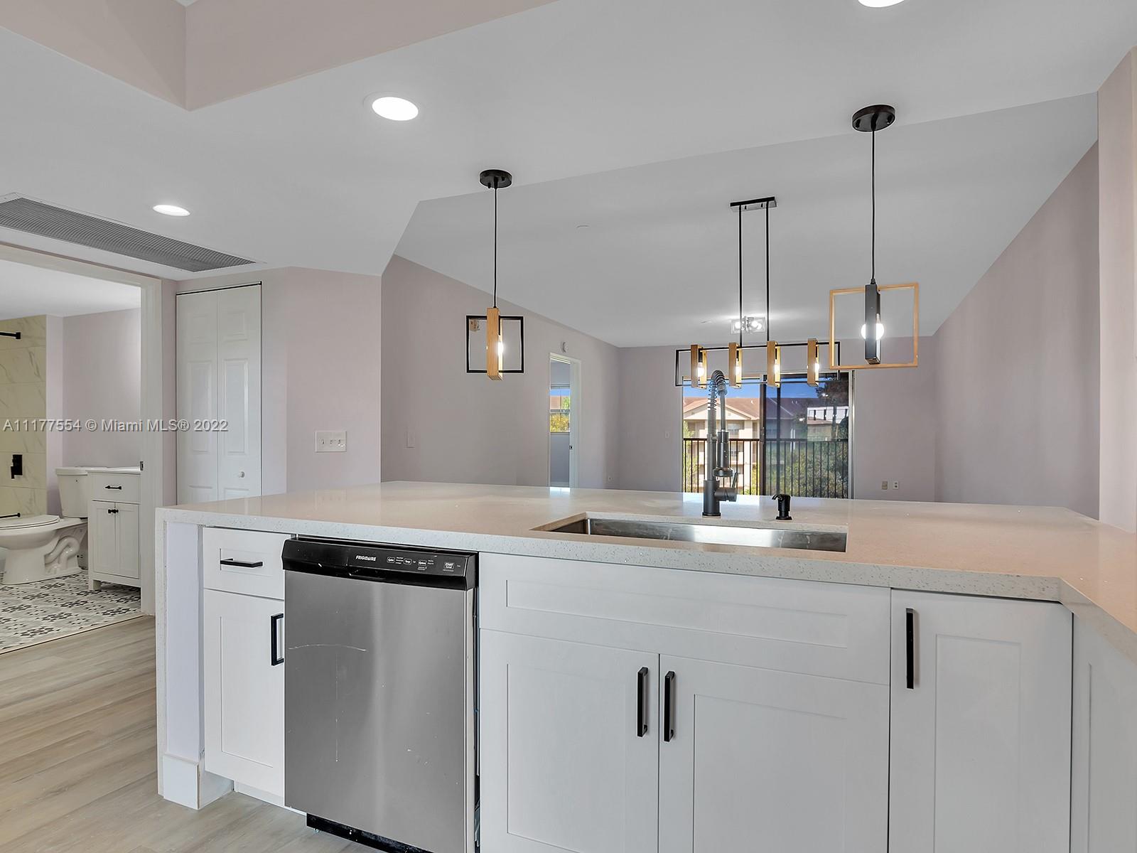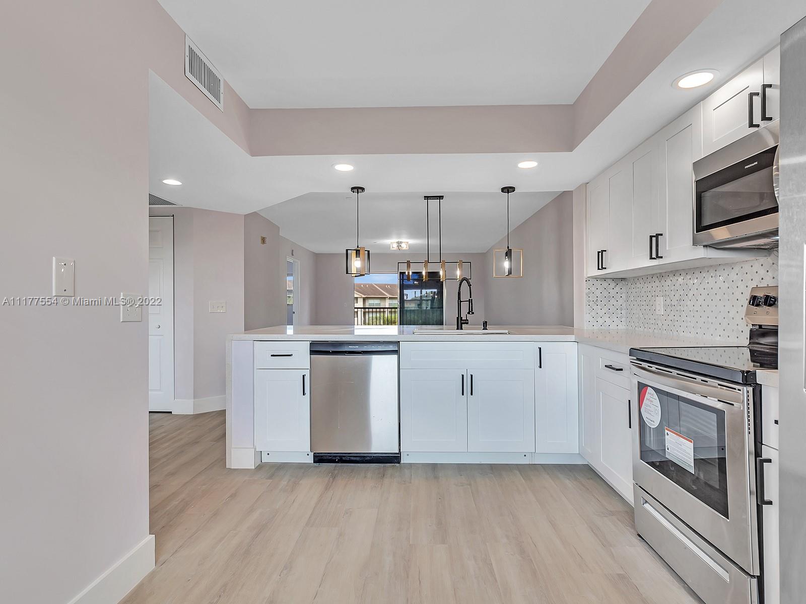 This gorgeous bright, modern, and completely remodel condo would welcome you upon entering the front door into a beautiful concept. 2 Bedrooms, 2Bathrooms. This model offers a relaxing welcoming entrance from the kitchen into the living/dining room. The kitchen has been tastefully upgraded with soft closing white cabinets, white quartz, modern backsplash, and stain-steel appliances, laminate waterproof flooring, smooth walls and ceiling finishes, and very modern bathrooms. Enclosed balcony to enjoy garden view. Be part of the Best 55+ community of the area offering resort-style amenities with numerous options to stay socially and physically active. Come and enjoy endlessly resort amenities!