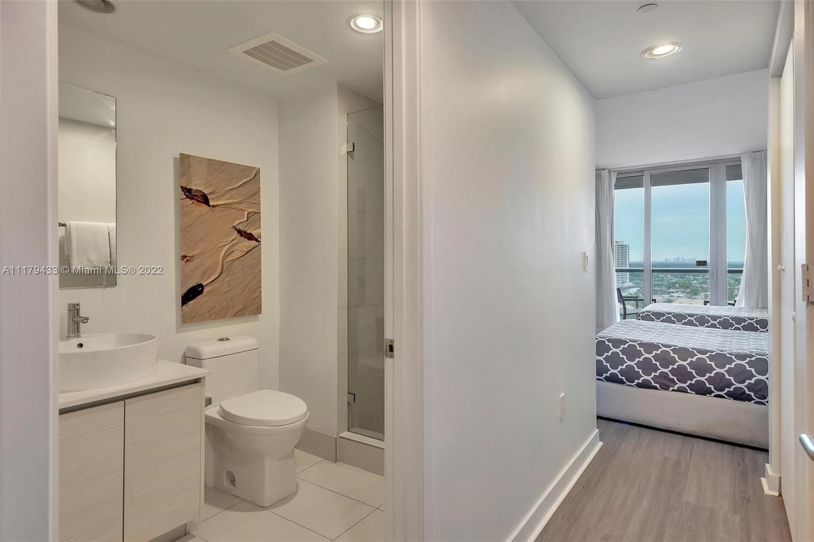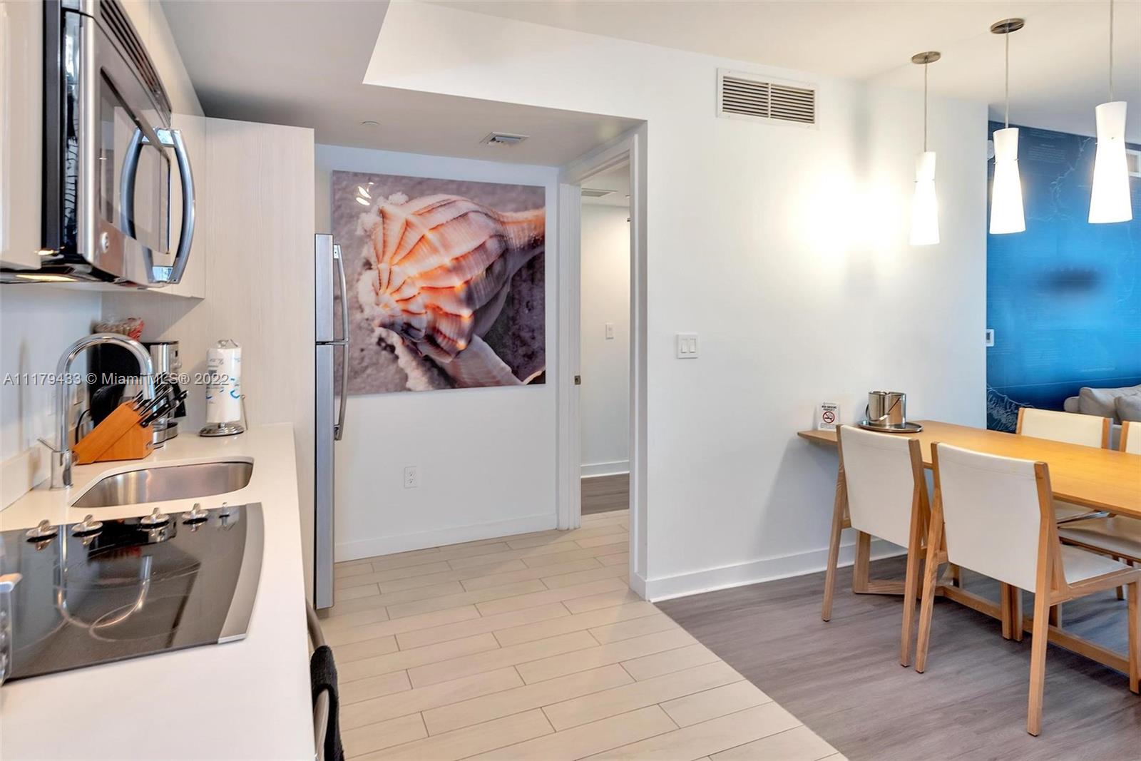 Fully furnished, recently updated with balcony tile and new flooring, a turn-key unit with amazing views of the Intracoastal & ocean. 2 separate entrance doors so the unit can be converted into two apartments and each rented with no restrictions, A 1 bed/1 bath on one side and 1 studio on the other. The first one would have a kitchen, dining/living room, large terrace & washer/dryer.2 Ac zones.The second one, a studio with its own bathroom & terrace. Daily rentals are allowed, by the owner, with a Realtor or directly within the hotel. Resort amenities include rooftop pool,valet, complimentary shuttle, and service to Hallandale Beach and hyde's resort club, fitness center w/ Intracoastal view. Maintenance includes electricity, internet/cable, water, & all amenities. Generating great income!