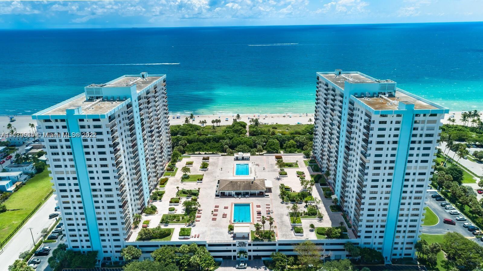 Come,fall in love with one of the most desired & famous Buildings in Hollywood"The Summit"Ocean Front Residence w. lots of Amenities including Basketball Court,2Tennis Courts,new Shuffle Board,golf practice tee,2 heated swimming pools,private beach access ,Gym,on site Restaurant and More.The Famous Hollywood Boardwalk starts Here!!!Restaurants, Shops, Shows, Bike Path&Beaches.Fully fenced 10 acres of manicured lawns,24 hour security,garage parking,hammocks in the garden,movie night,holiday parties&a lively social community.Huge living&dining room ,large balcony w.tranquil views,W/D in the unit,cable TV,Internet included.Apt is sold fully furnished .Ok to lease right away.Split bedroom layout two large masters each with GIGANTIC closets .Condo is in original condition,come and make it yours