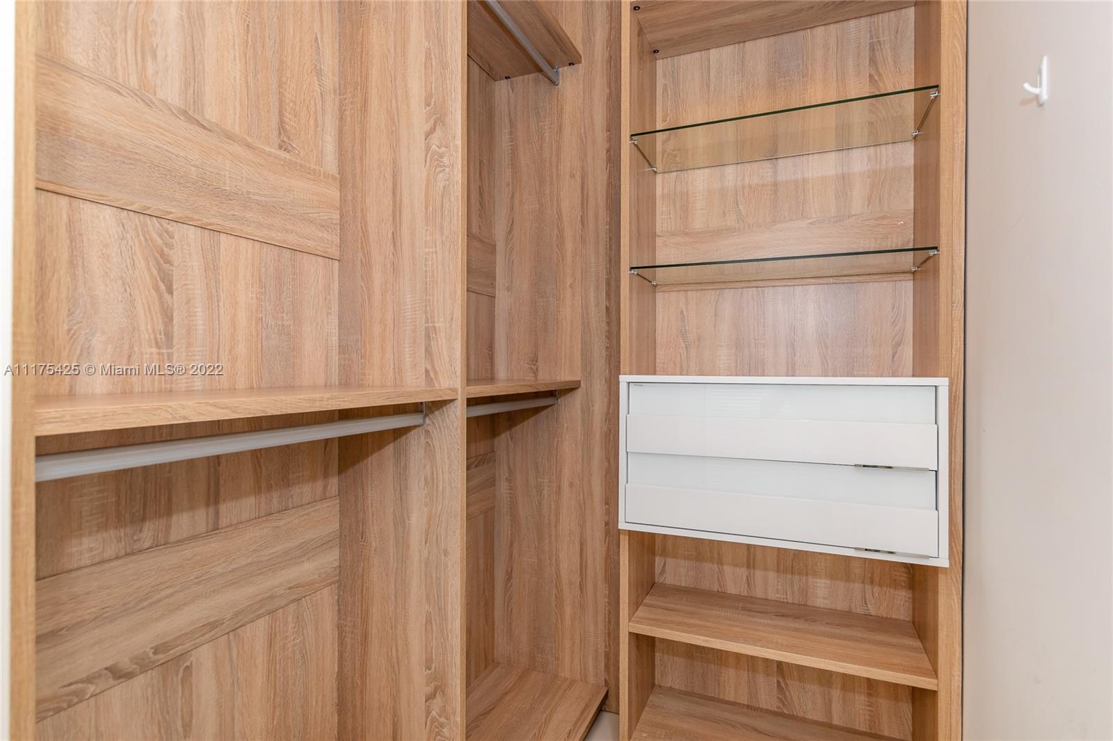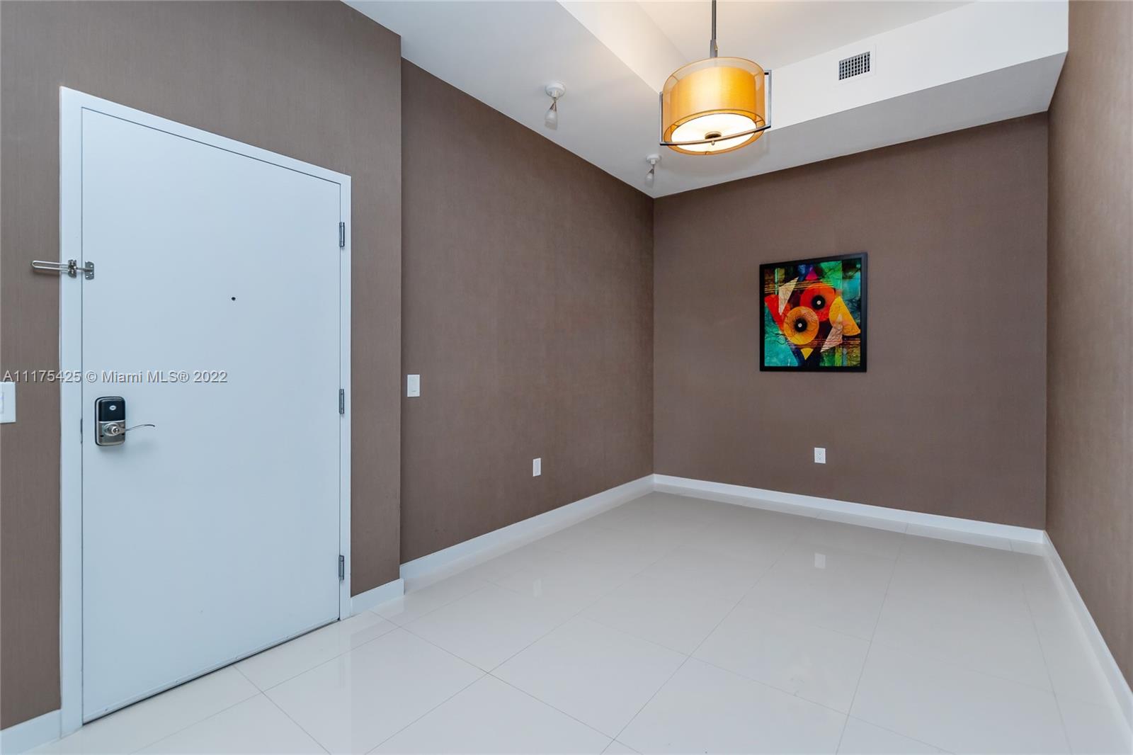 Gorgeous condo with two bedrooms/two bathrooms plus den. The only one in the complex with high volume washer and dryer with beautiful sliding glass door for easy access, tankless Stiebel water heater, wallpaper walls, blackout roller blinds (wireless/battery operated), custom built-in furniture and professional installed TV wall mounts. Stainless steel Bosch appliances: dishwasher, side-by-side refrigerator with ice & water dispenser, microwave & electric range. Smoke detectors, beautiful cabinets & closets. Note: the unit includes two parking slots on 5th floor in front of the elevator. Driving Directions: