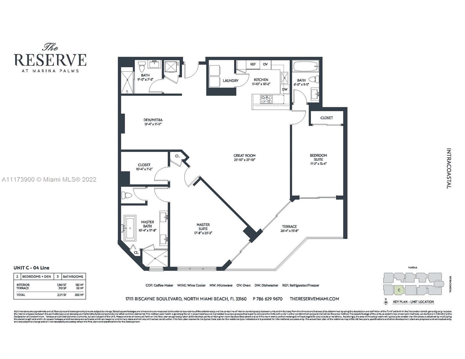 Absolutely beautiful and tastefully finished corner unit in Marina Palms Reserve. No expense spared. Italian porcelain. Floor Plan modified to accommodate the Den into a fully enclosed generous size 3rd suite, also the entrance door of the Second Bedroom has been relocated to improve kitchen size. Must see to appreciate how perfect this apartment is. South facing with tons of natural light and gorgeous water views extending to the Atlantic and Miami Downtown. Marina Palms offers a 112-slip private marina plus plenty of aquatic activities: jet skis, kayaks, water skiing, windsurfing and snorkeling. Enjoy a prime waterfront resort-style pool deck with infinity pool, state of the art fitness center, lavish spa with steam and sauna, outdoor barbecues, and so much more.