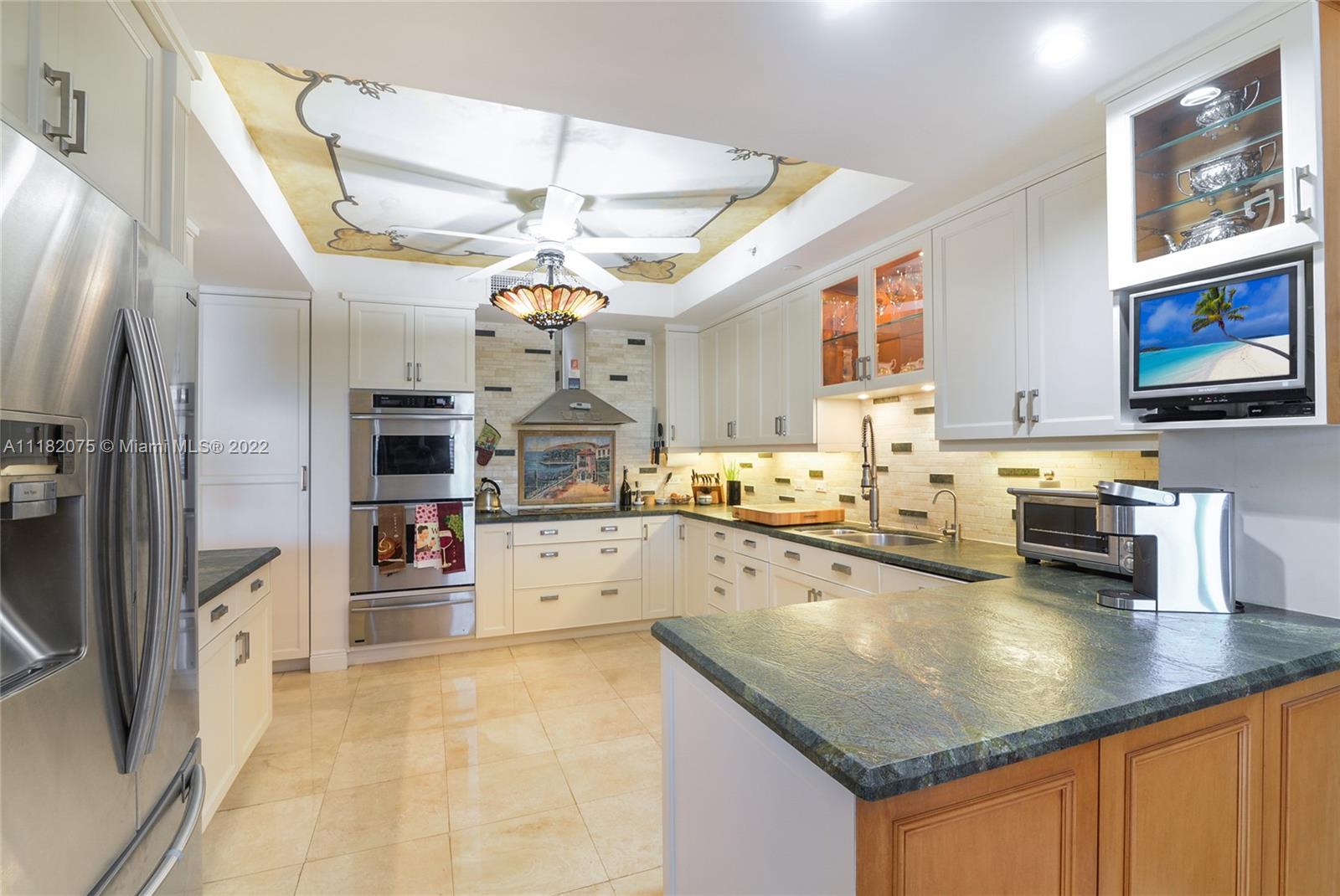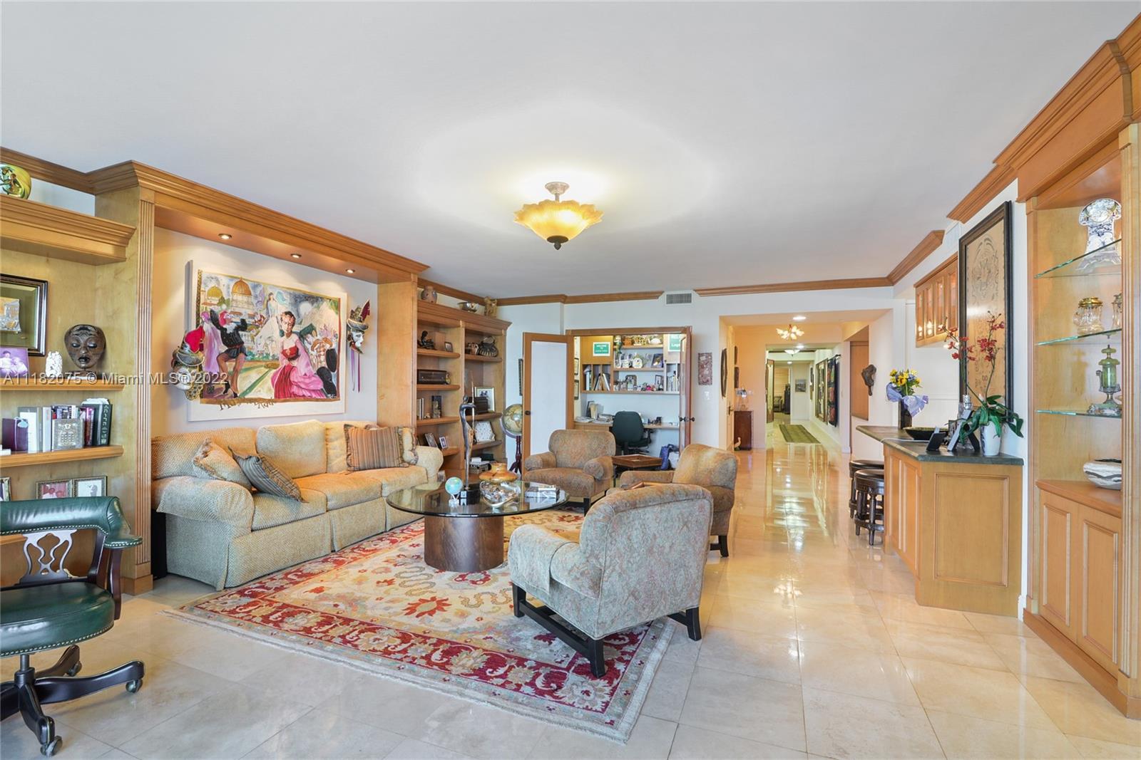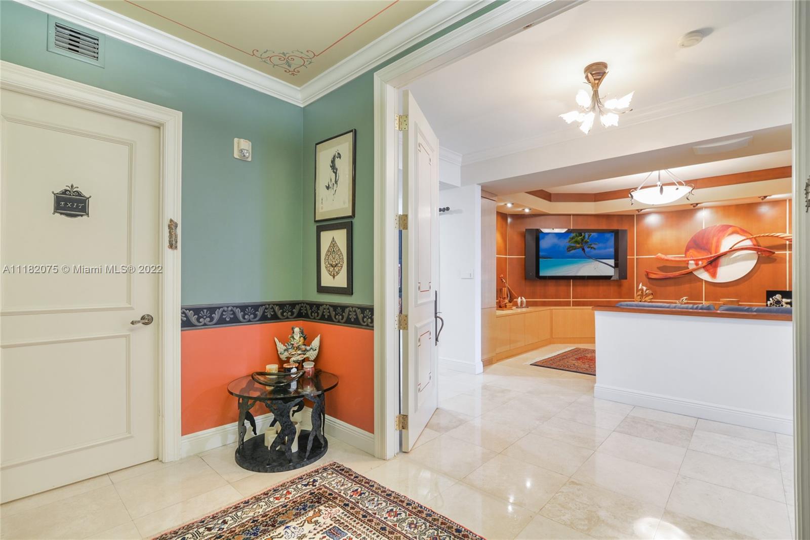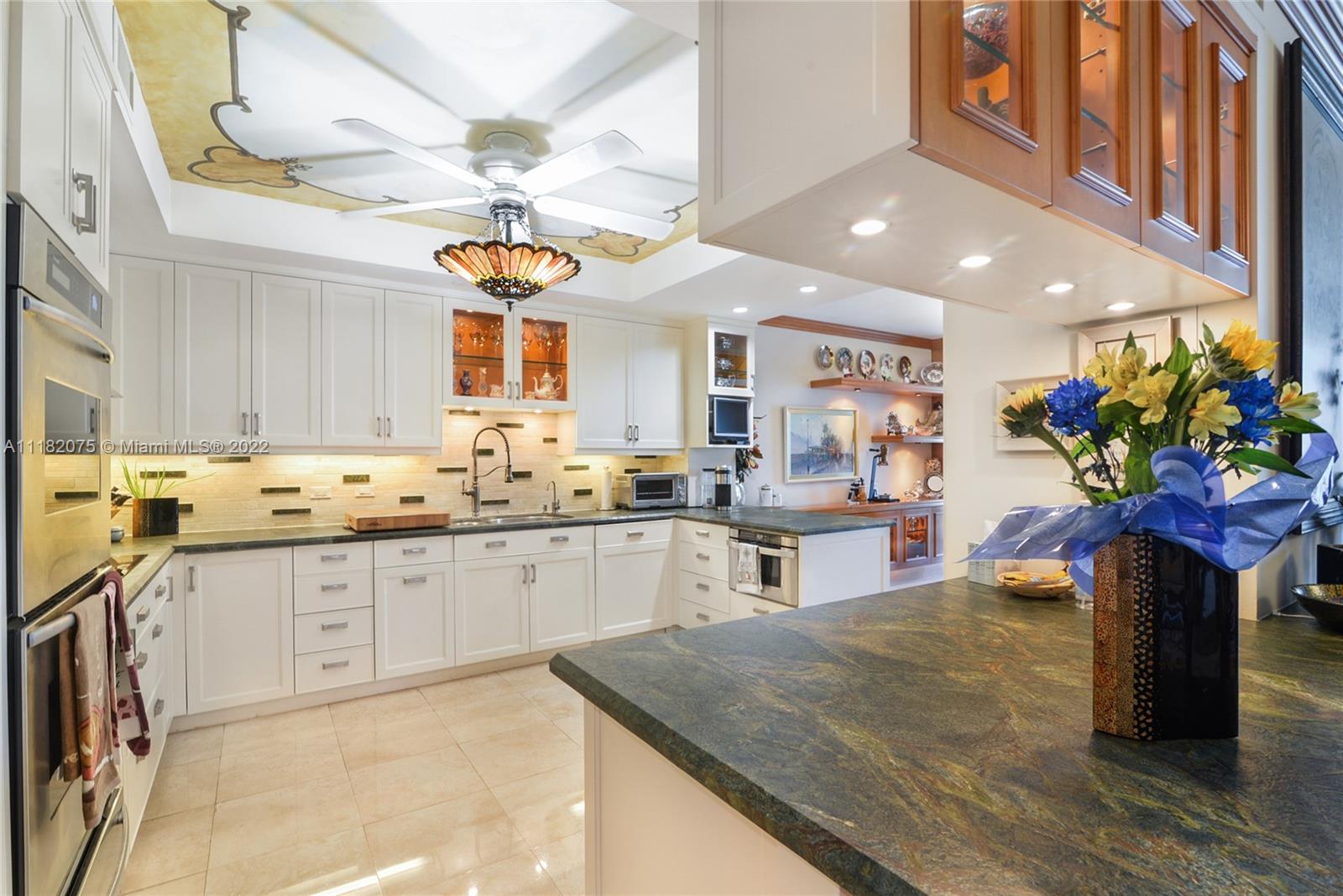 Step off your private elevator and enter the foyer of this magnificent 3 bedroom, 3 bath apartment that has been lovingly cared for and updated by original owner. Enjoy the sunrise over the intracoastal and ocean, and the sunset from the master bedroom balcony. The spacious living area also has a renovated media room with decorator custom built-ins and wall decor. Marble and porcelain tile floors, the gourmet kitchen has been opened with breakfast bar, new appliances and leather granite counters. Guest bath was recently renovated, as well the serene master suite enjoys quiet times with the quiet rock that was installed. The oversized laundry room has access from the condo, with lots of storage. Also included are three owned parking spots, plus additional parking with Valet.