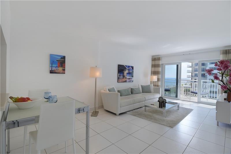 Tenant Occupied. Ocean front living at it's finest!!!! Ocean Sound is a small Boutique building located in the Beautiful city of Lauderdale By the Sea. Spacious and completely furnished 1 bedroom/ 1 1/2 bath ....just bring your toothbrush! Large Master Bedroom with En Suite. Full size washer and dryer located in the unit. Half bath for guests. Impact windows throughout. Plenty of storage. New A/C. All new plumbing lines replaced throughout building. Enjoy breathtaking sunrises over looking the ocean while sitting on your private balcony enjoying your morning coffee. Monthly maintenance includes Cable, High Speed Internet, Supporting fax line, Water, Sewer and Trash. Heated community pool.