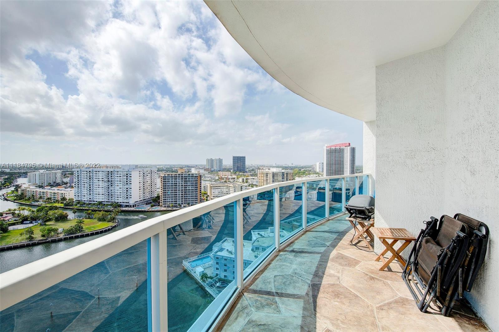 Beautiful and bright highly desired 3 bedroom 2.5 bathroom waterfront condo! Corner unit with a spacious layout and TWO parking spots! Breathtaking ocean + intracoastal views from living room, bedrooms, and the oversized balcony terrace. This unit features high ceilings, expansive dining + living area. Updated flooring, updated kitchen with SS appliances and impact windows throughout. BONUS rare unit with a pool cabana room. The OMYC complex is across the street from the beach and is a resort-style full-service complex. 24-7 security, 2 parking spots + valet parking, pool, jacuzzi, fitness center and much more! Investor-friendly: rent right away. Do not miss your chance to own at one of the most desirable buildings in Hallandale, Florida. Don't miss this chance...Florida gem to call home!