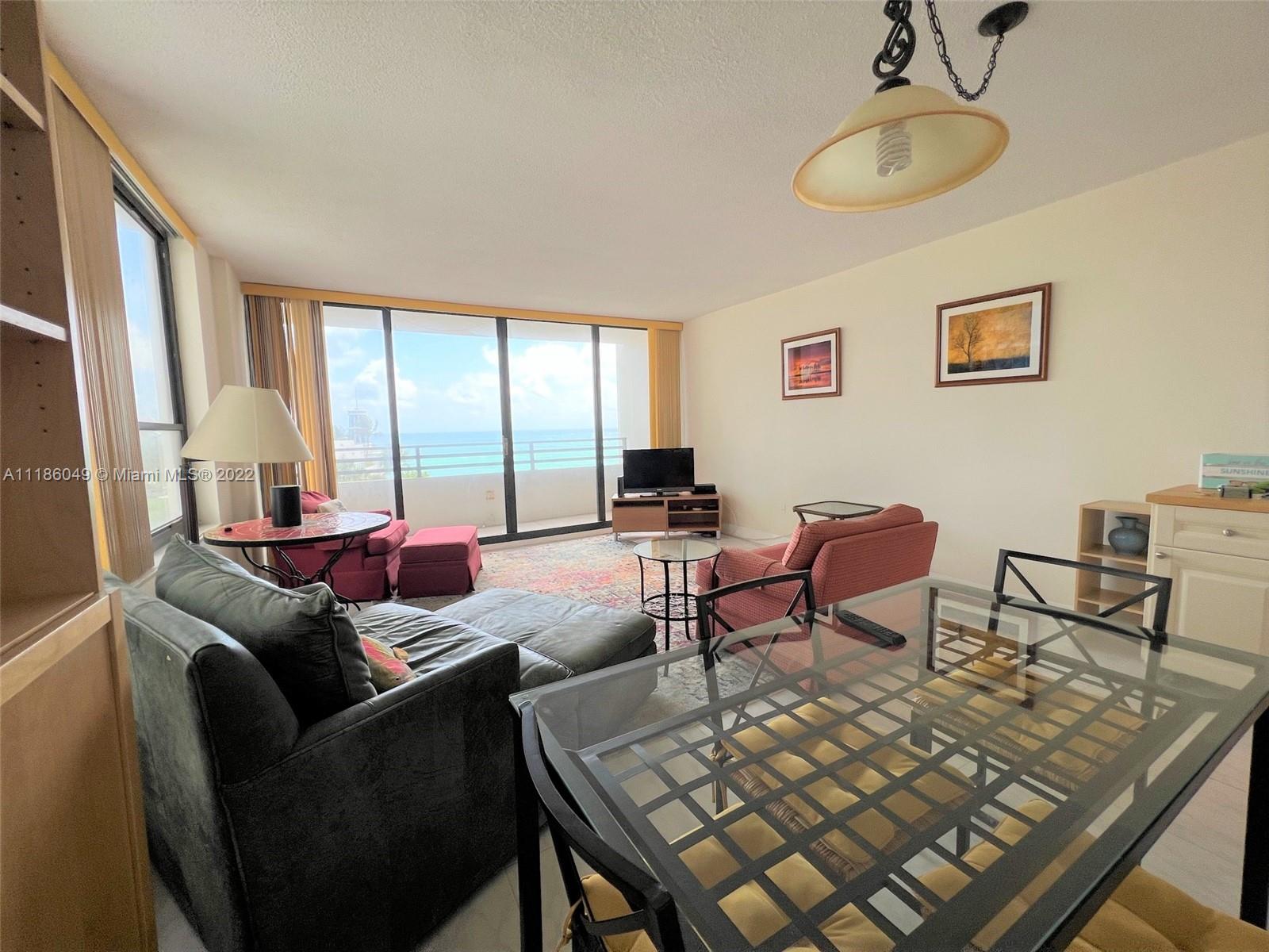 Rarely Available Large Corner Unit in Pet Friendly High Rise Condo. This unit has been lovingly remodeled with a Transitional Neutral Decor to smartly accommodate any personal style. Immediately upon entering, the stunning OCEAN VIEW will lure you to the balcony & will continue to delight you from both HUGE bedrooms. Quality abounds in the new kitchen featuring designer wood cabinets in a warm light, cream color finish, Granite Counters, SS appliances, Pantry AND Huge pantry/utility closet in adjacent Foyer. The primary suite features 2 walk-in closets, 1 is large enough to be a room! This corner unit features an additional window, providing a spacious, open feeling & radiant sunshine everywhere. Full service building, 24 hour concierge, valet, Private beach access, easy to rent.