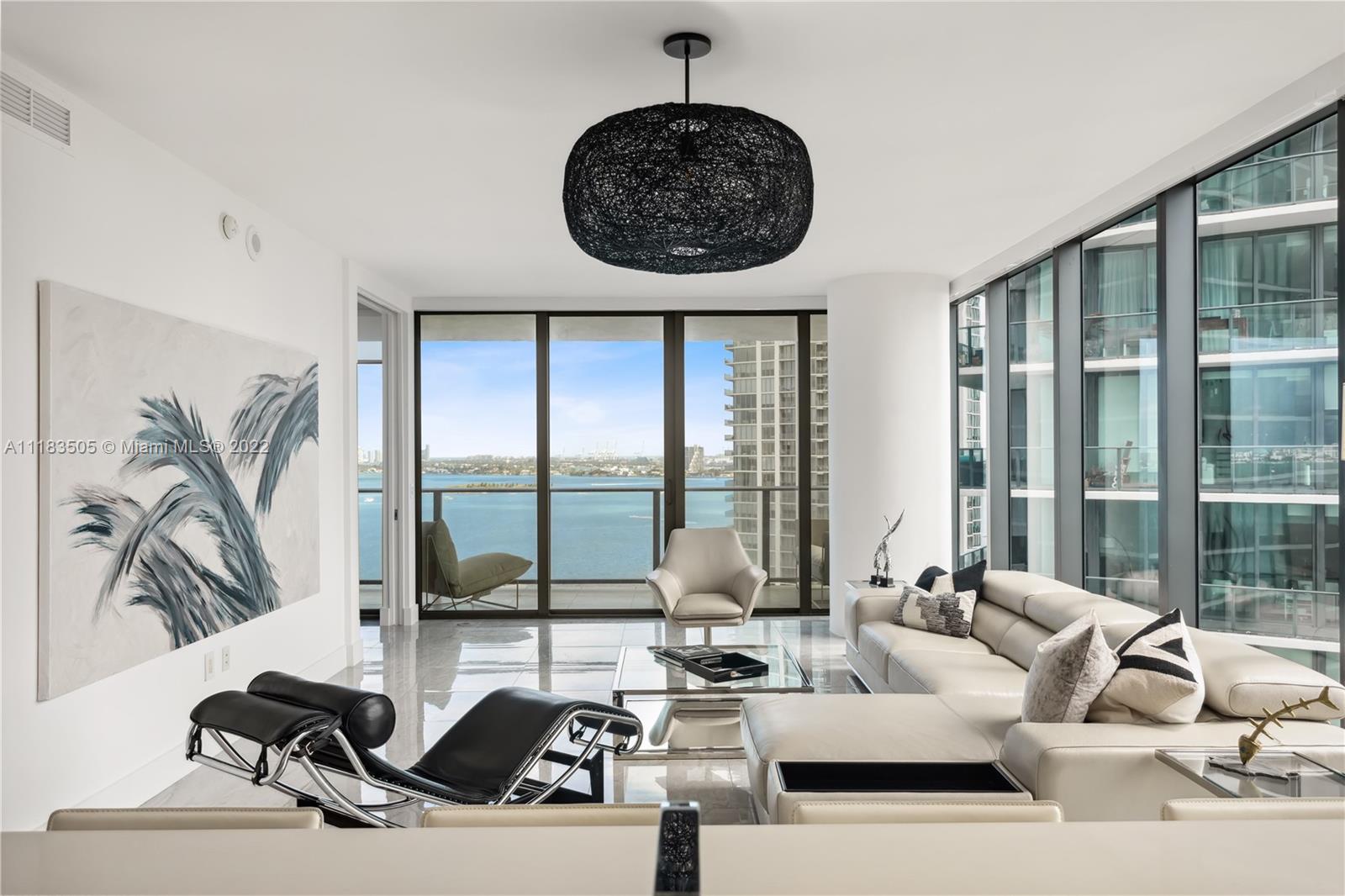 Spectacular 3 bed/3.5 baths plus den in the heart of Edgewater- the hottest area of Miami- walk to Wynwood Art District/Design District/Midtown or hop on your bike for a 10 min scenic ride to South Beach. This modern corner unit features a very bright and comfortable layout with killer views of both the bay and the city. The unit has been upgraded with spot lighting in the master BR, fully customized closets in all three BRs, motorized shades (including blackouts in Brs), a built-in pantry in the kitchen area for lots of extra storage, and a prime parking spot by the private lobby elevator that takes you to your new home! Building features world-class amenities like pool, tennis courts, wine room, gym, spa, sauna and a lot more! Turn-key and move -in ready. Furniture available separately.