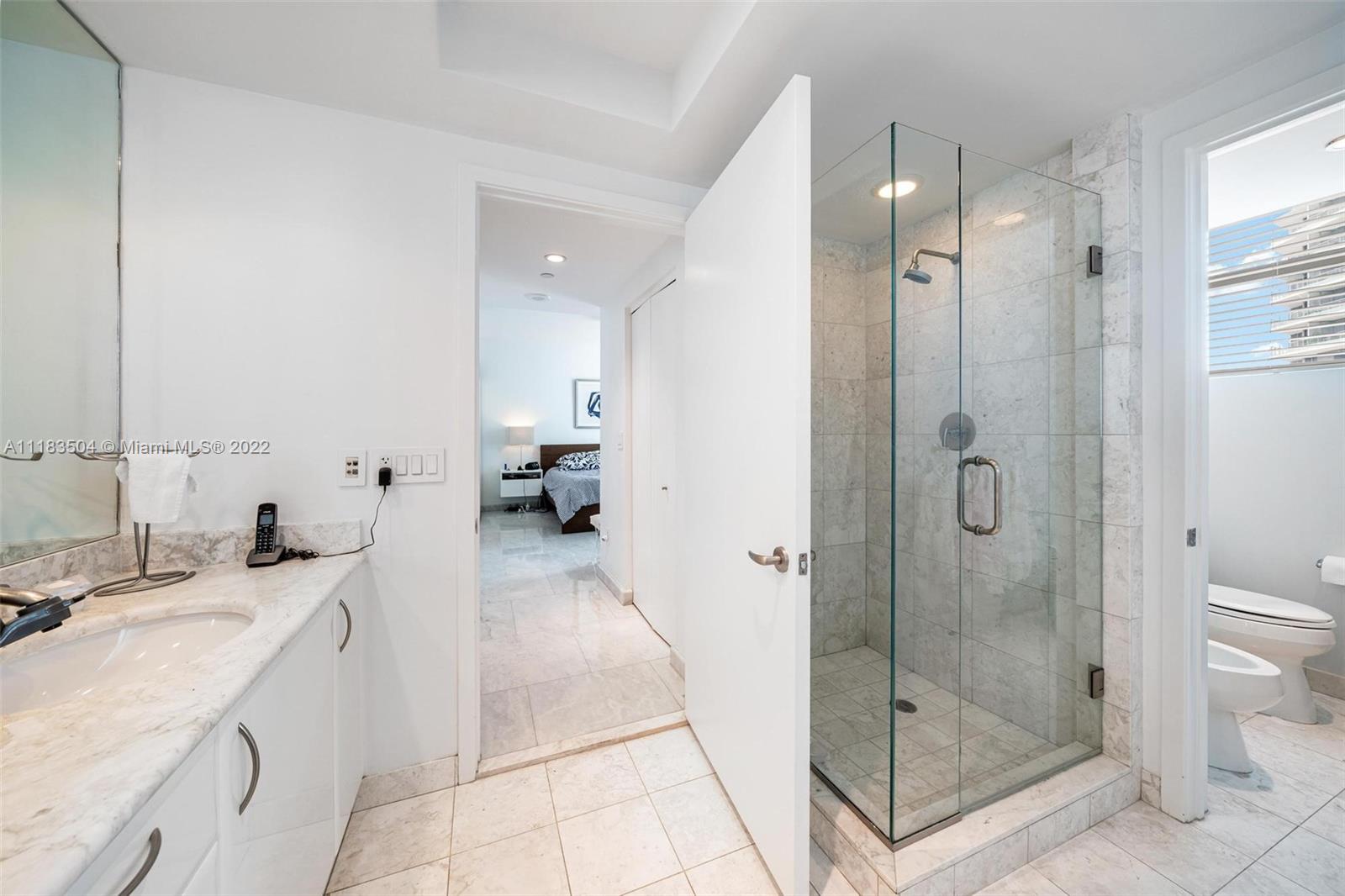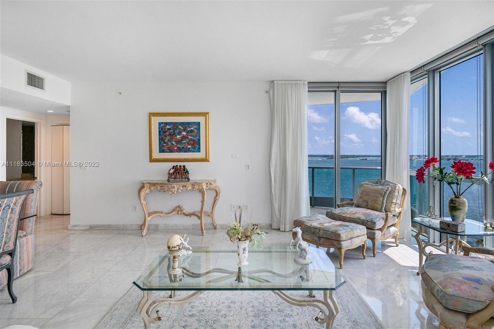 Jade at Brickell desirable 1208 SW corner, offers both espectacular Bay and City views. Extra large balconies and floor to ceiling glass walls allow the sun to play on its living area all the time. Two bedrooms and 2 bathrooms split plan, private foyer and elevator, all over 1526 SF. Floors feature gray marble, the kitchen is open with Italian cabinets and stainless steel appliances. Jade is an iconic building offering great amenities such as infinity edge pool w/cabana service, complete spa and fitness center, racquet ball, 24hr concierge and so much more. Perfect Miami lifestyle!