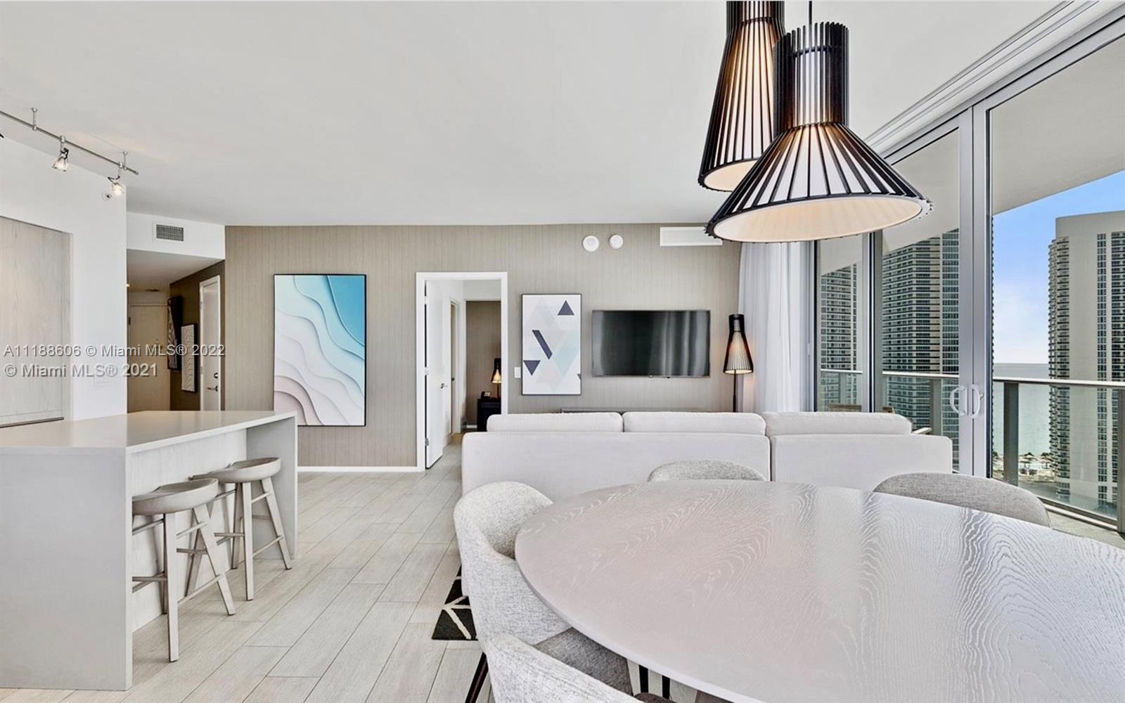 Turnkey unit with a new concept of condo-hotel. 3 Bedroom 2.5 Bath, 1,495 sqft with large terrace with 460 SqFt, corner unit-ocean, intracoastal & bay views. Located in Hollywood Beach in the heart of S Florida, Hyde Beach House is nestled between the Intracoastal Waterway and pristine Atlantic Ocean beaches just minutes from Aventura Mall, Bal Harbour Shops, and Gulf- stream Park. Completely Furnished and equipped including linens, dishes and cookware. Washer & dryer inside the unit. Five Stars amenities offers private beach Club & ocean access, 3 heated oversized pools, tennis courts, state of the art gym, club room, restaurant, roof top Lounge and common area with summer kitchen and BBQ & movie theater. Great investment opportunity. Airbnb Allowed.
