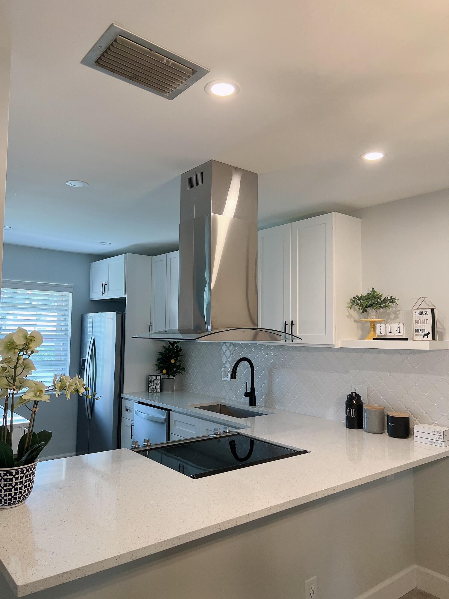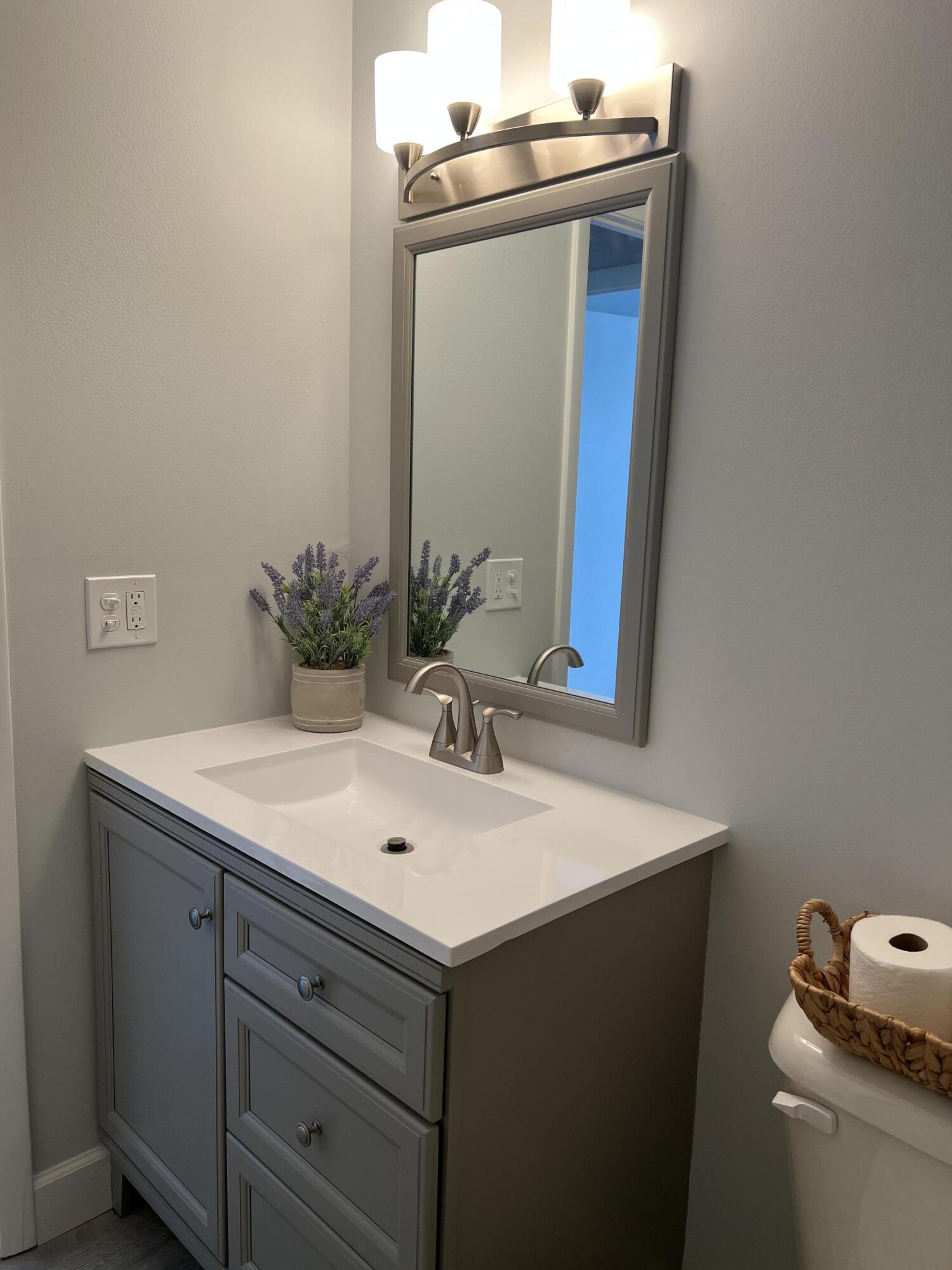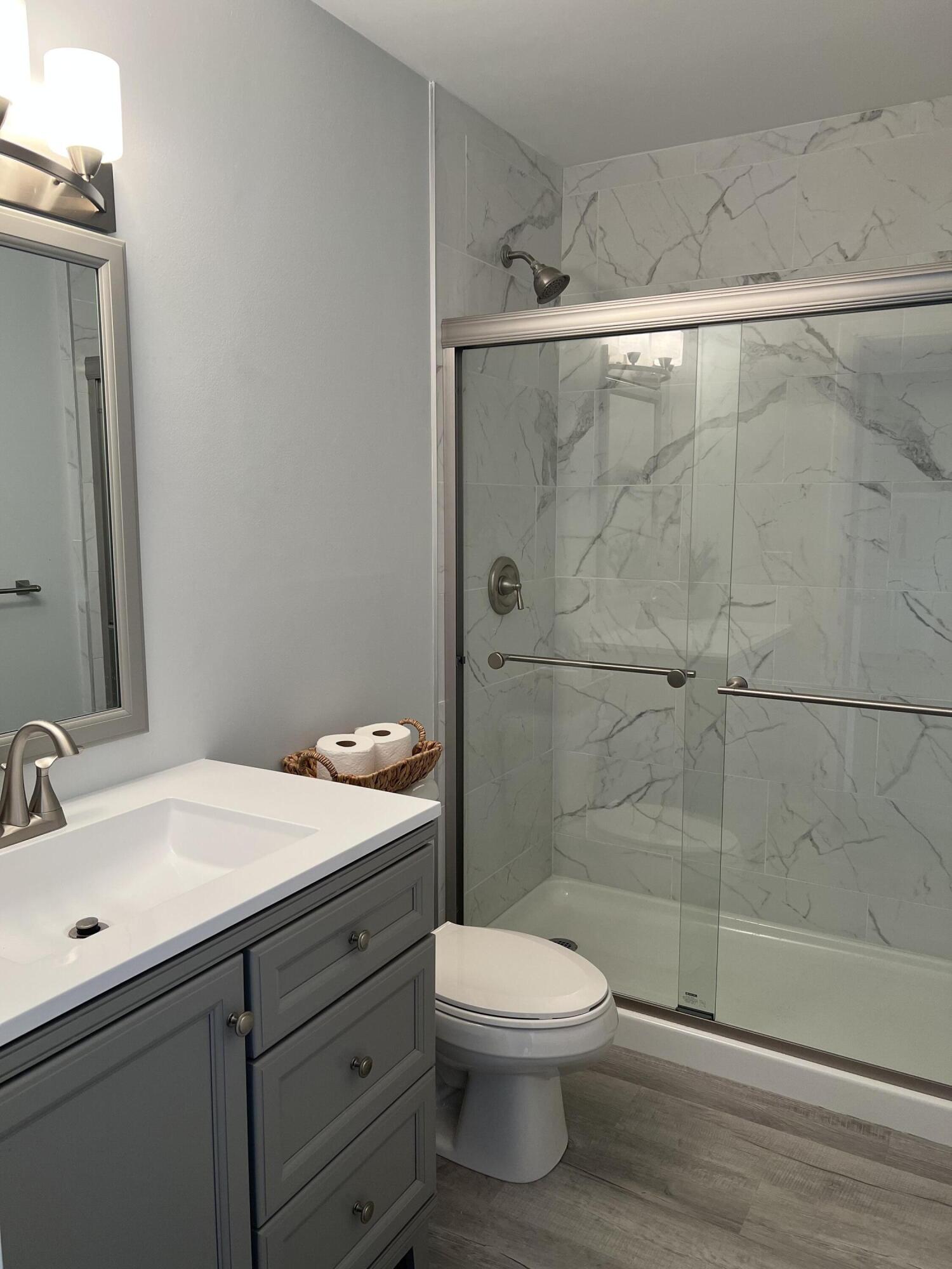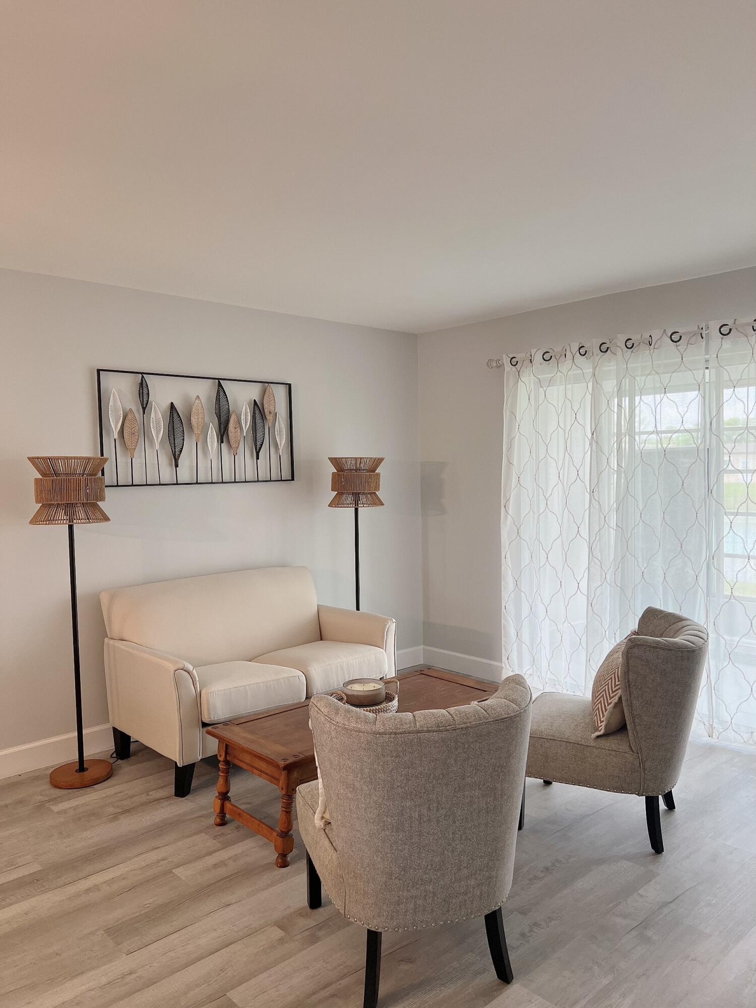 BEAUTIFULLY Updated 2 Bedroom 2 Bath, Villa in Active 55+ Community. New Impact Front Door.Kitchen updated with White Cabinets, Quartz Countertops and New Stainless Steal Appliances. New Luxury Vinyl Plank flooring through out. Bathrooms updated with new Vanities,Toilets,Tile and fixtures. NO Popcorn Ceilings-Knockdown Texuture. New Ceiling Fans, light fixtures and high-hat lighting. New interior Doors/Closet Doors and Baseboards. Large tiled Patio has Fantastic Waterview. New Washer and Dryer included in Patio storage. This Villa is located in Golden Lakes ''Phase B''.Maintenance includes bldg insurance, recreation facilities, water/sewer,24/7 guard gated, courtesy bus two days a week.Club House includes Olympic size pool and other fantastic amenities. MUST SEE to Appreciate