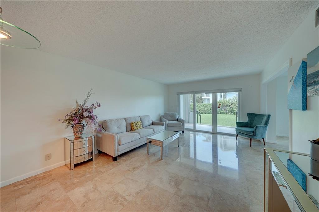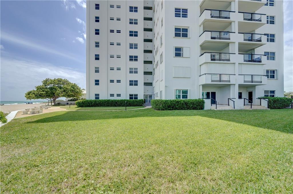 This first-floor unit allows you to wake up to breathtaking ocean views. Rare Northeast corner 2/2 renovated and well-kept condominium. The oceanfront building is right on the sand in this prime beach location. This unit is a rare find at a reasonable price! DIRECTLY ON THE BEACH AND LOW DUES, THIS IS IT!! With an open floor plan, large en-suite bedrooms with walk-in closets, marble floors throughout, granite counters, impact windows, hurricane shutters, a new water heater, a private patio overlooking a semi-private grassy area, and only a few steps to the beach! Both bedrooms have direct ocean views, with one bedroom being used as a den. The building features a pool, hurricane impact windows/doors, shuffleboard, a club room, on-site management, and a tele-entry system.